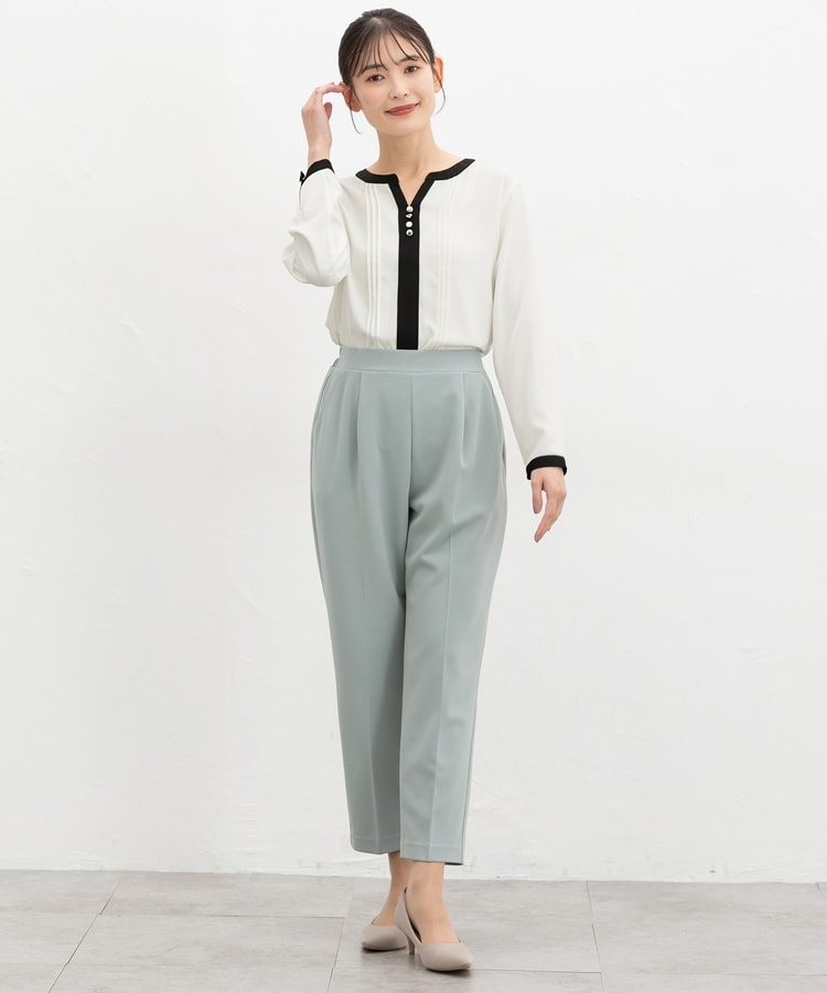 ジャケットにも合うサイズ感で、フレアスカートやテーパードパンツと合わせたきれいめお仕事スタイルに大活躍。
