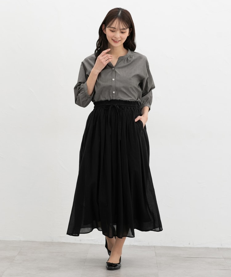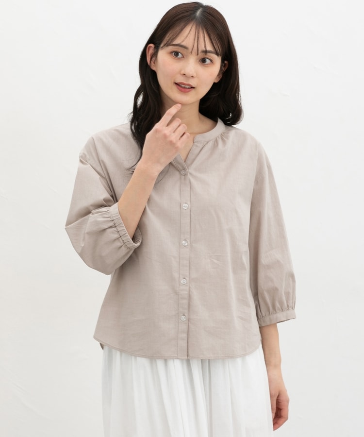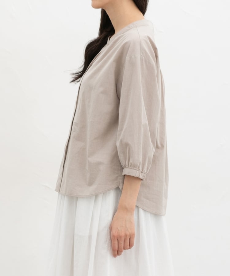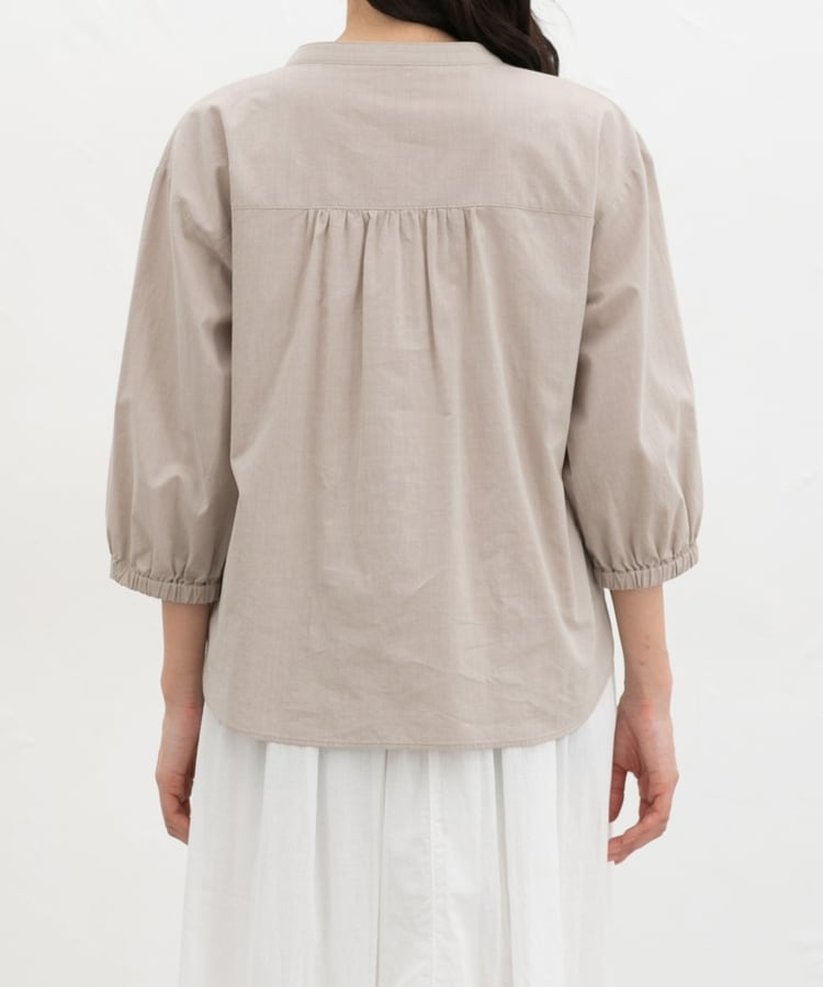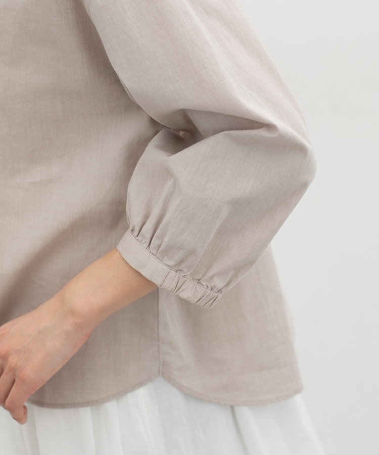 ふんわり袖の袖口後ろにゴム入りで袖丈が調節しやすく、たくし上げてパフっとさせると大人可愛い印象に。