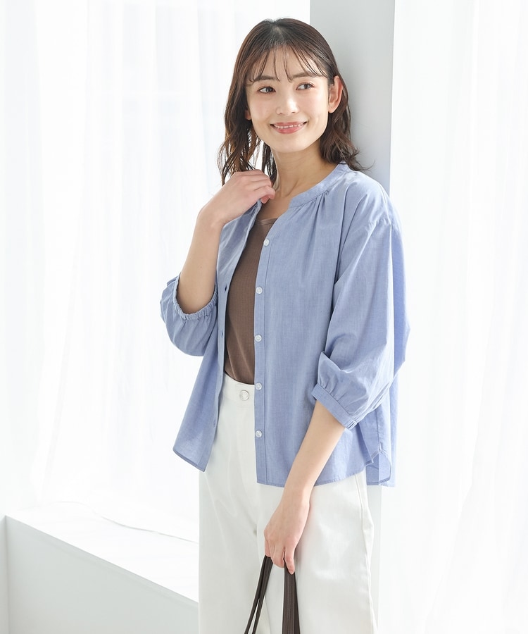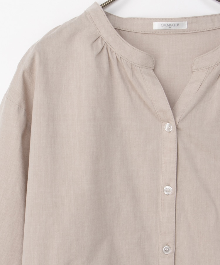 首元がすっきり綺麗に見えるスキッパータイプのマオカラーデザイン。