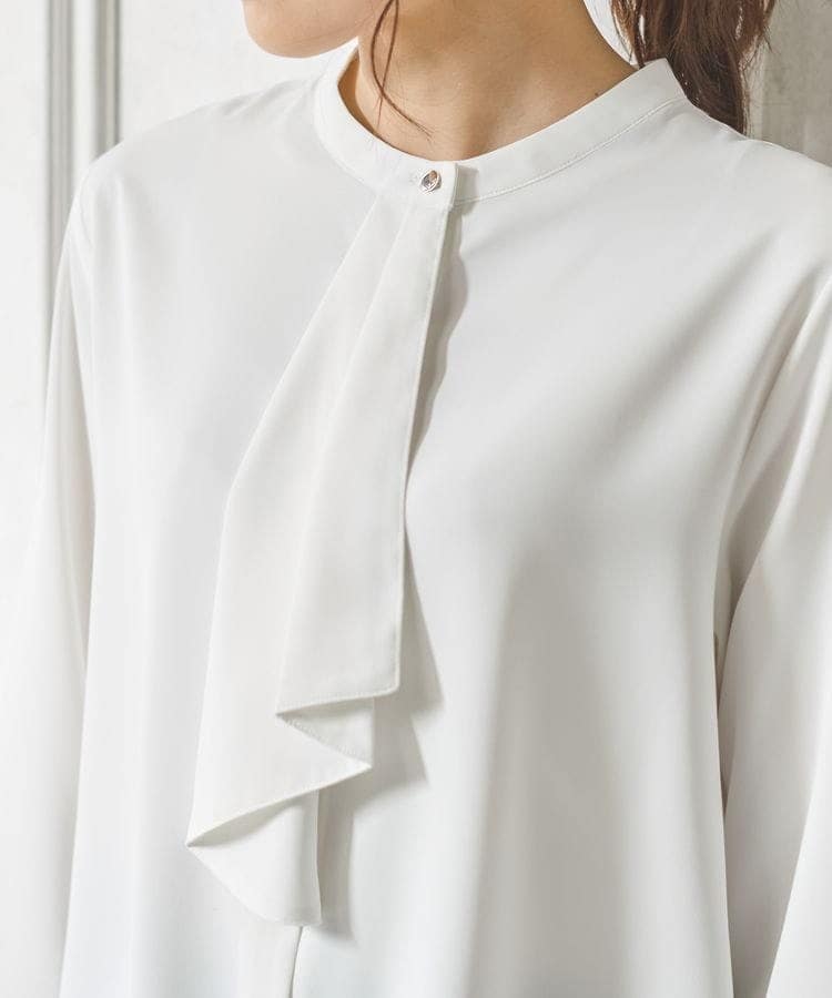流れるようなドレープが魅力の、結び直し不要なボウタイデザイン。