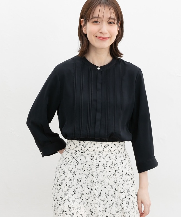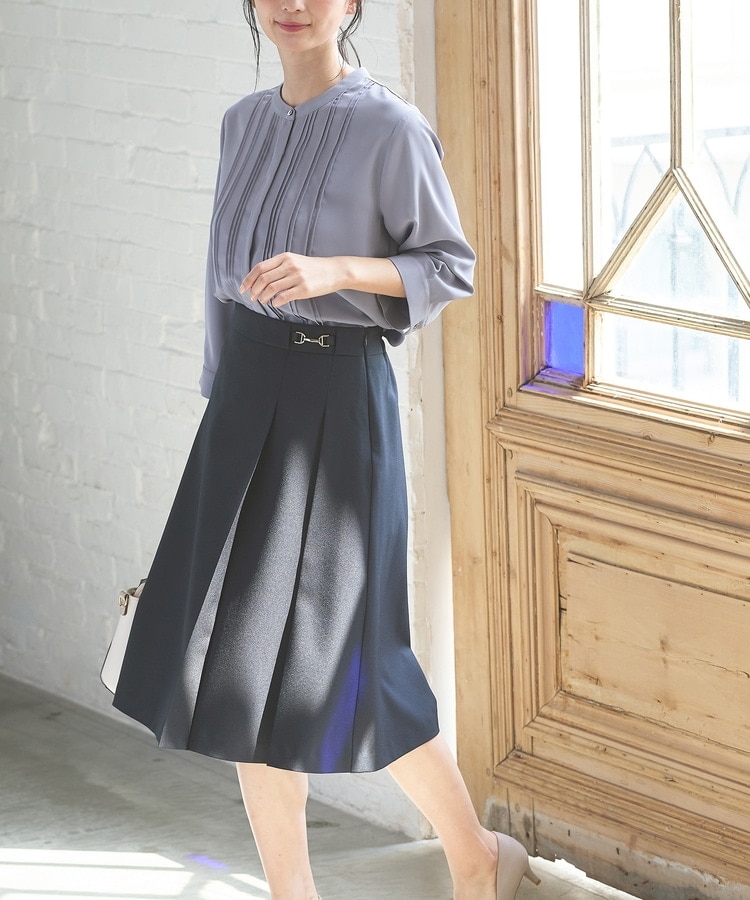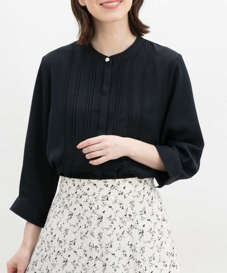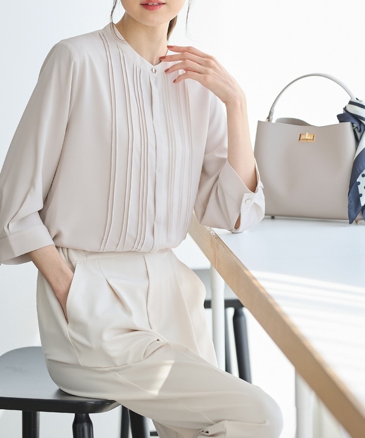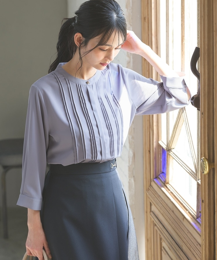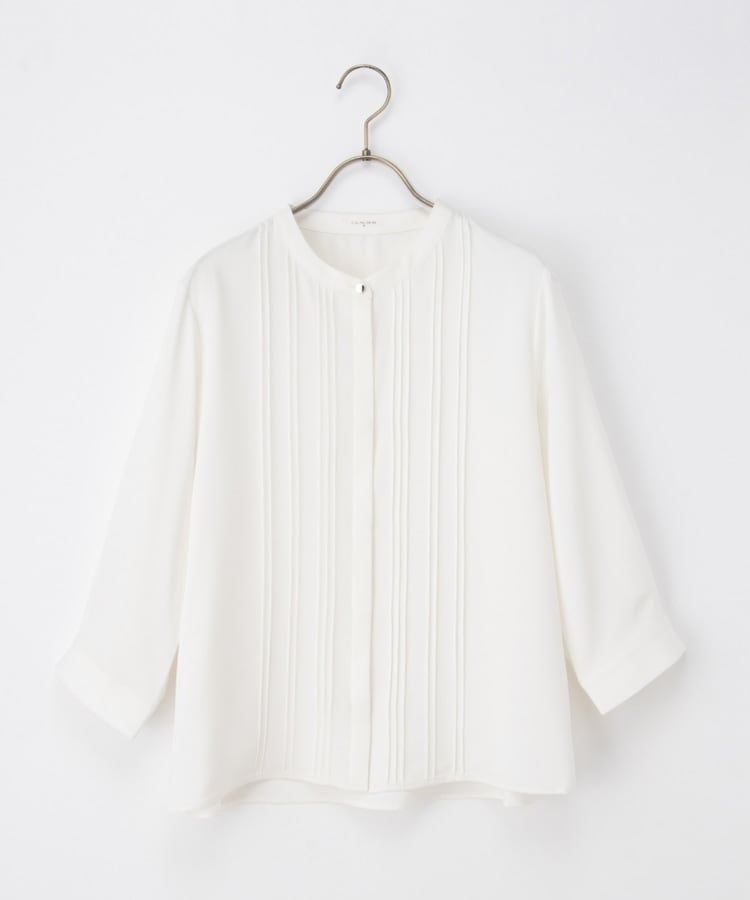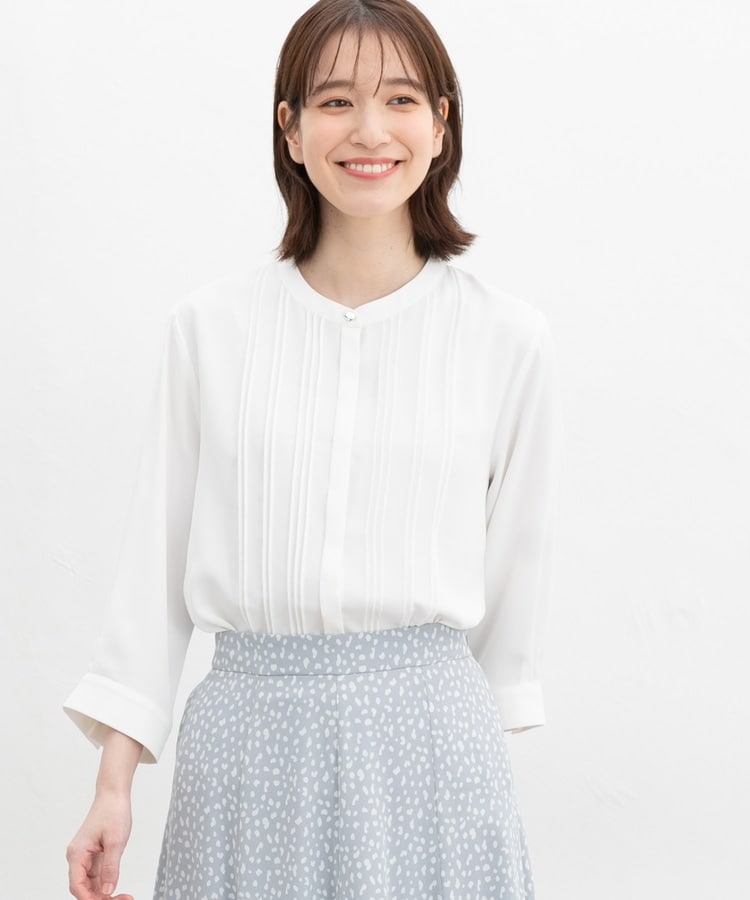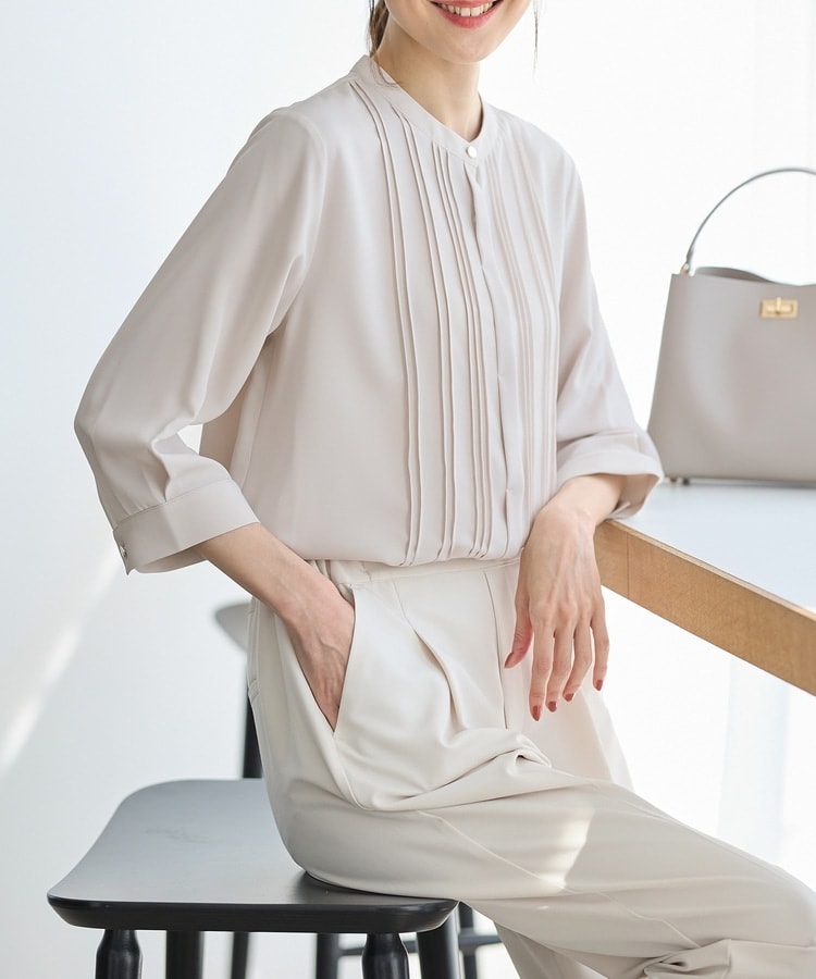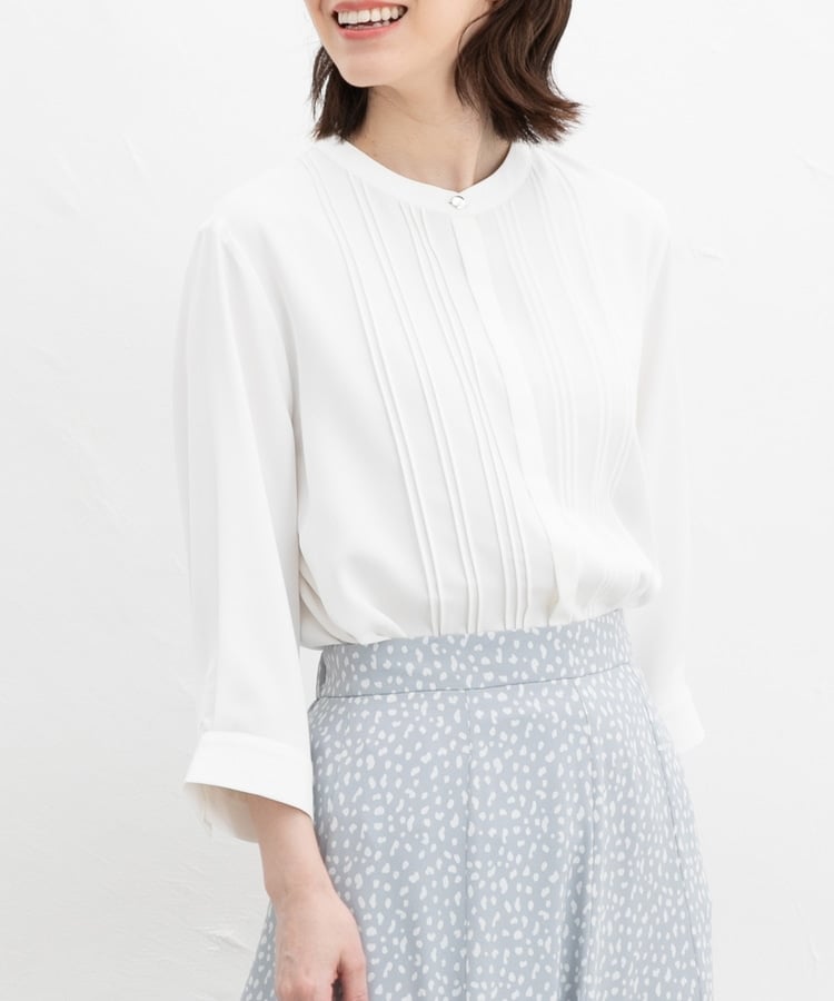 フロントのピンタックがフェミニンで華やかなデザイン。