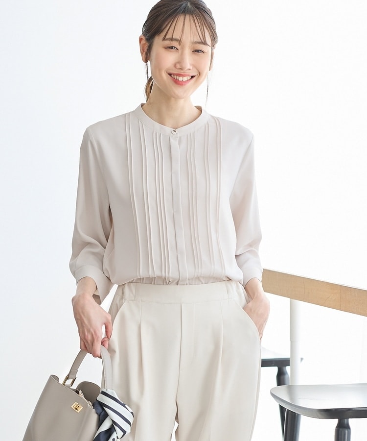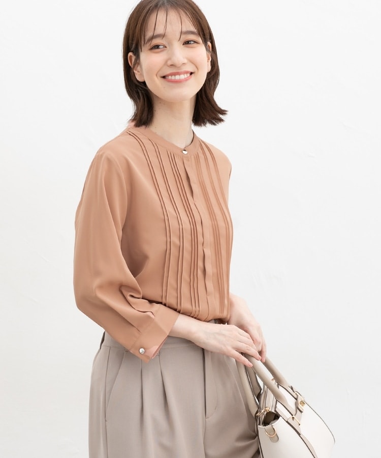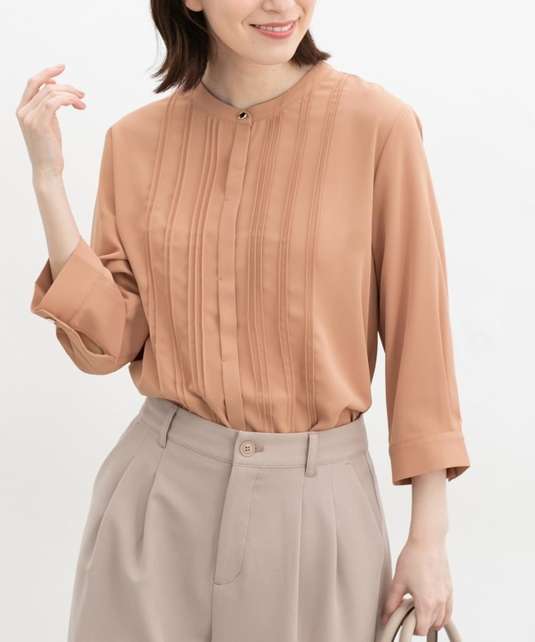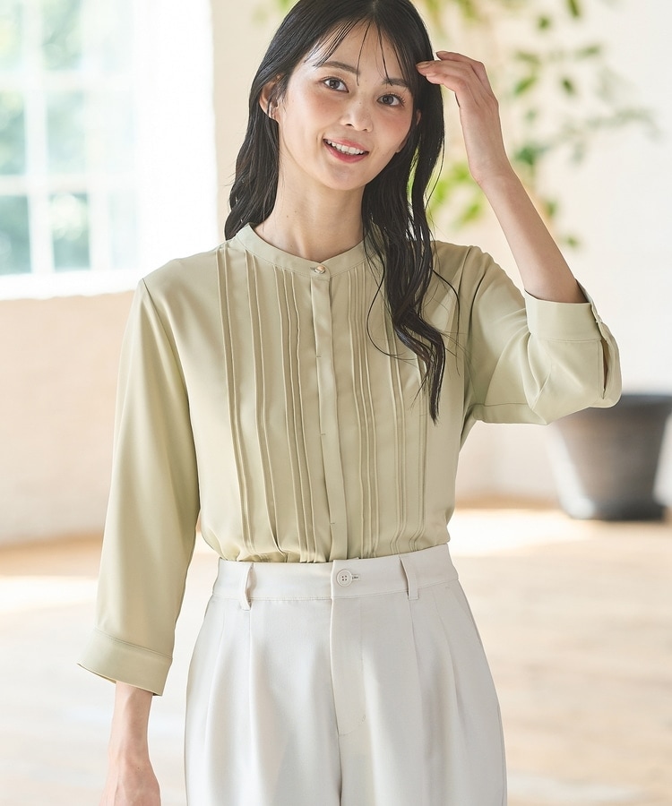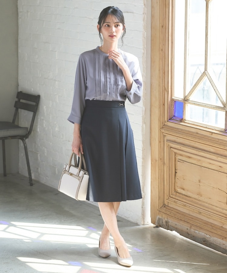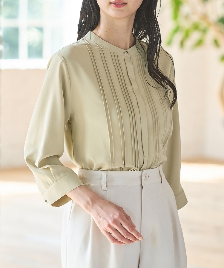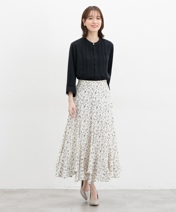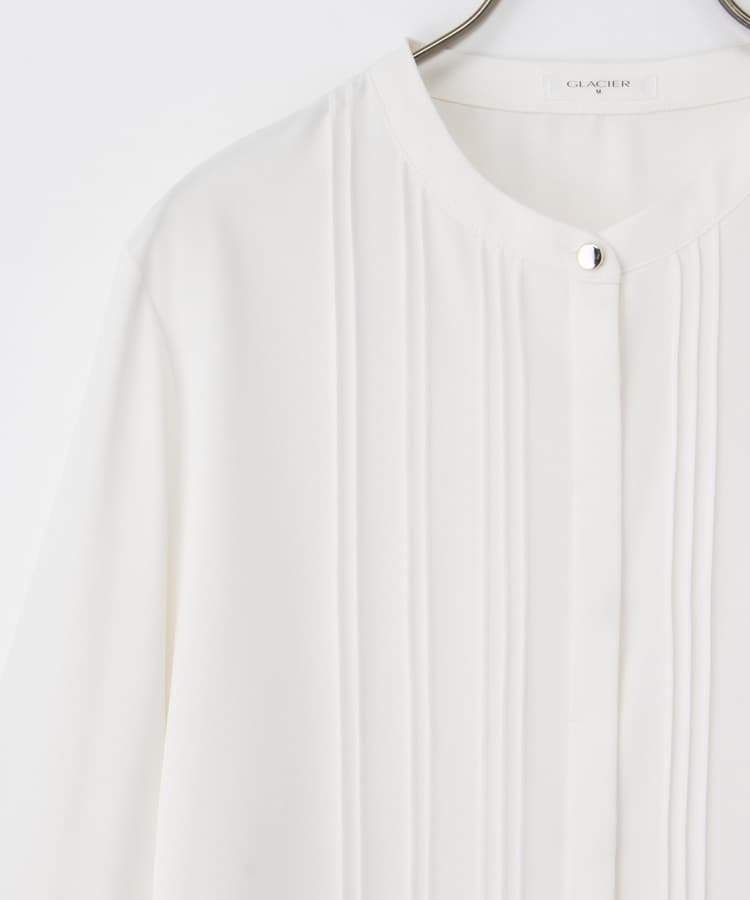 フロントのピンタックがフェミニンで華やかなデザイン。