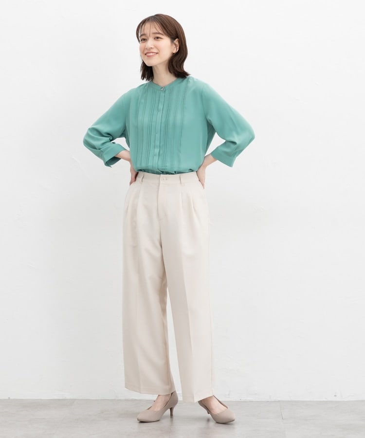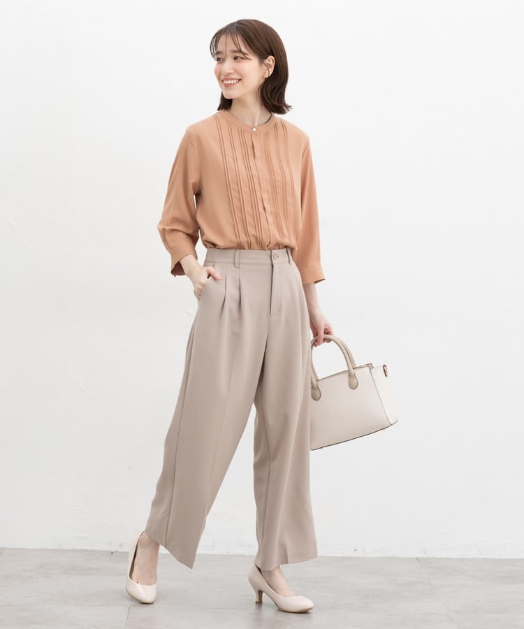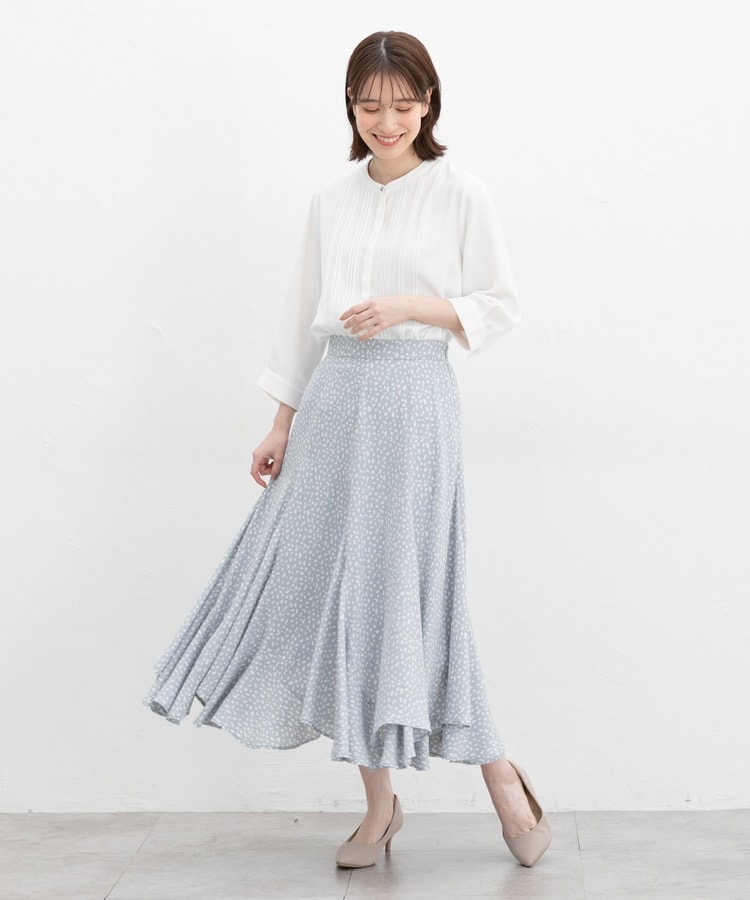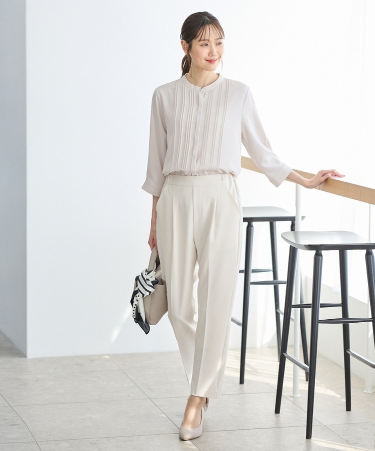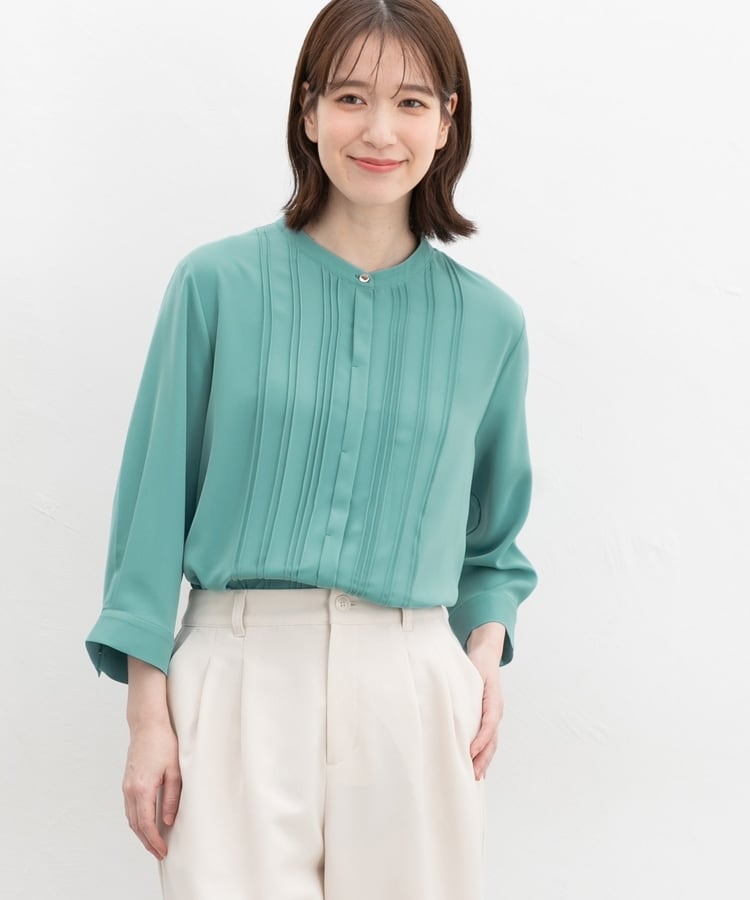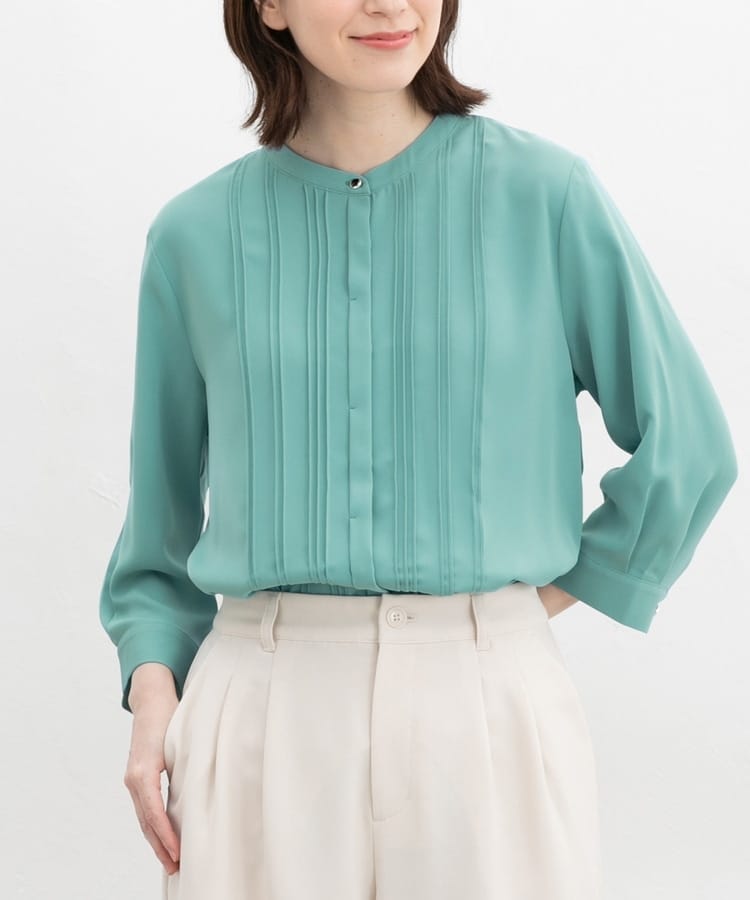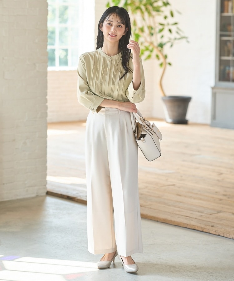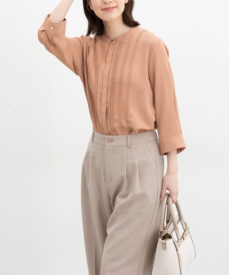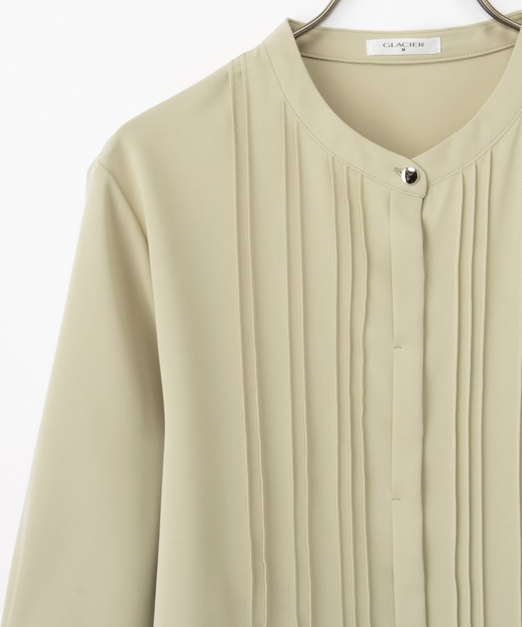 フロントのピンタックがフェミニンで華やかなデザイン。