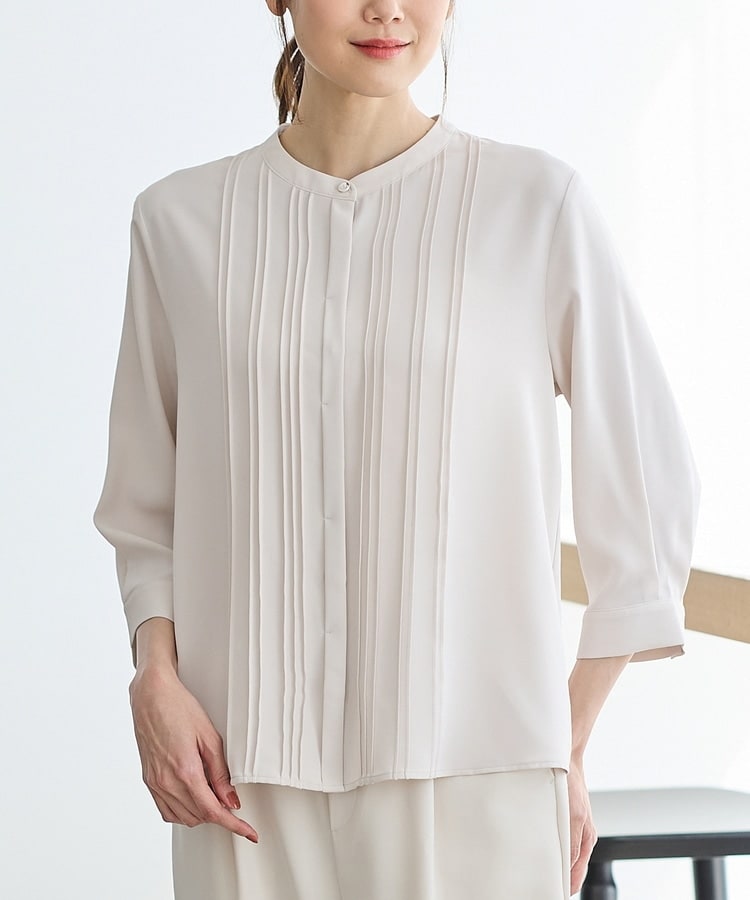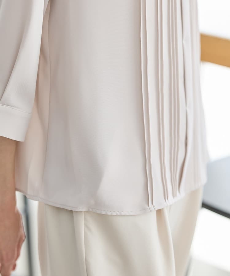 フロントのピンタックがフェミニンで華やかなデザイン。