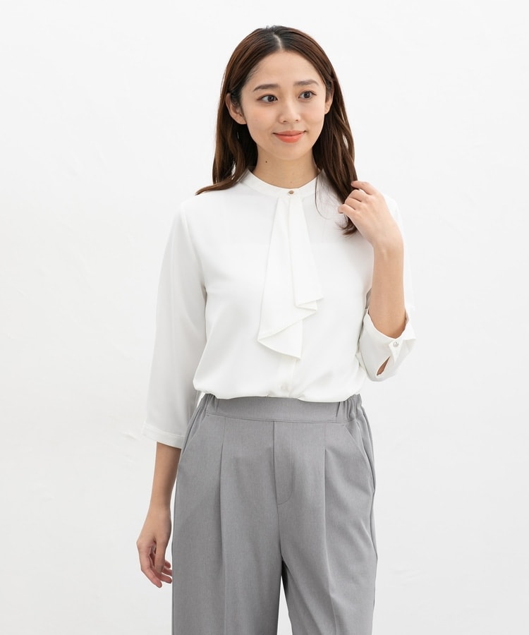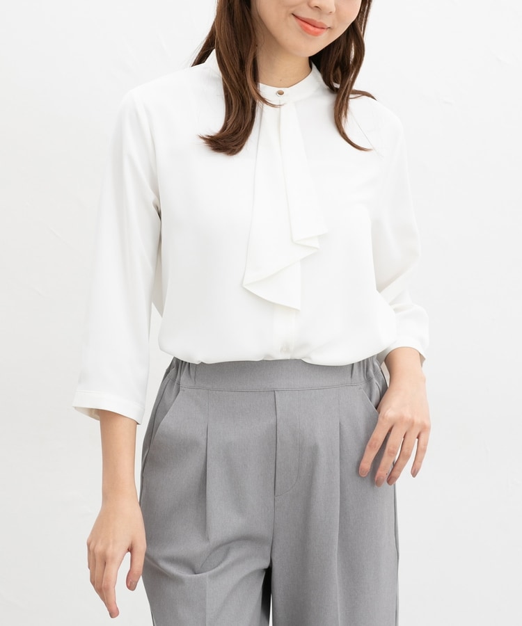 結び直しの必要がない、流れるようなドレープが上品なボウタイデザイン。