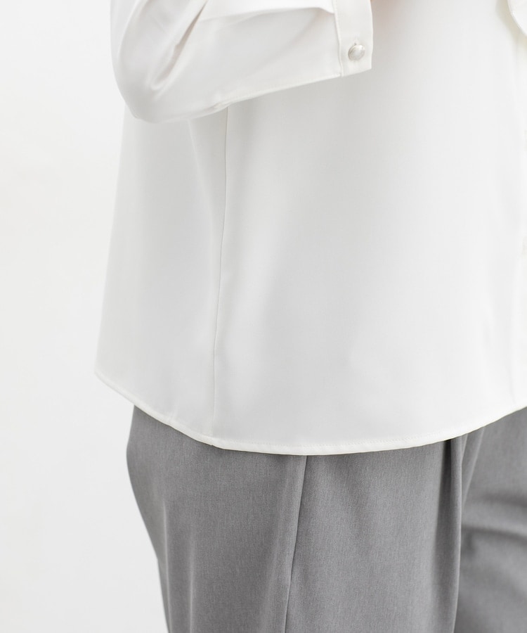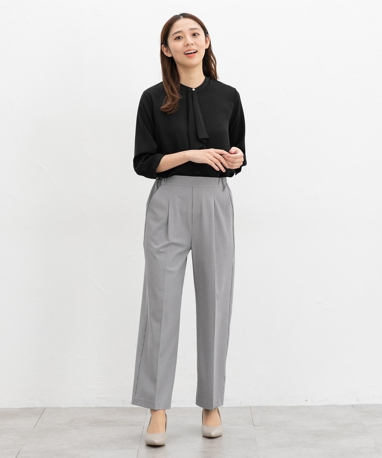 バックにタックを入れた、身体のラインを拾いにくく動きやすいゆったりめシルエット。