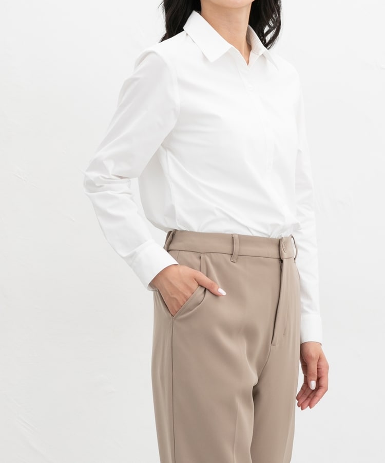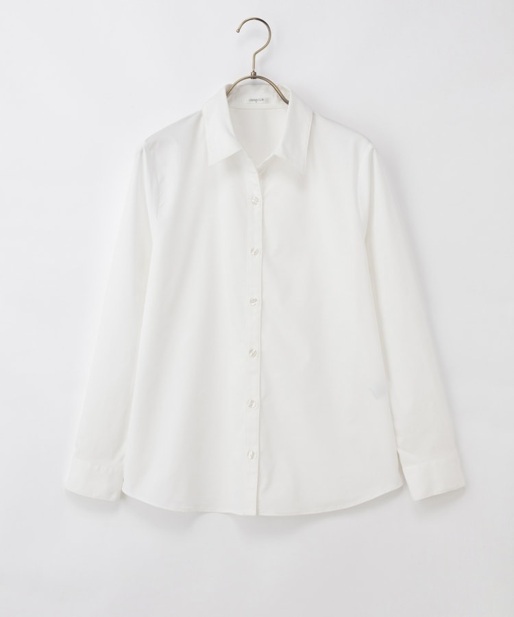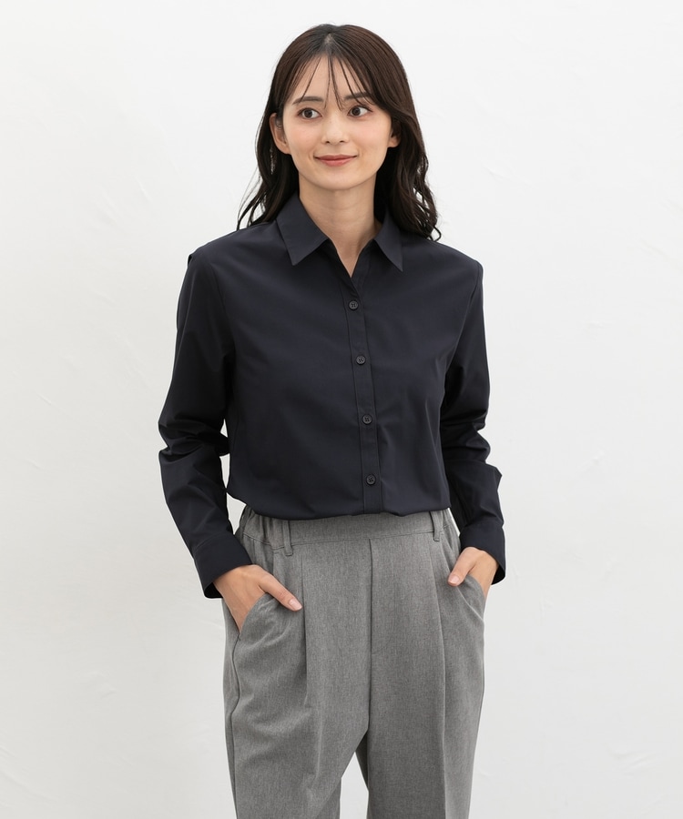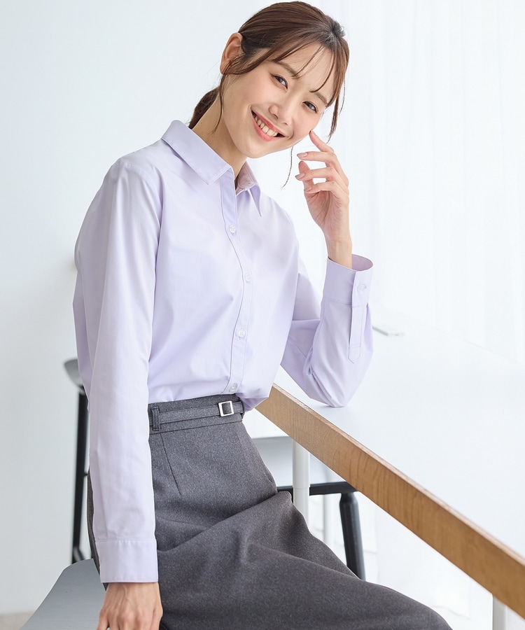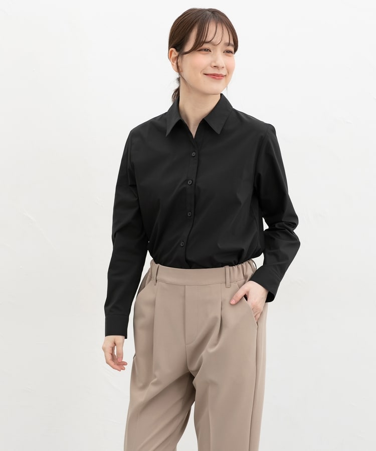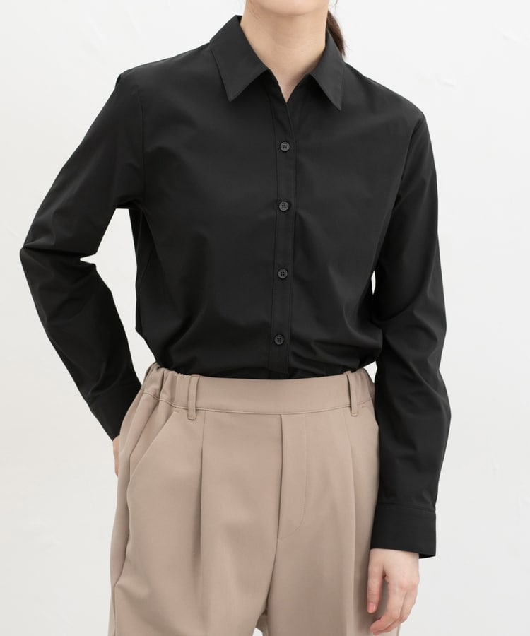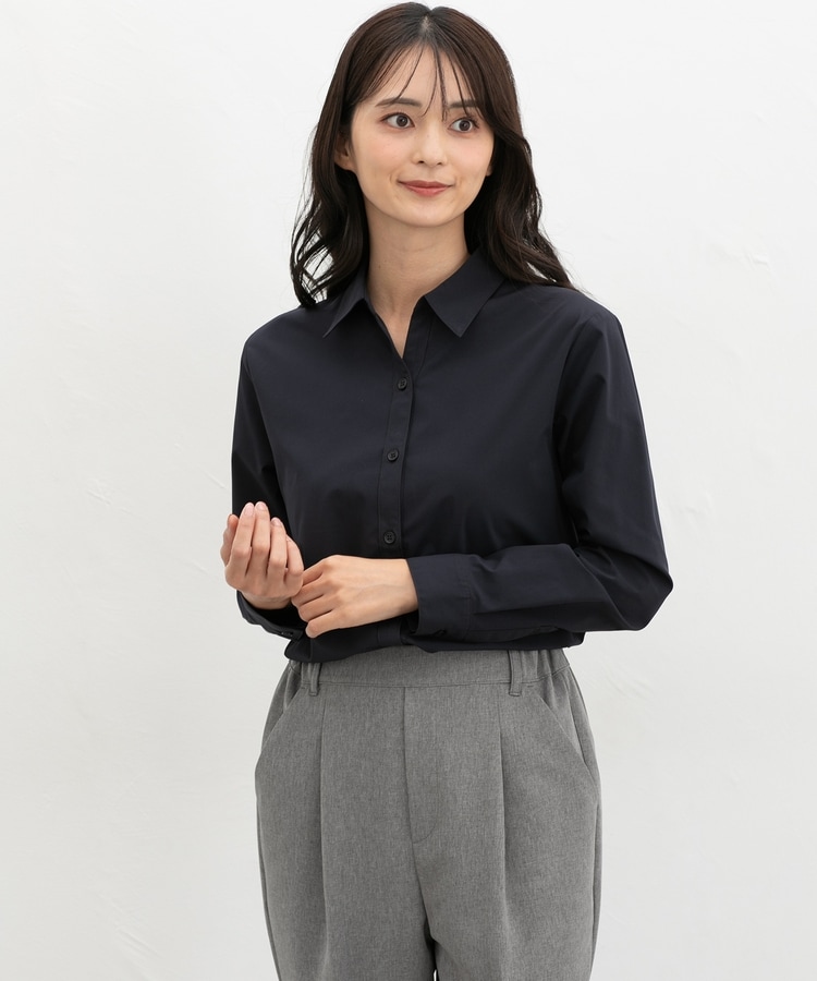 首元がすっきり見えるスキッパーで、着回し力抜群のベーシックなシンプルデザイン。