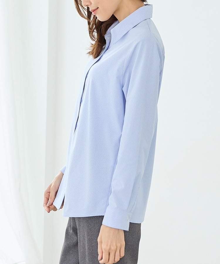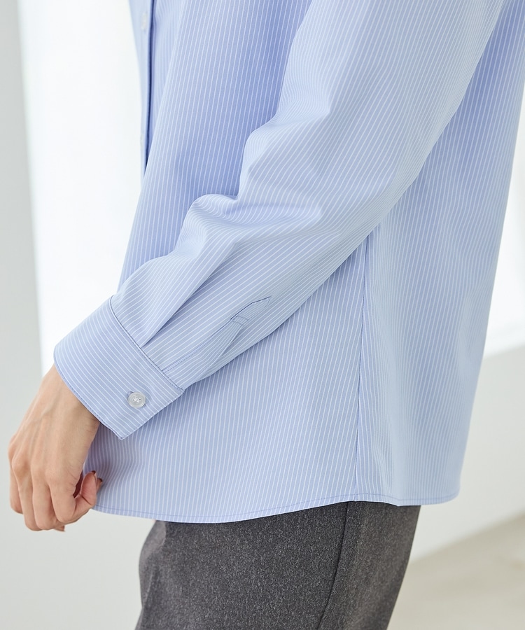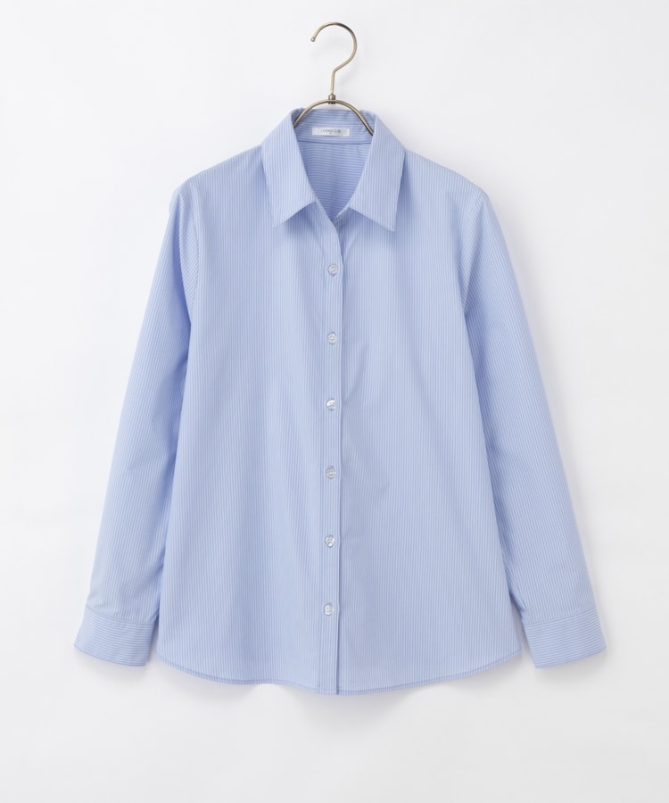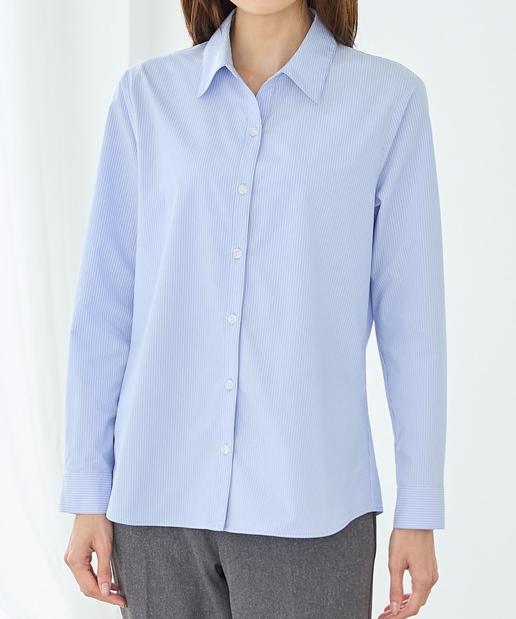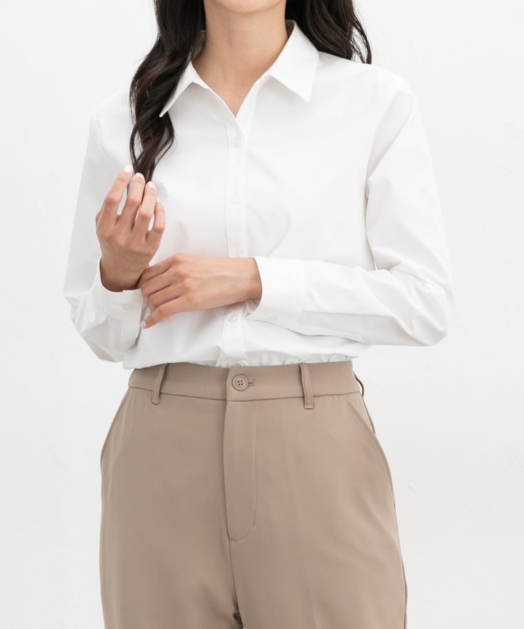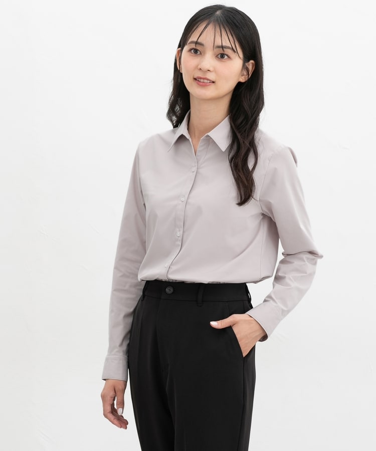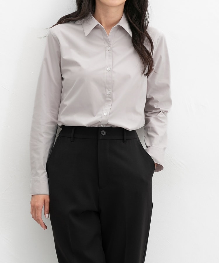 首元がすっきり見えるスキッパーで、着回し力抜群のベーシックなシンプルデザイン。
