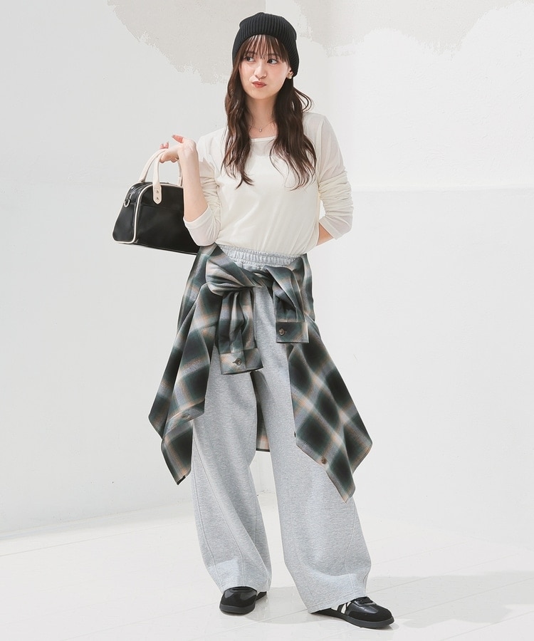 スウェットやニットとレイヤードしたり、腰に巻くのも◎