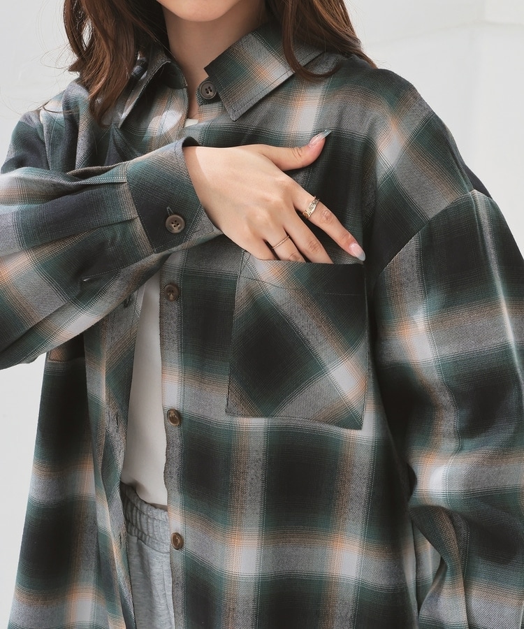 トレンド感たっぷりな、ヒップまですっぽり隠れる丈感のゆったりシルエット。