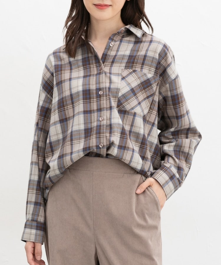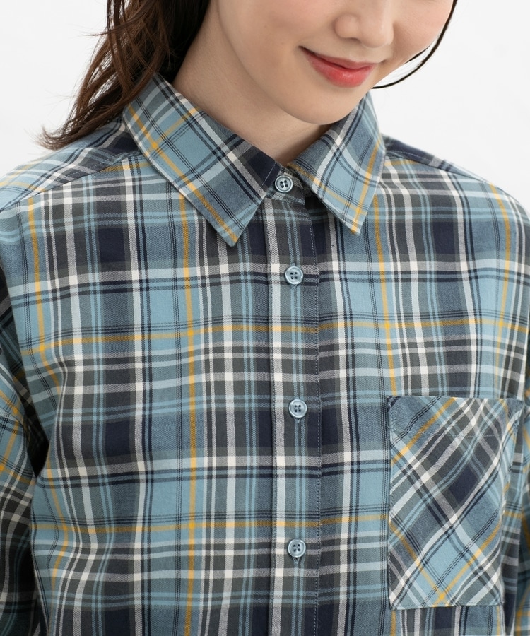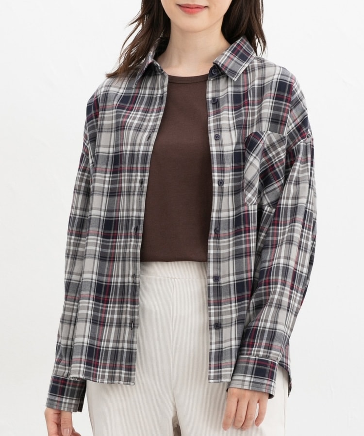 ベーシックなレギュラーカラーに季節感のあるチェック柄が大人可愛いデザイン。