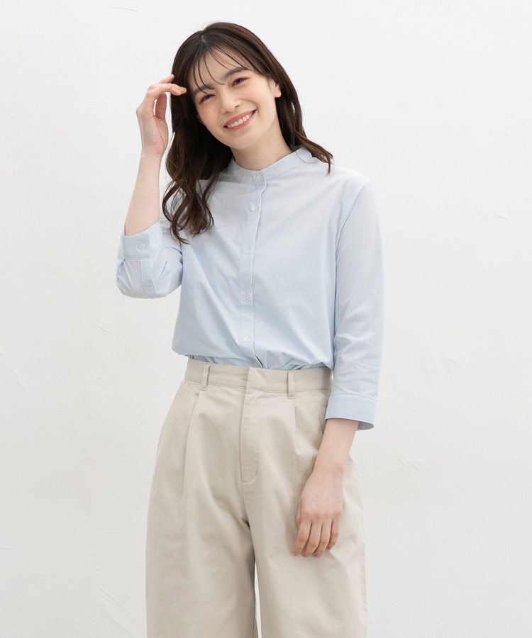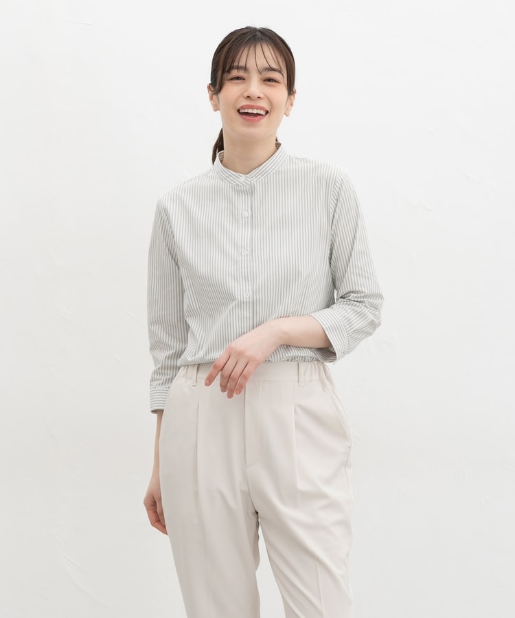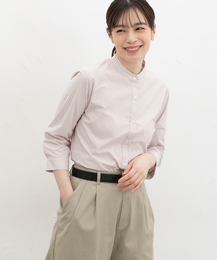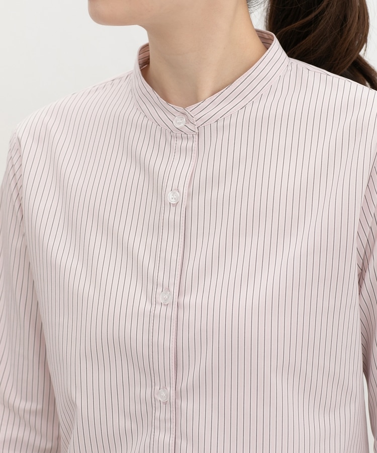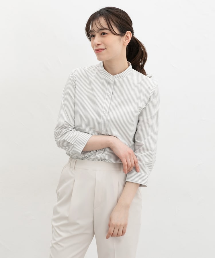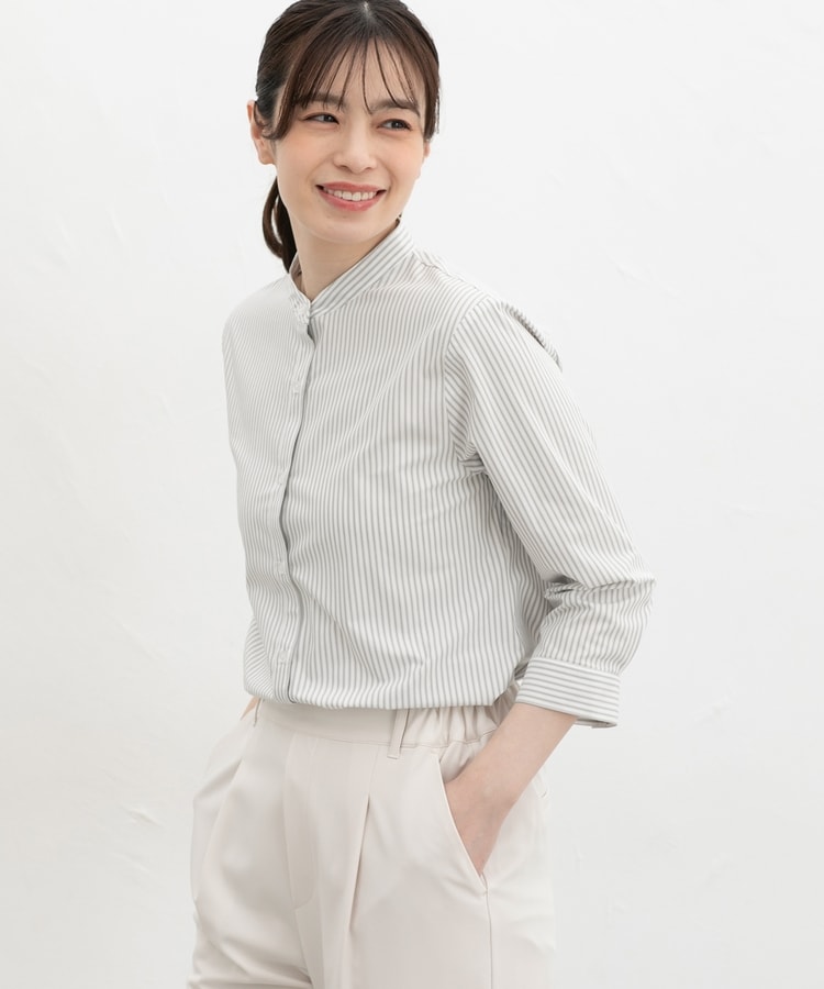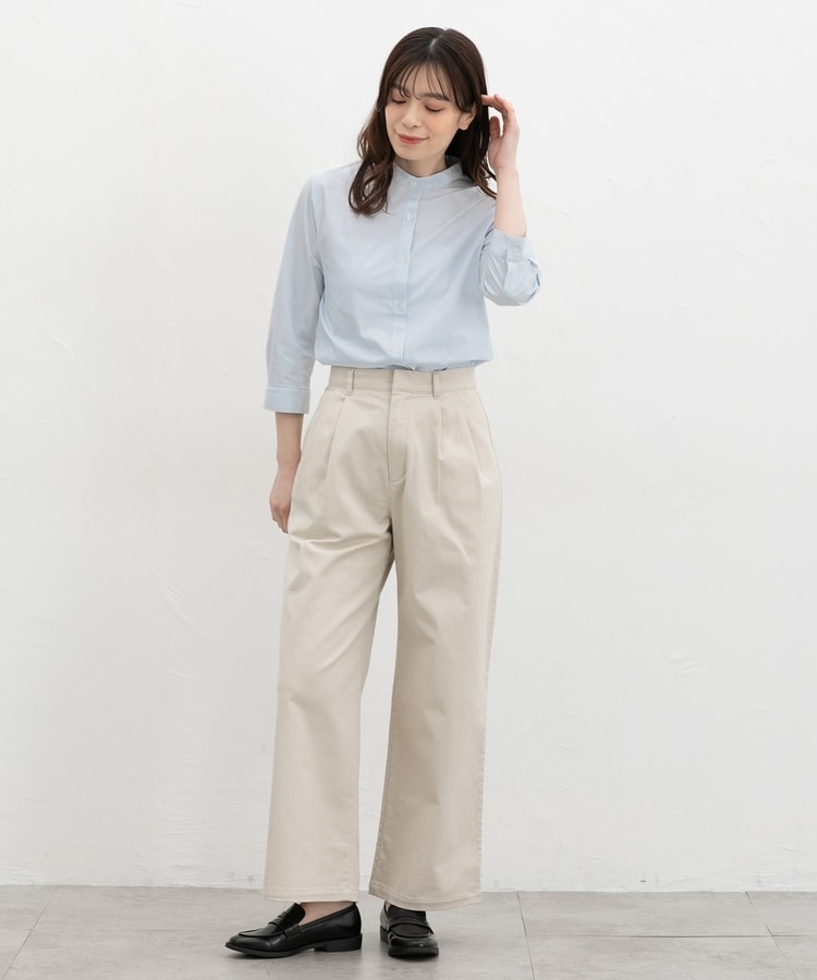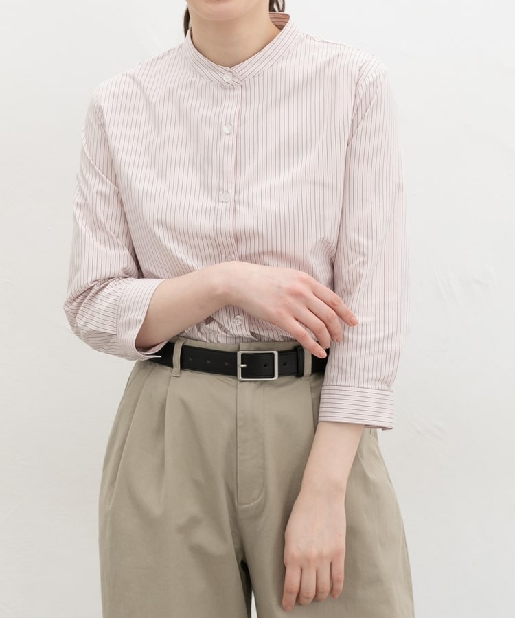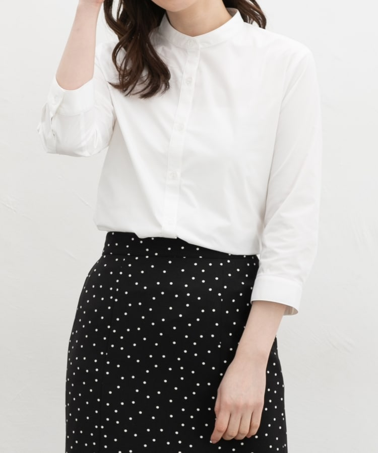 優し気なマオカラーで着回し力抜群のベーシックなデザイン。