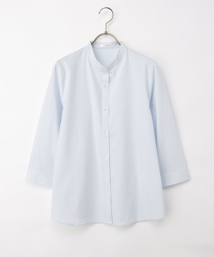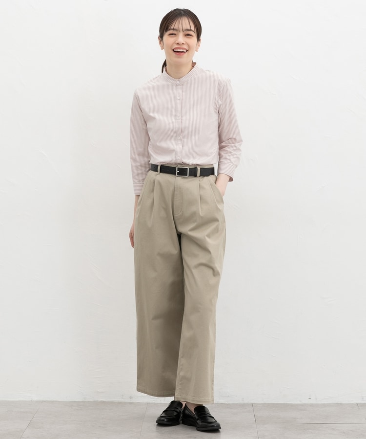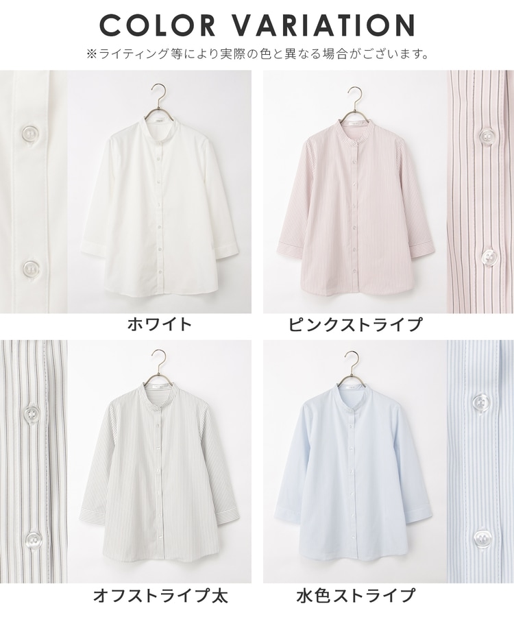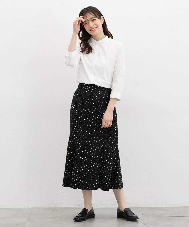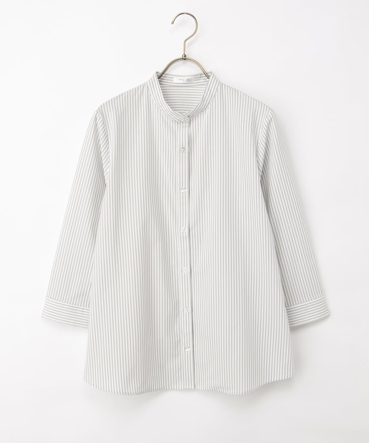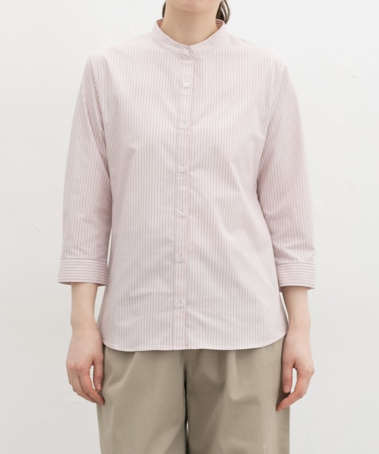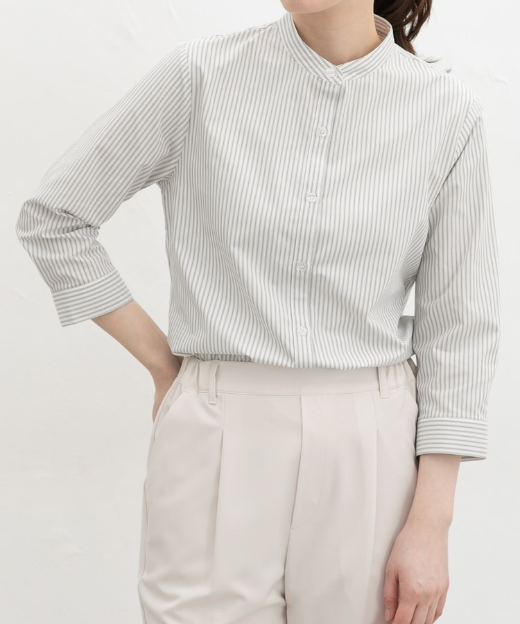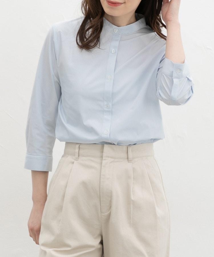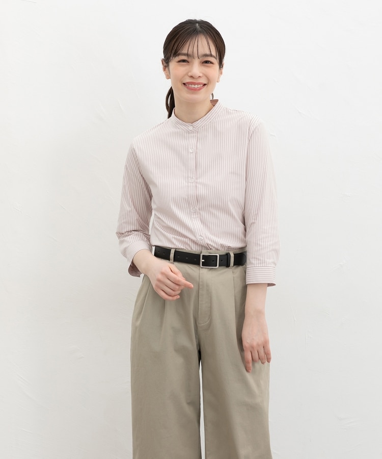 優し気なマオカラーで着回し力抜群のベーシックなデザイン。