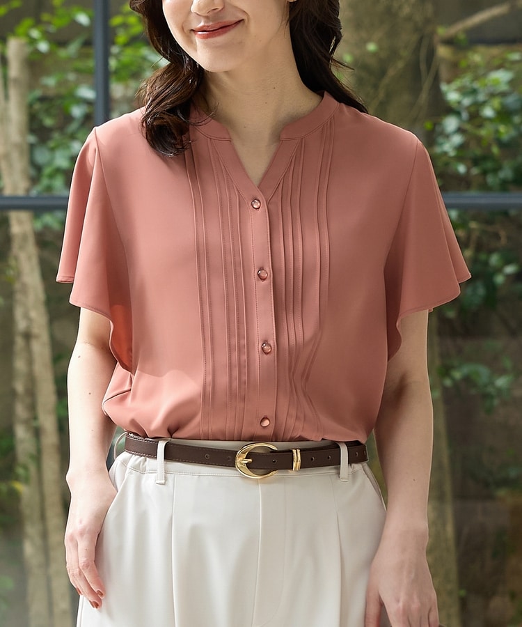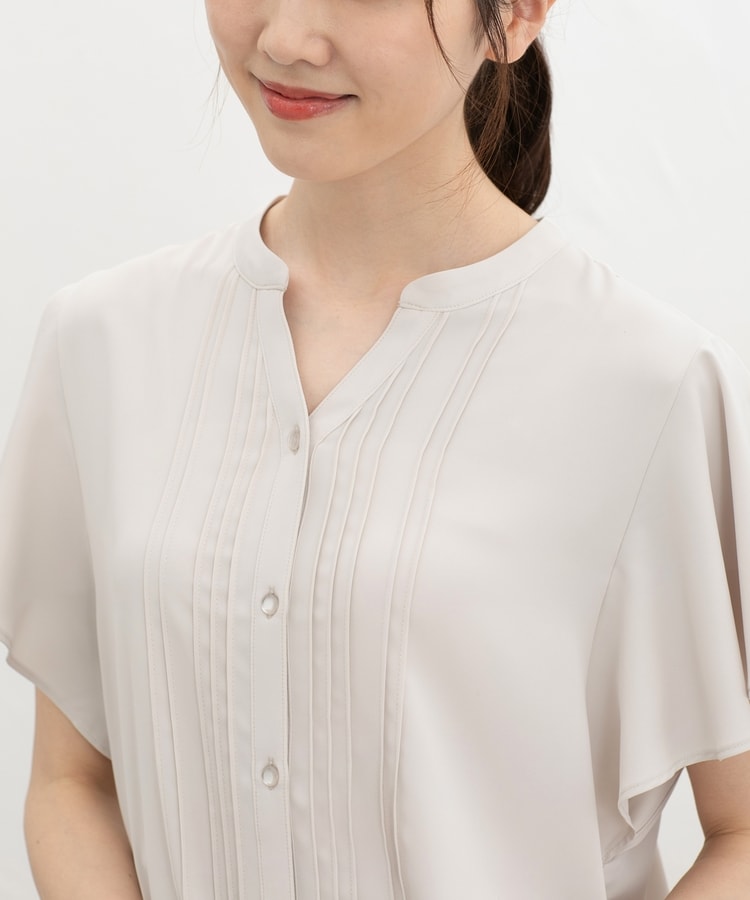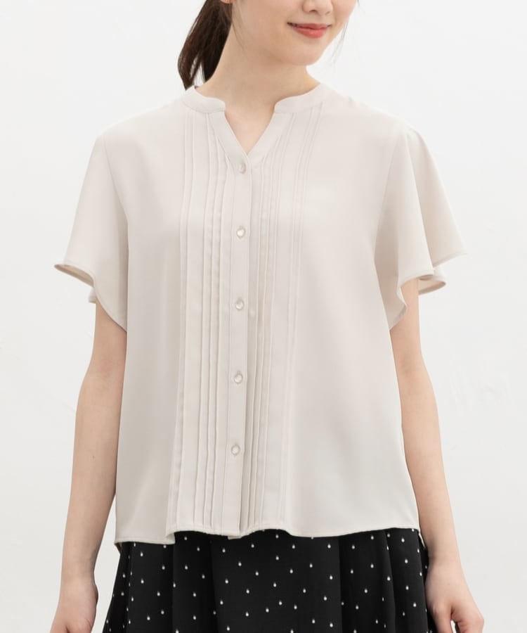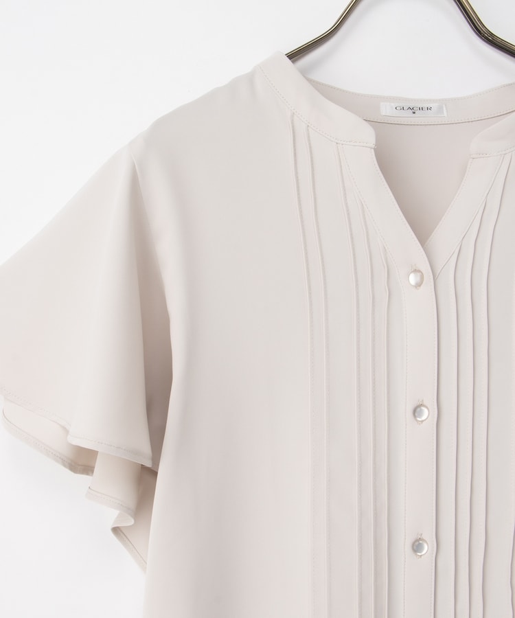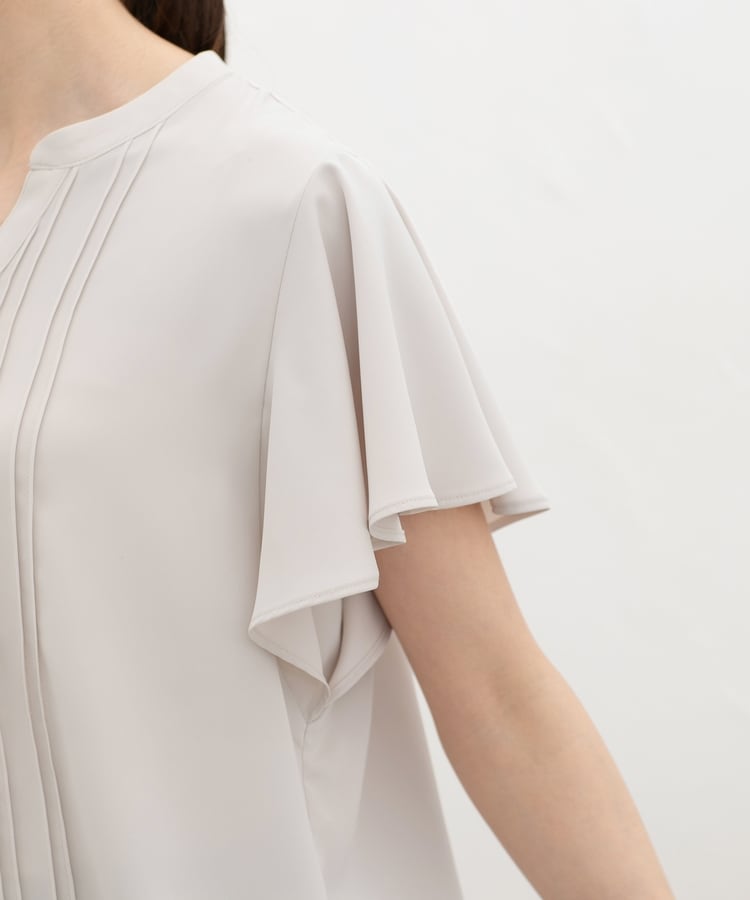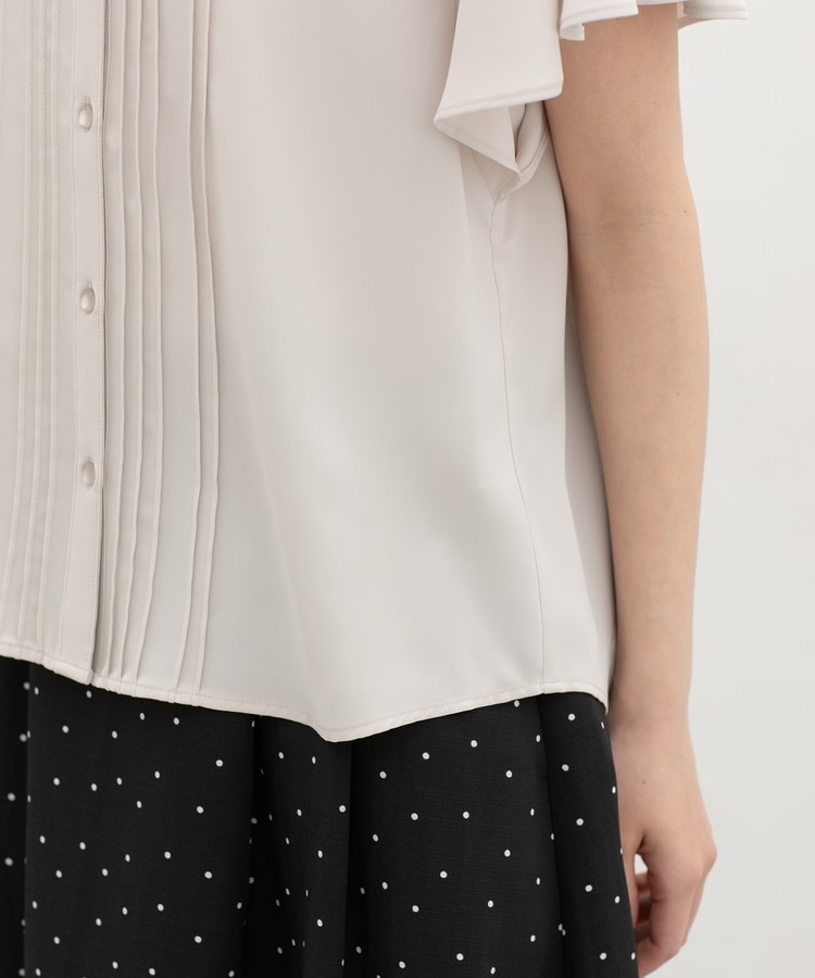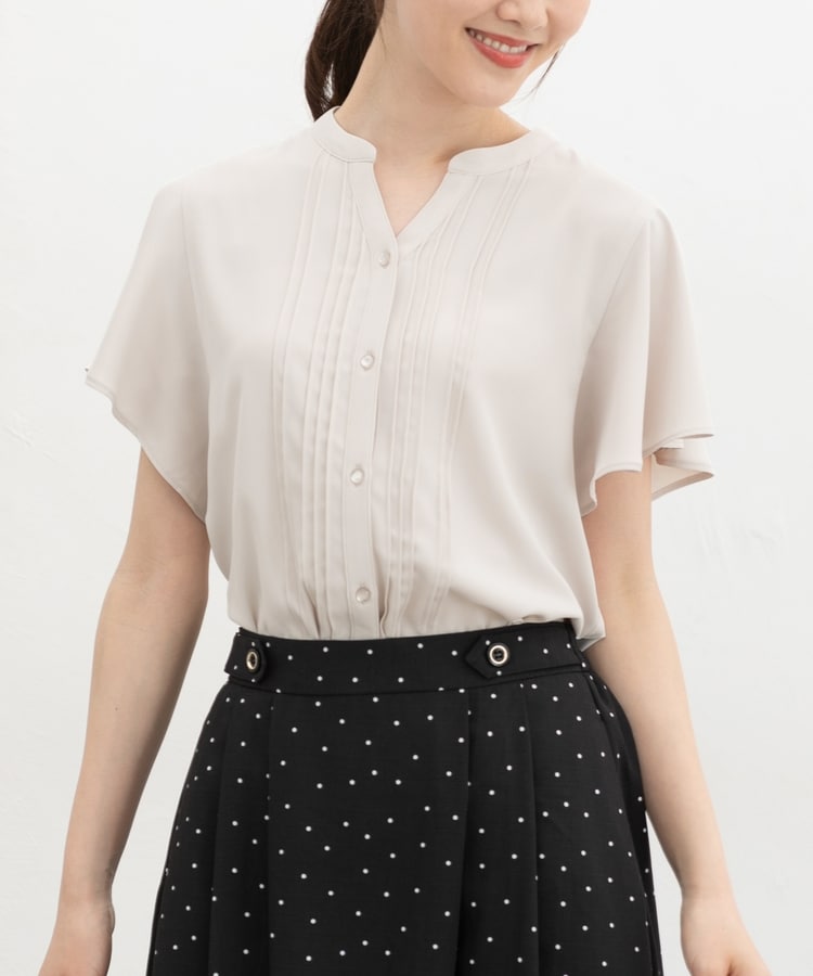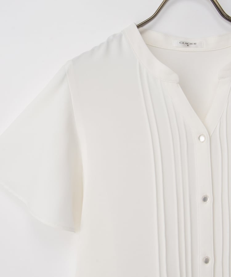 首元がすっきり見えるマオスキッパーとフロントのピンタックが、フェミニンで上品なデザイン。