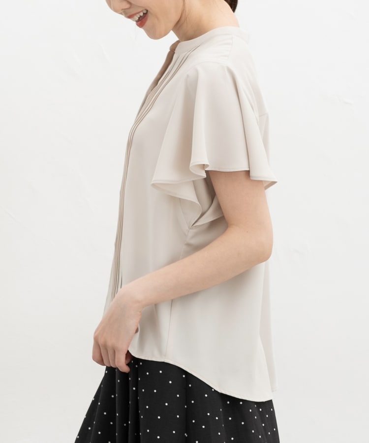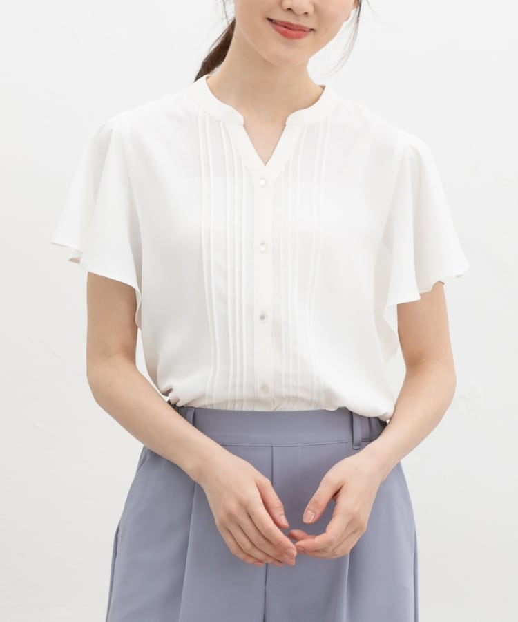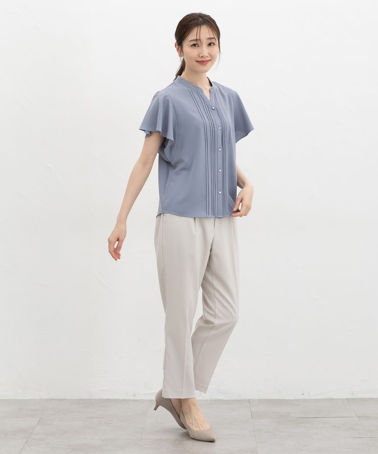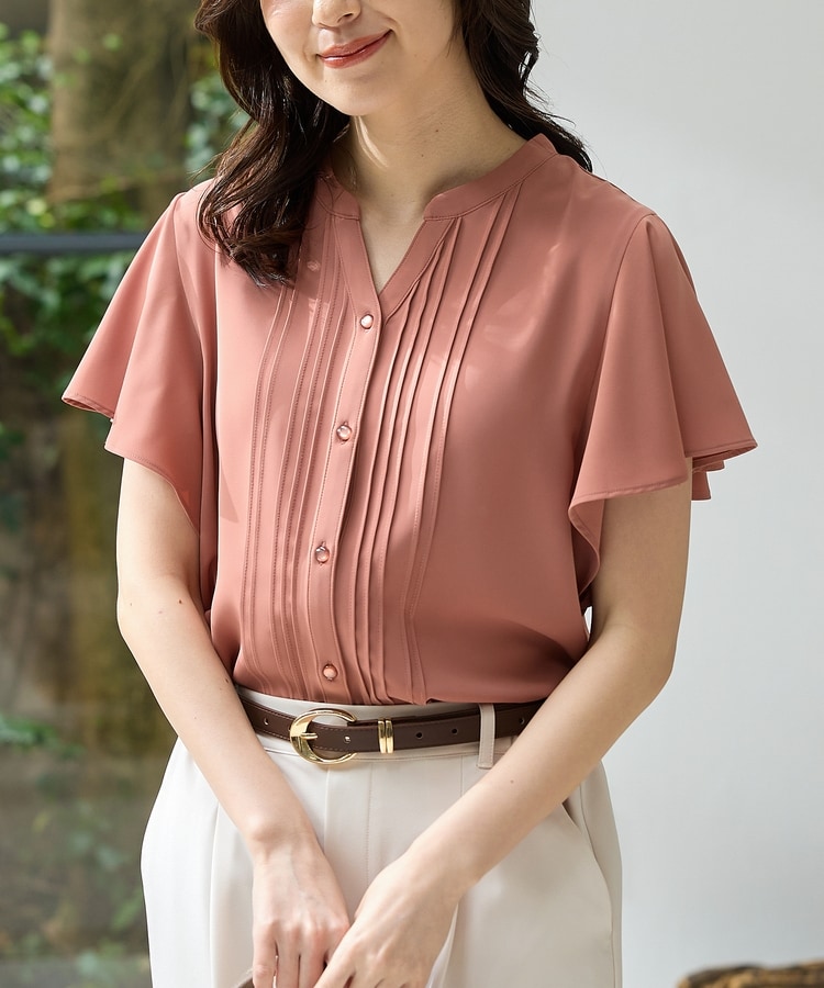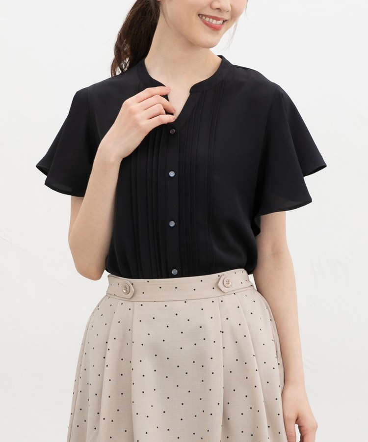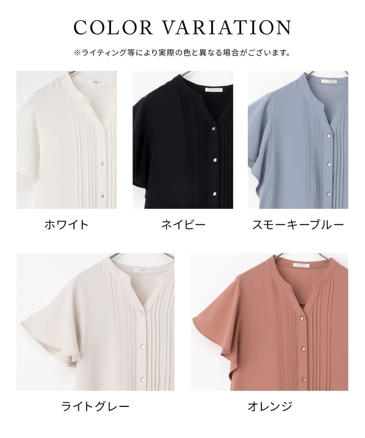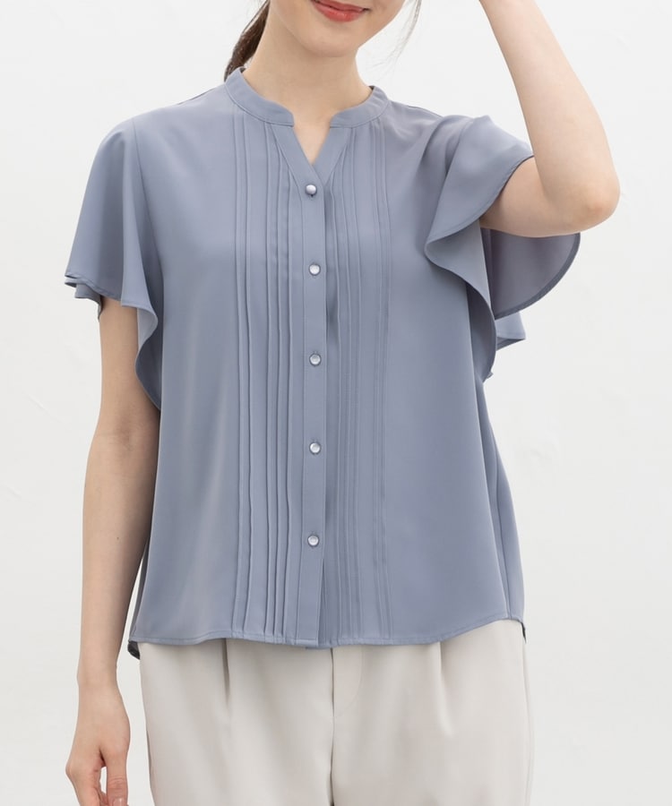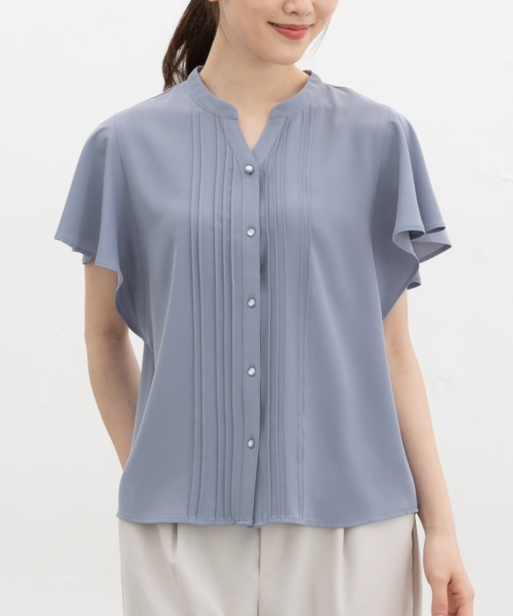 首元がすっきり見えるマオスキッパーとフロントのピンタックが、フェミニンで上品なデザイン。