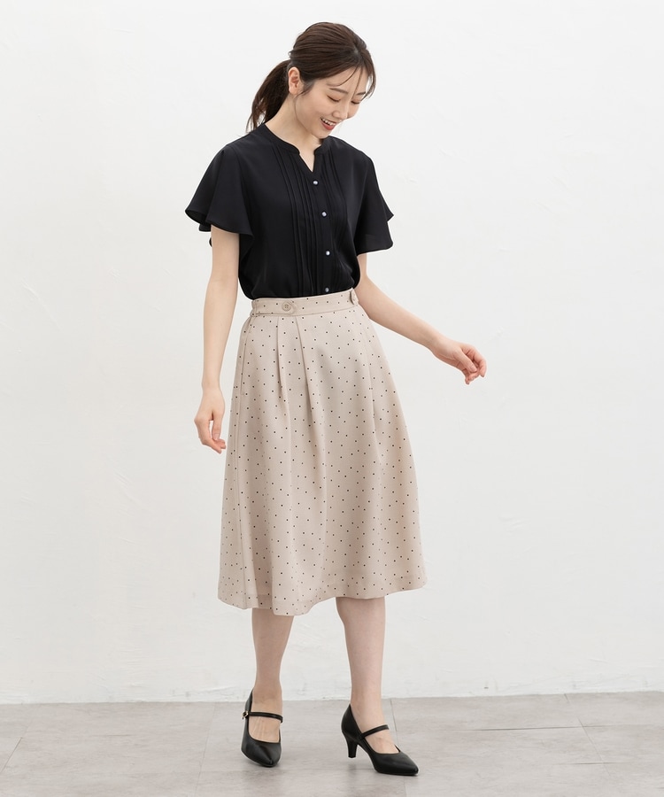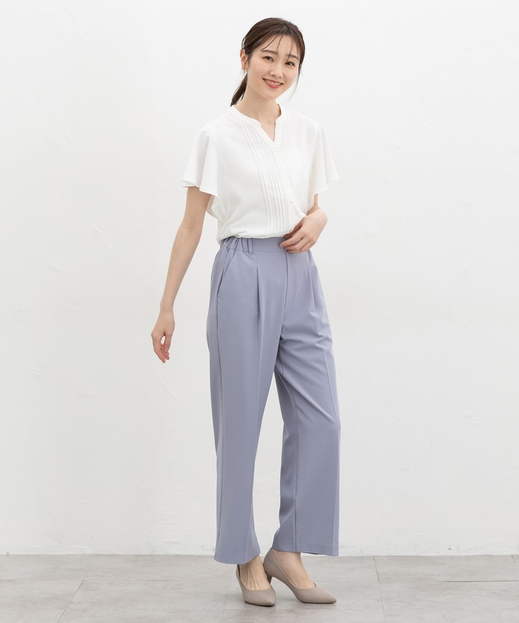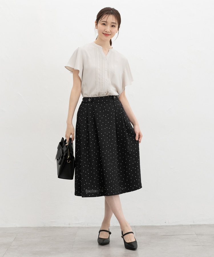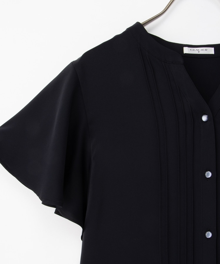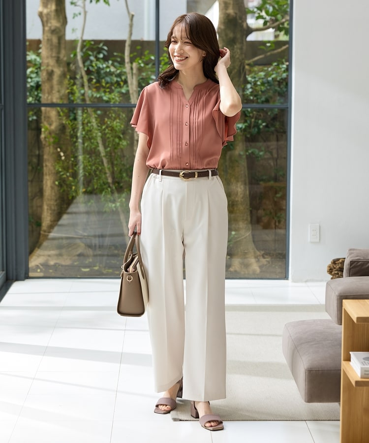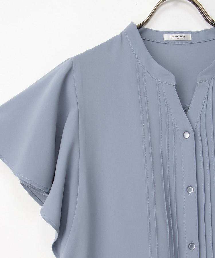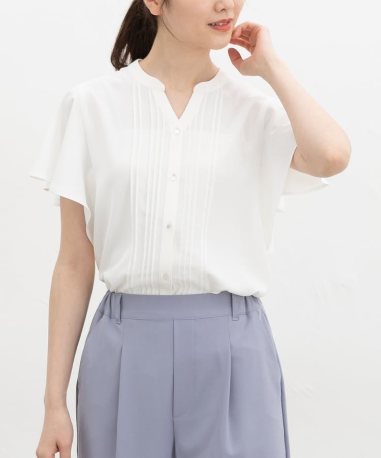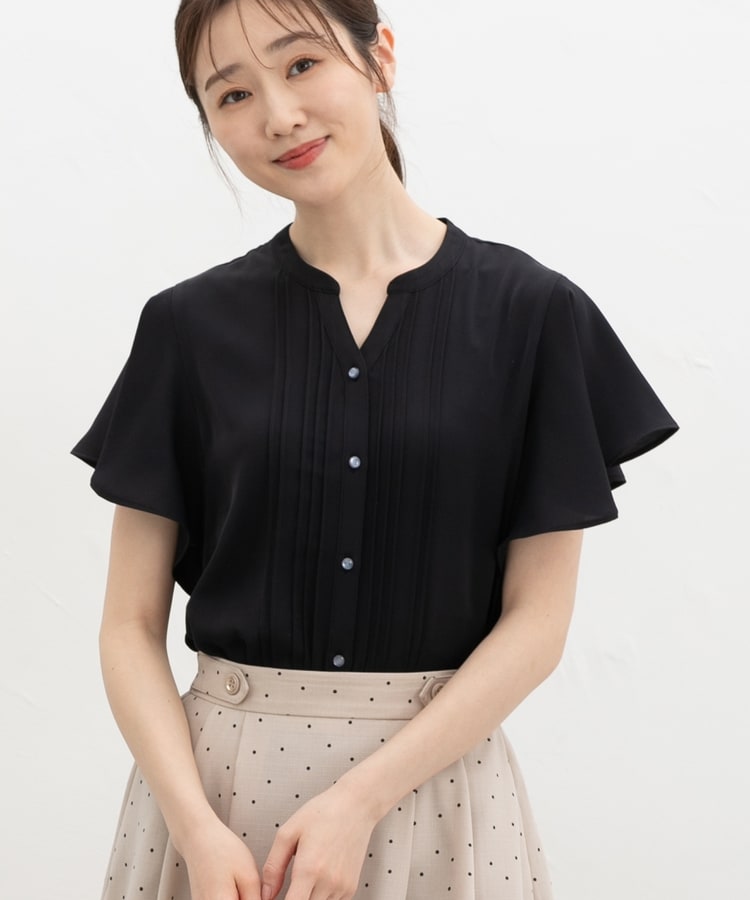 首元がすっきり見えるマオスキッパーとフロントのピンタックが、フェミニンで上品なデザイン。