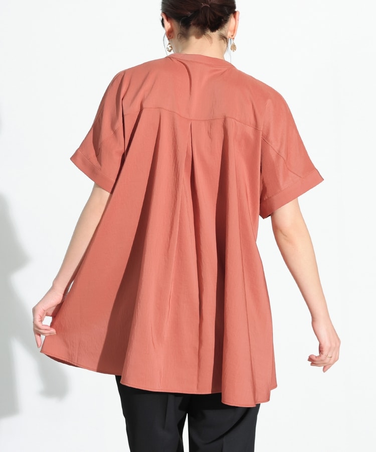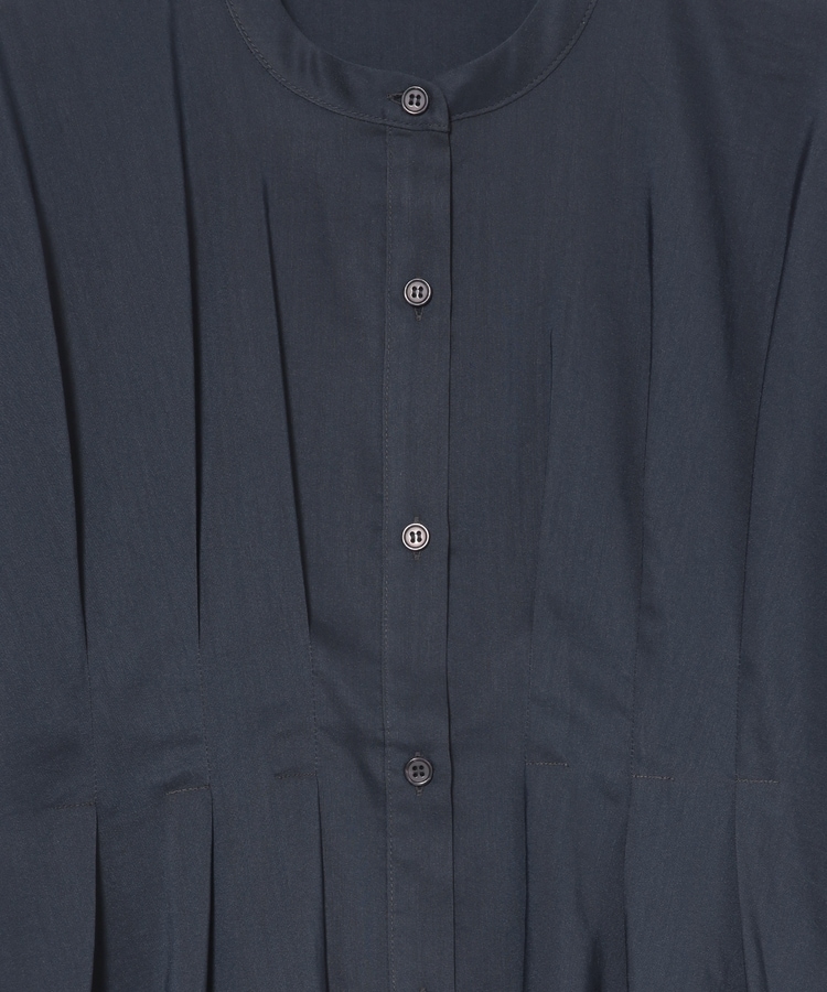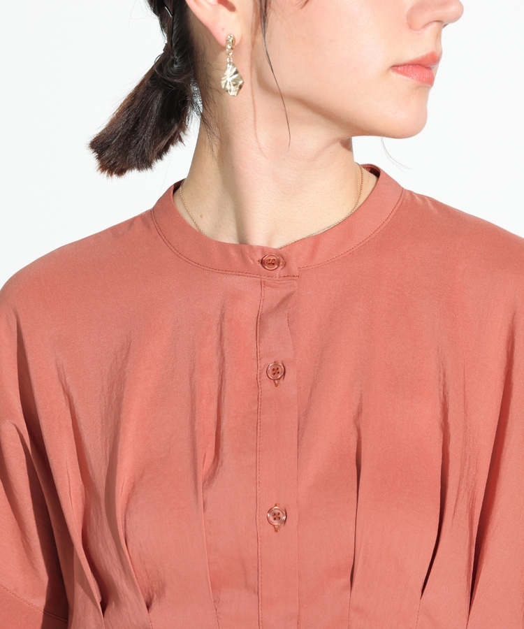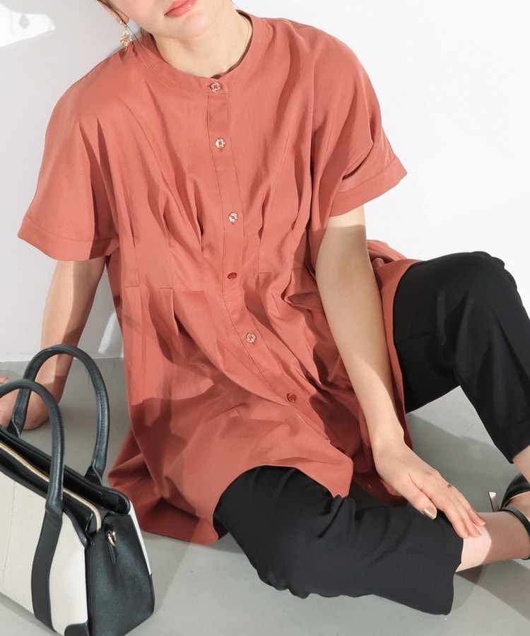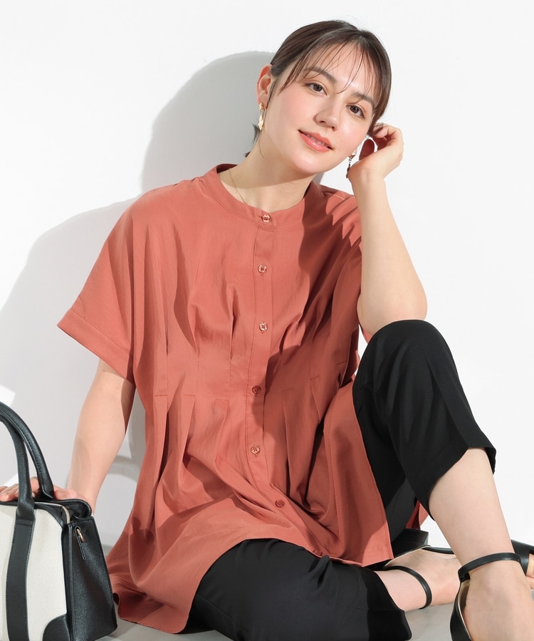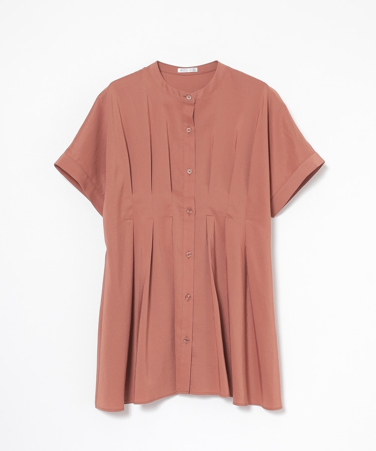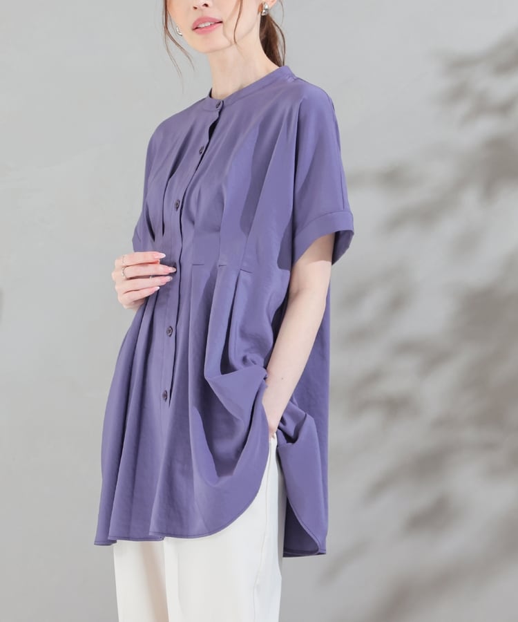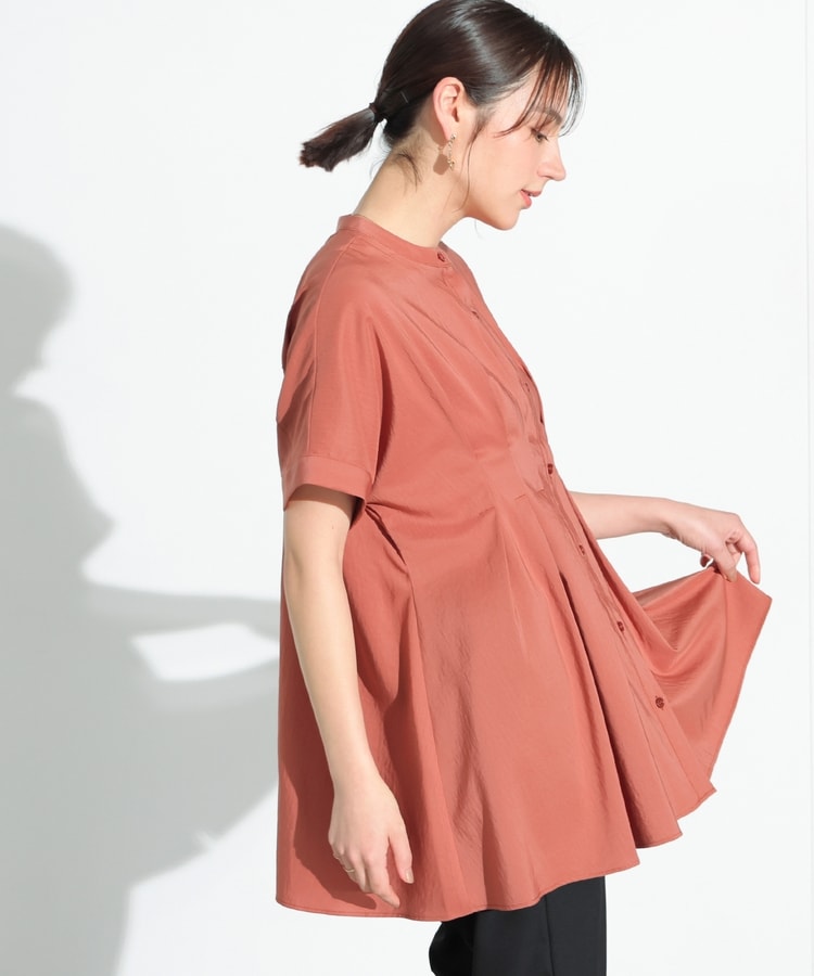 高めの位置に入れたタックでウエストをシェイプさせた、スタイルアップ効果抜群のメリハリシルエット。