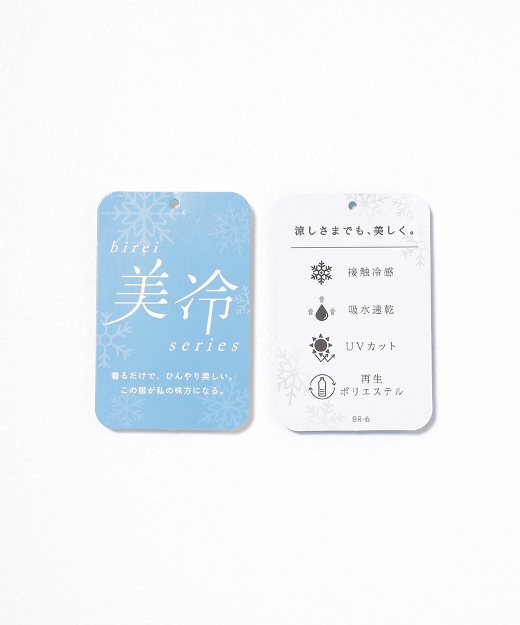 ひんやり快適な『接触冷感』と、素早く汗を吸収して乾きやすい『吸水速乾』、紫外線対策ができる『UVカット』の機能が付いた、触れるたび涼しく、着るだけで美しい『美冷』アイテム。