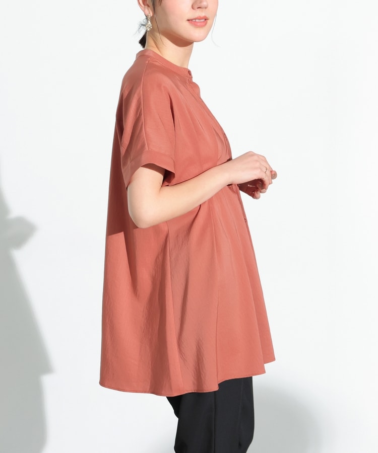 ゆったりした幅とヒップまですっぽり隠れる丈感で体型もカバー。