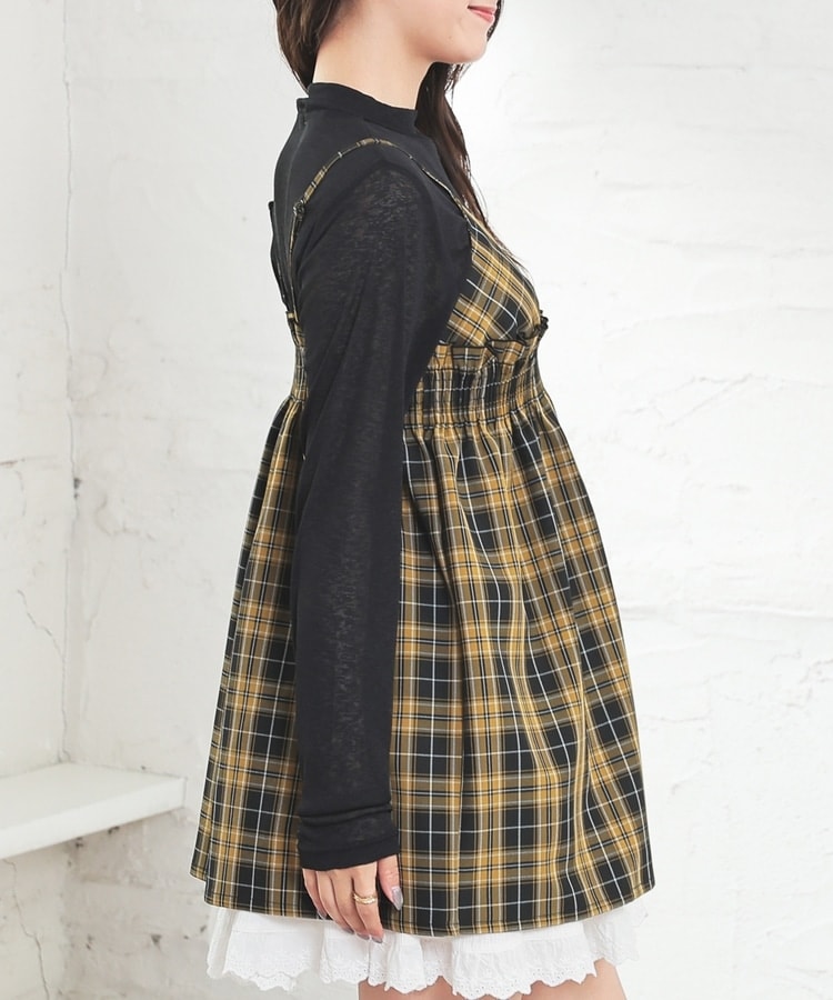 シャーリング使いで程よくフィットしながら、高めの切り替え位置から広がるシルエットで体型もカバー。