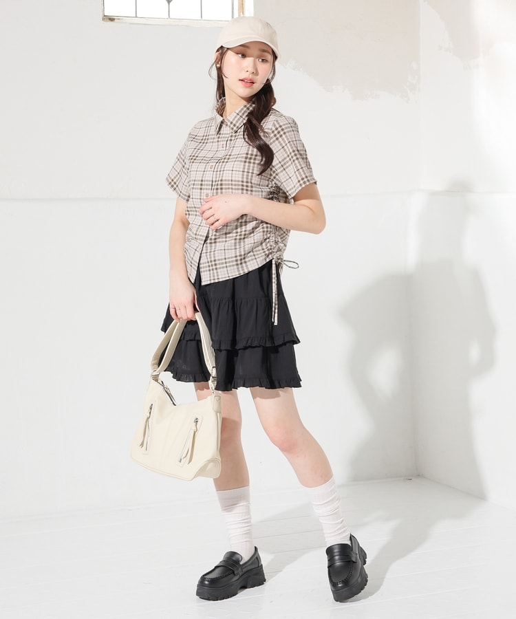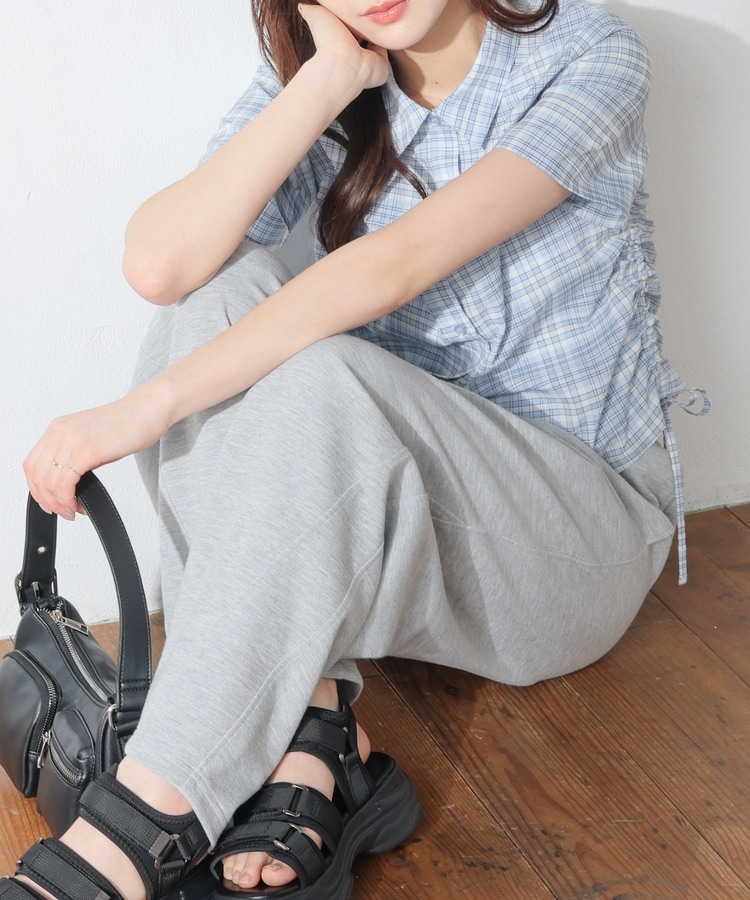 サイドのドロストでシルエットアレンジが楽しめるデザイン。