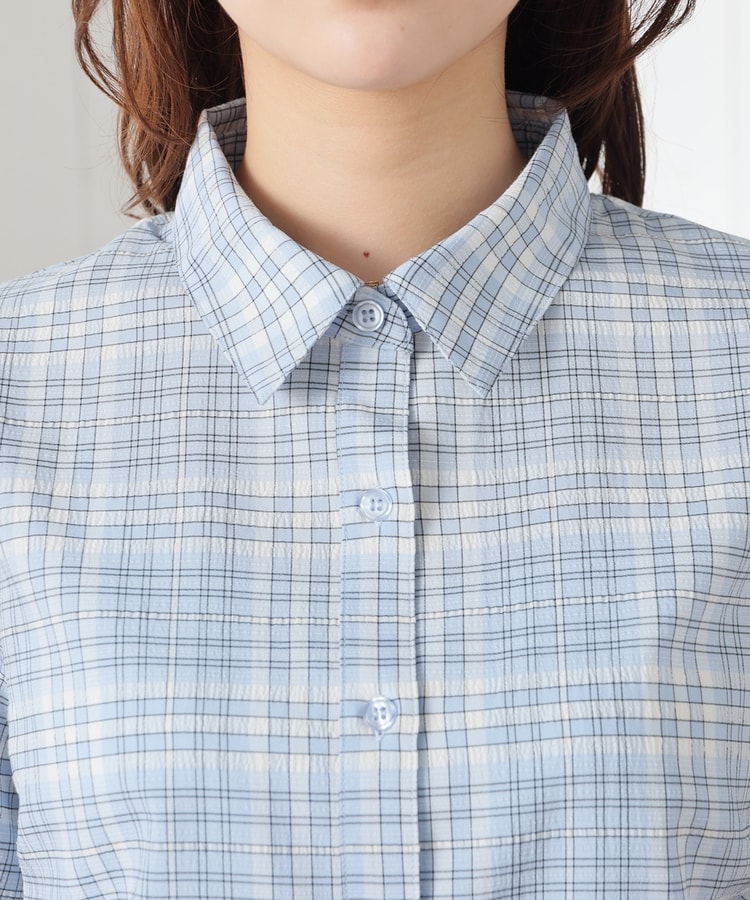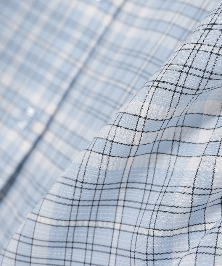ストレッチの利いた、表面変化がありさらっとした肌触りの綿混サッカー素材。