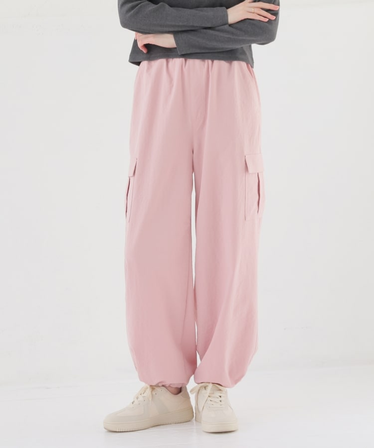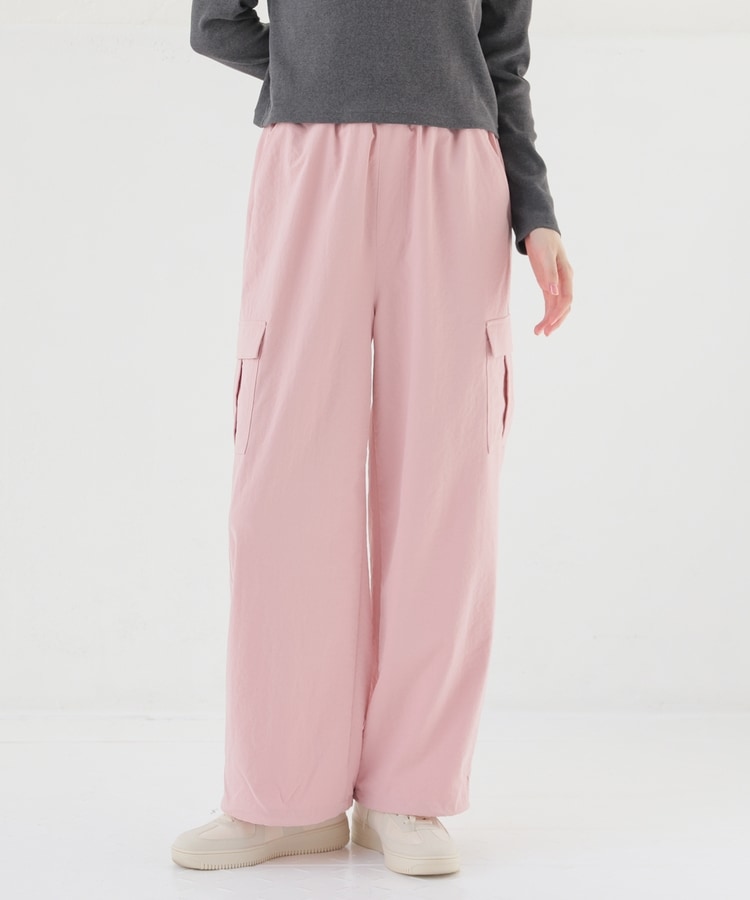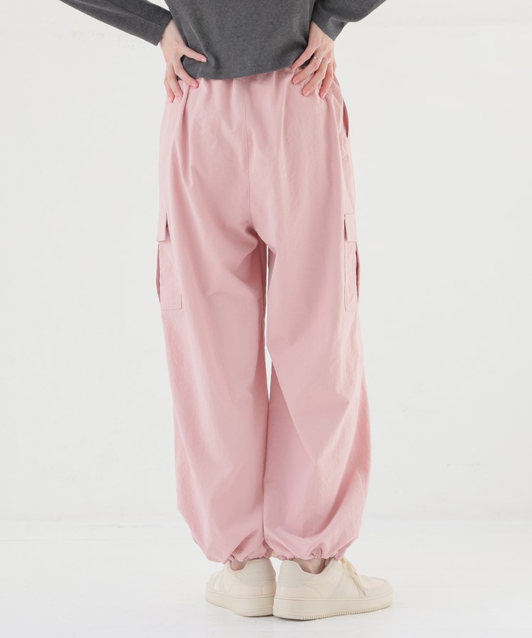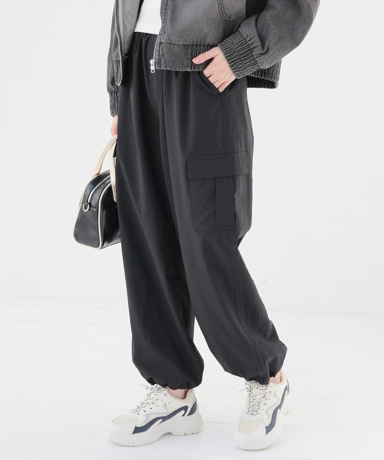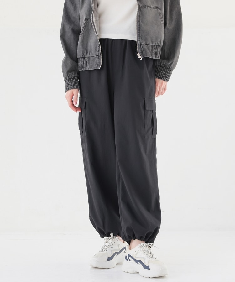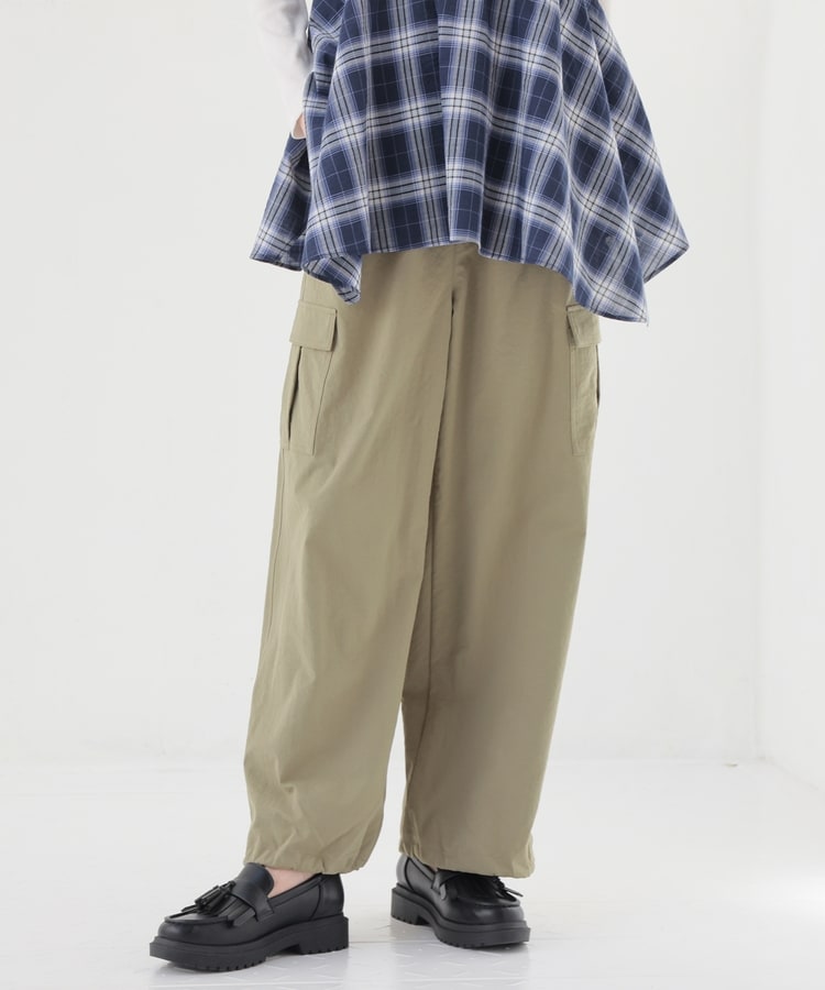 裾のドロストを緩めてストレートパンツとしても着用可能。