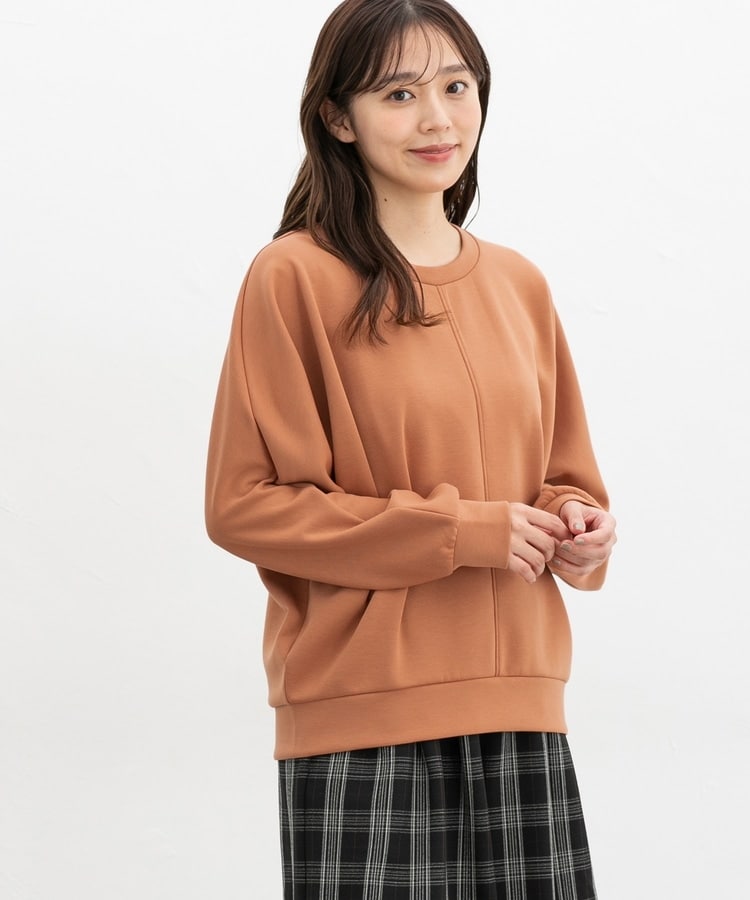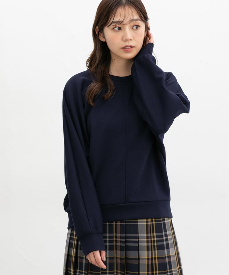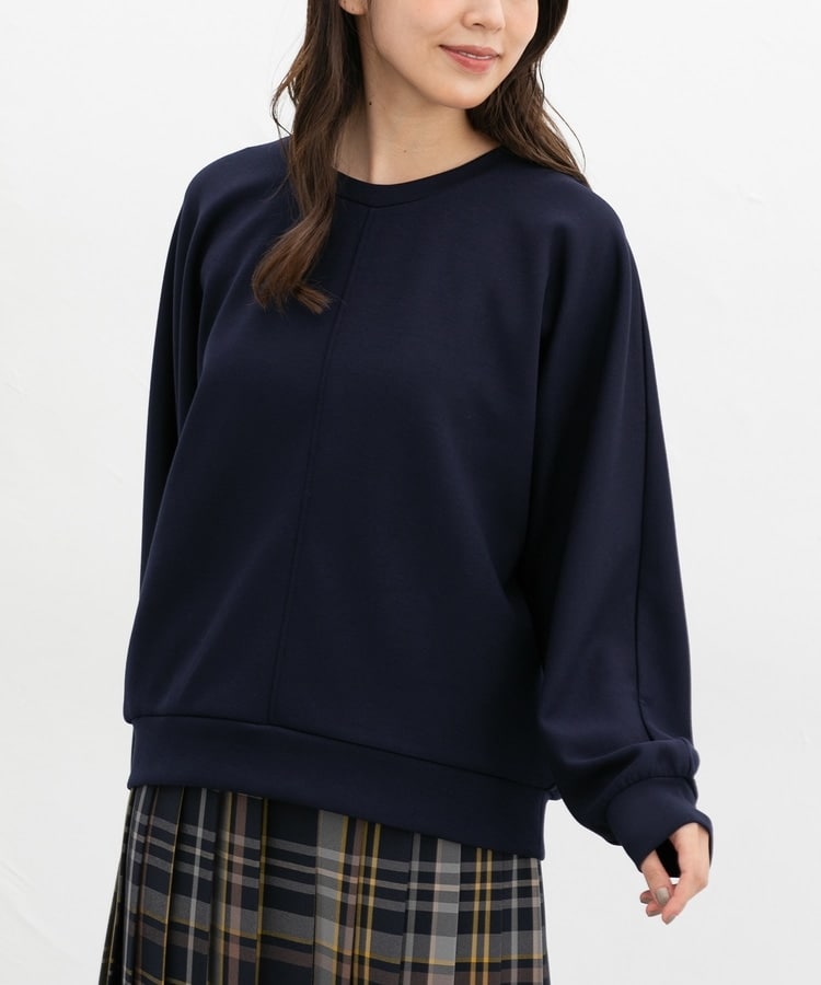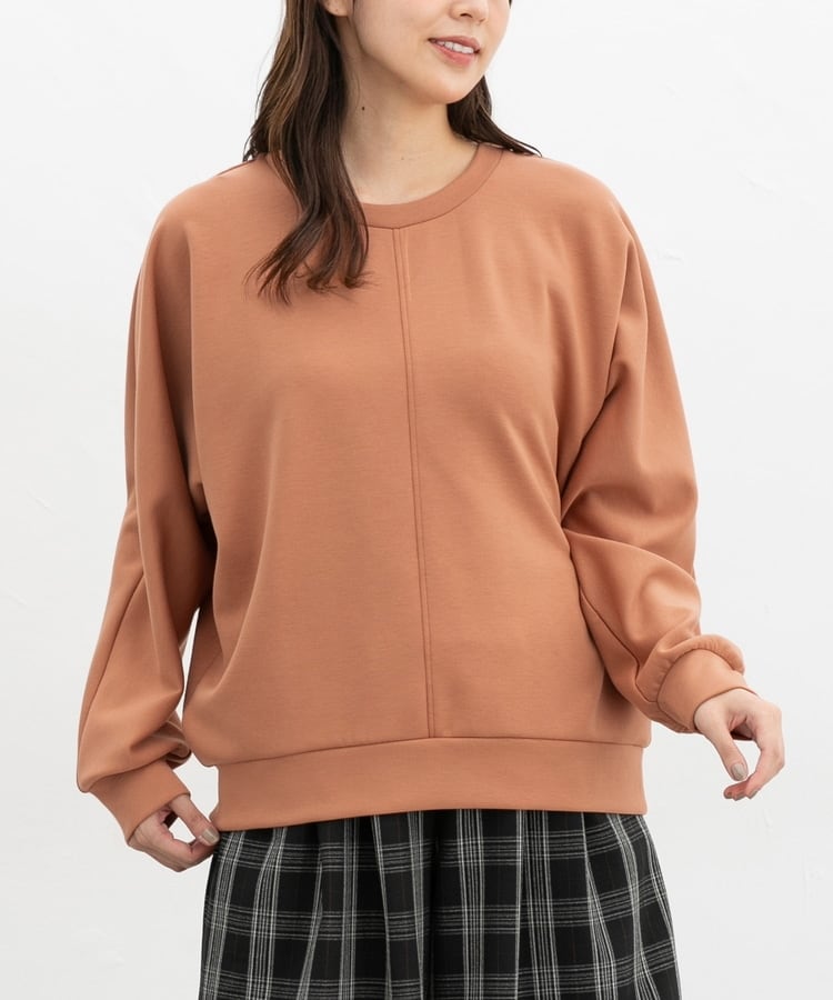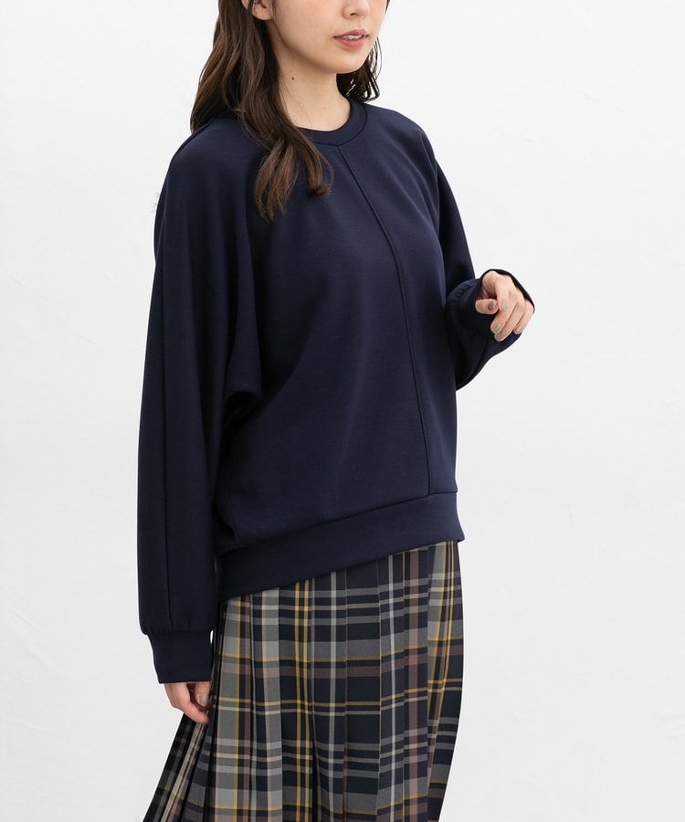 ドルマン袖のゆるシルエットで、おしゃれに体型もカバー。
