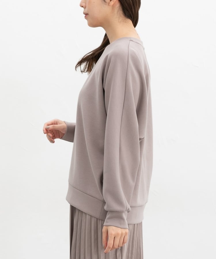 ストレッチの利いた、両面が滑らかな、レーヨン混のきれいめスウェット素材。