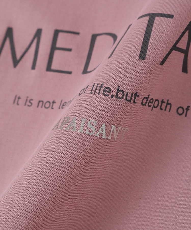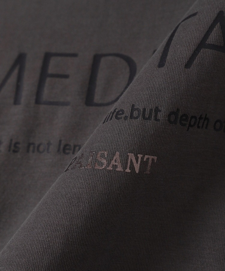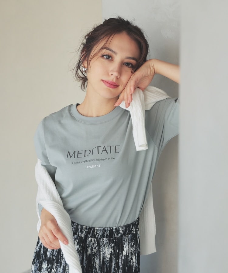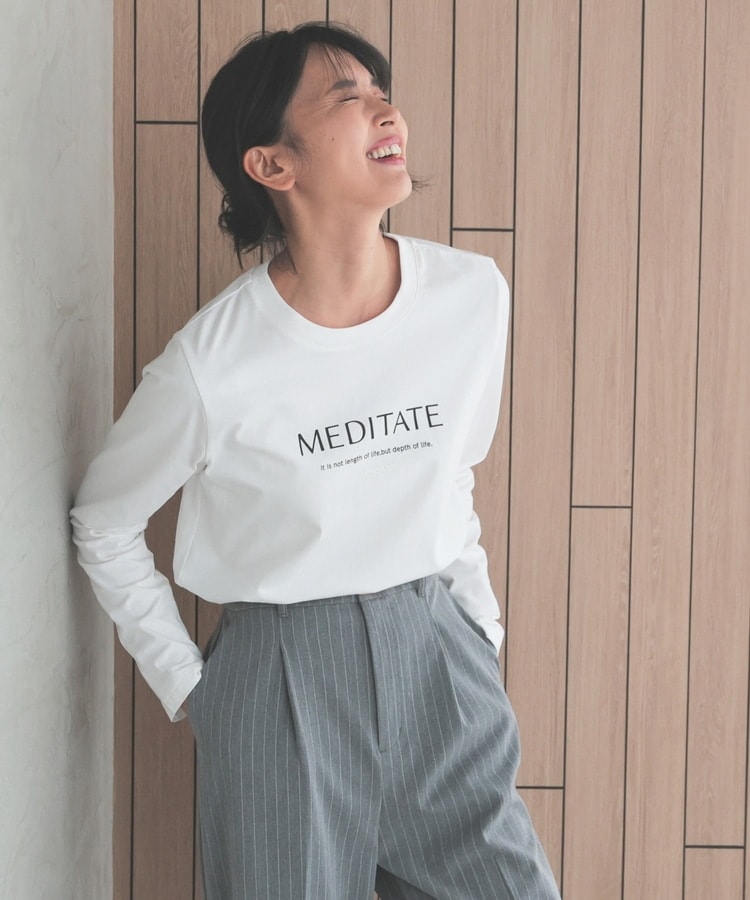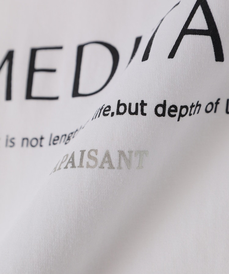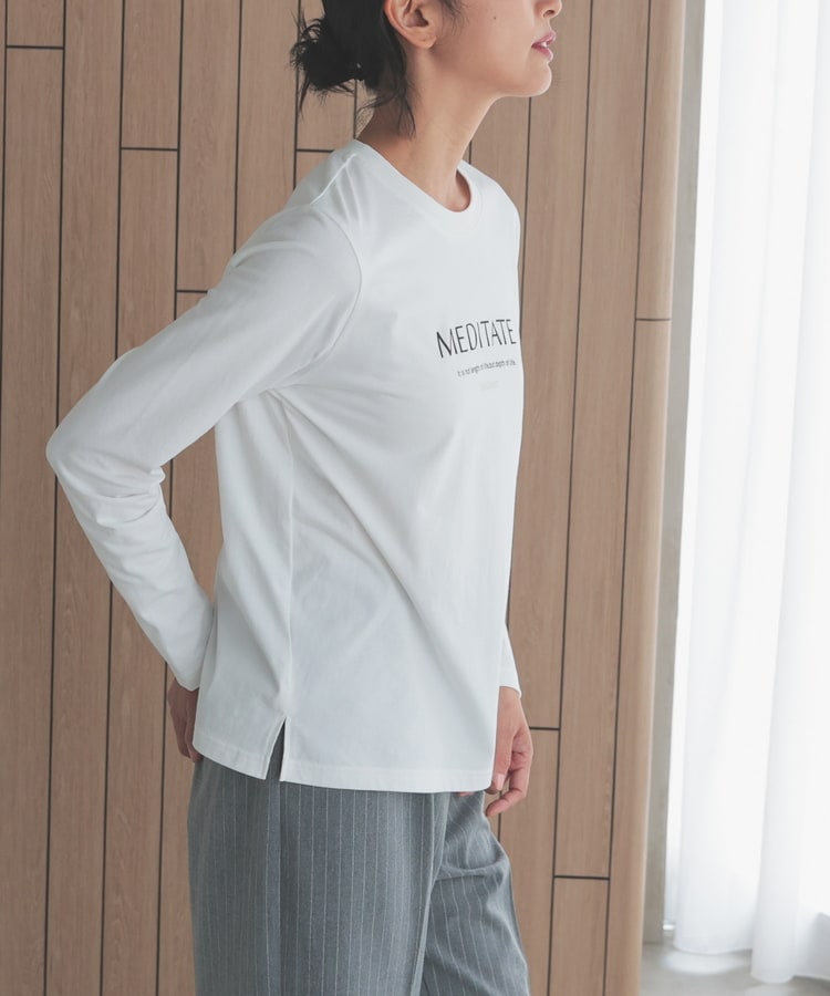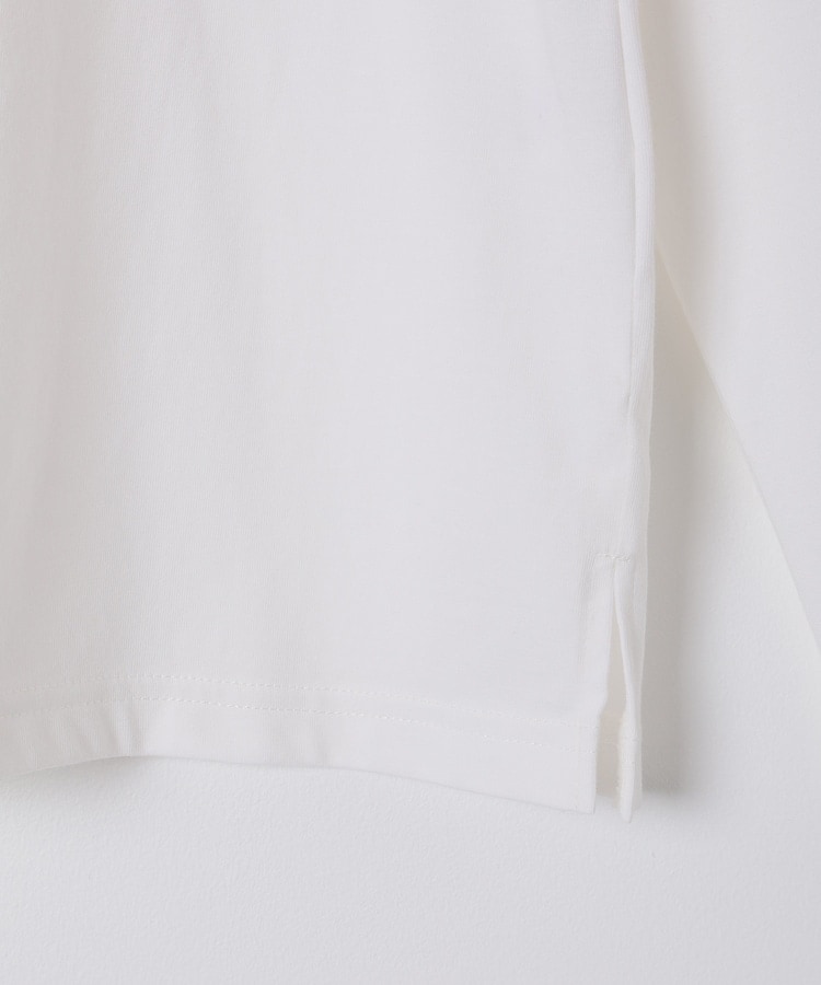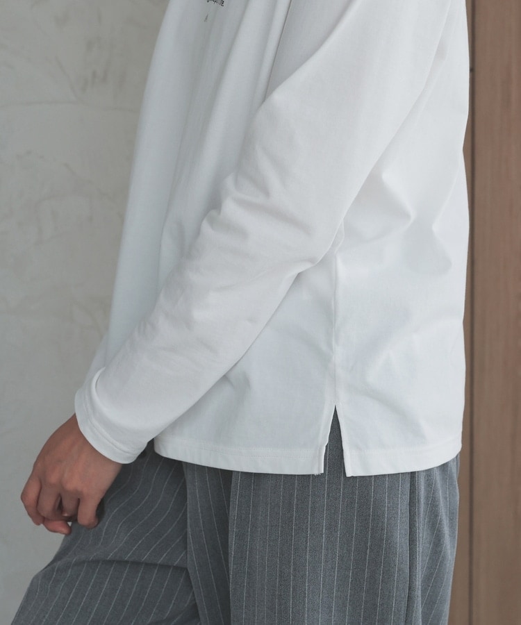 オンからオフまで着回しがきく、スリット入りのロゴプリントTシャツ。