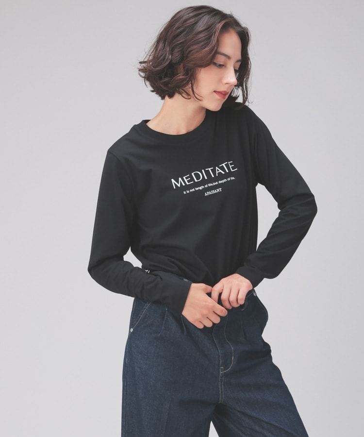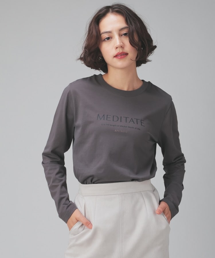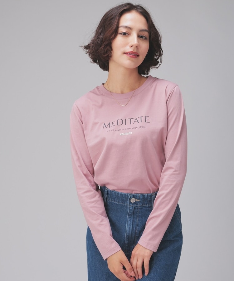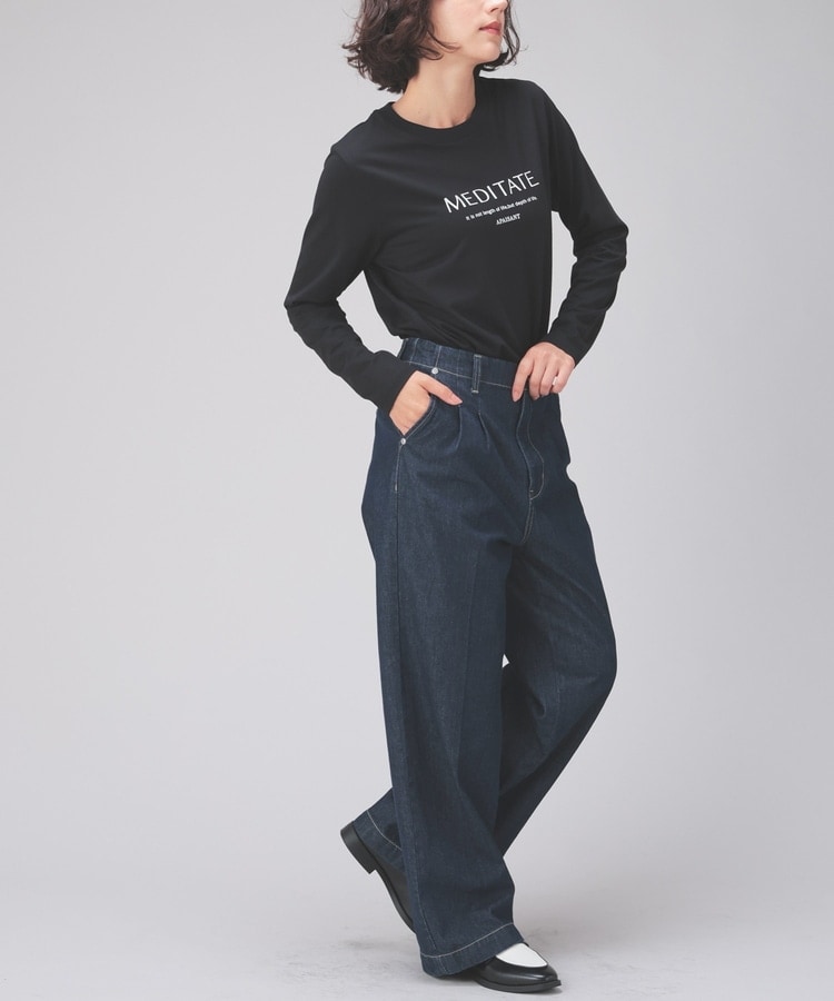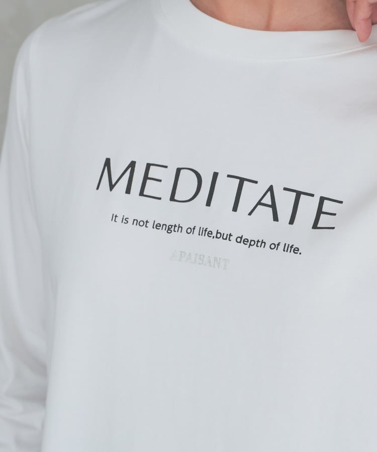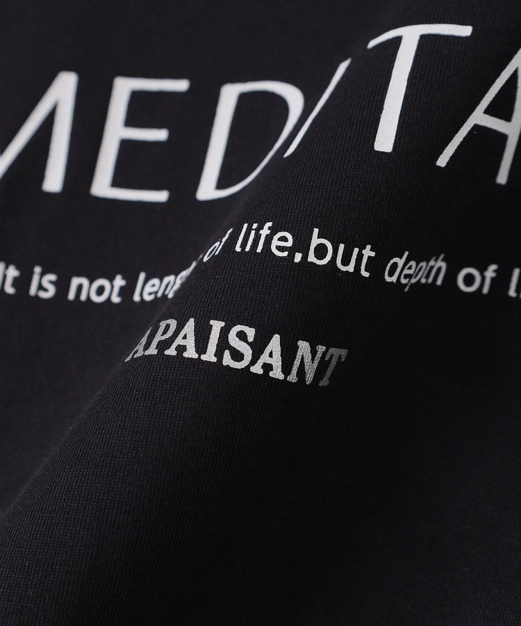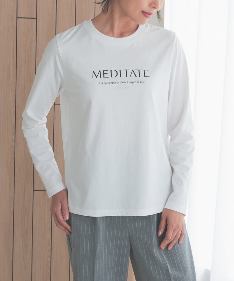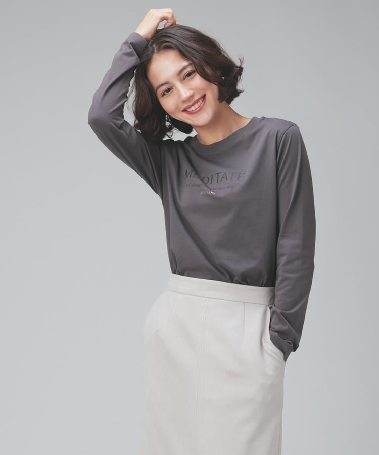 オンからオフまで着回しがきく、スリット入りのロゴプリントTシャツ。
