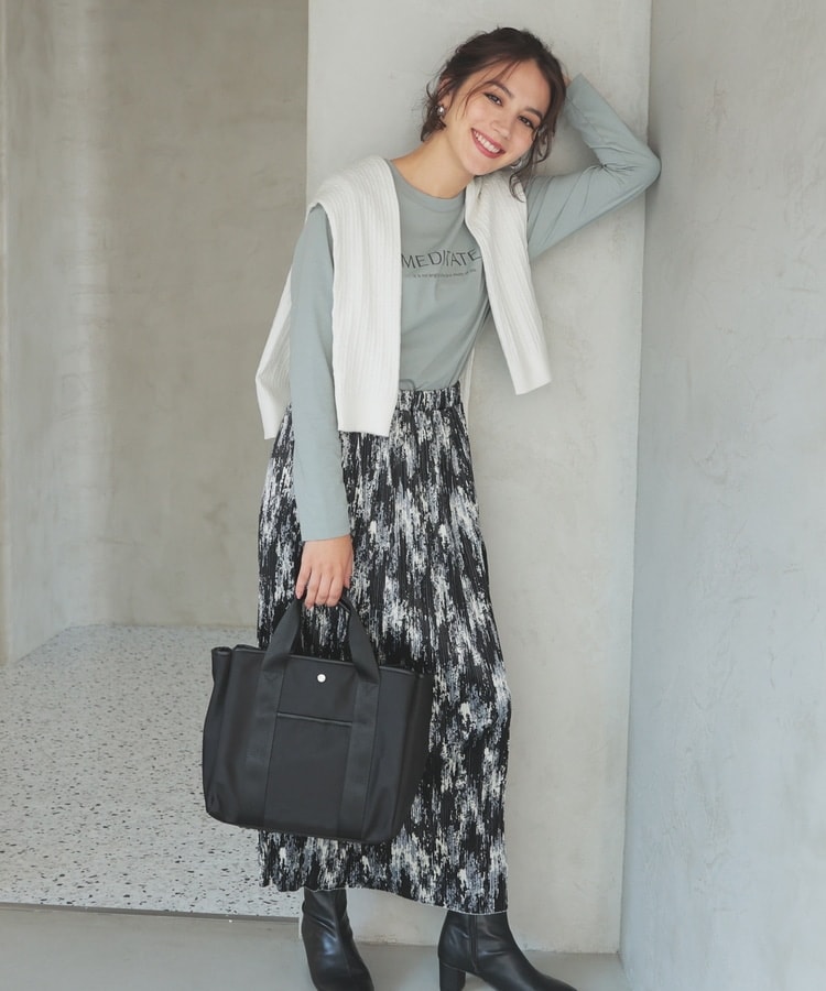 部分的な光沢がある、ハクプリントでトレンド感もプラス。