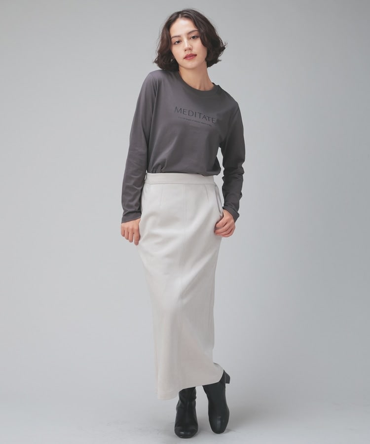 丸みのあるネックラインは柔らかでフェミニンな印象に。