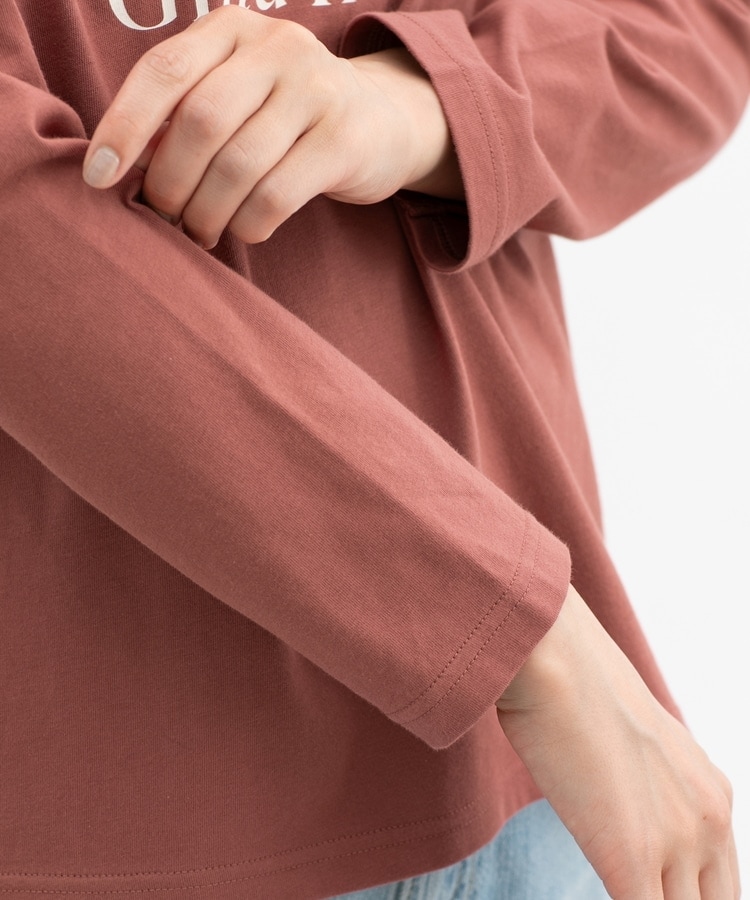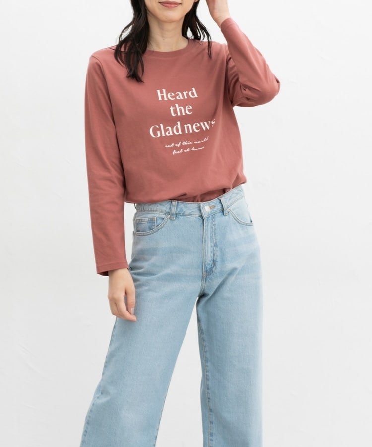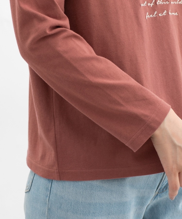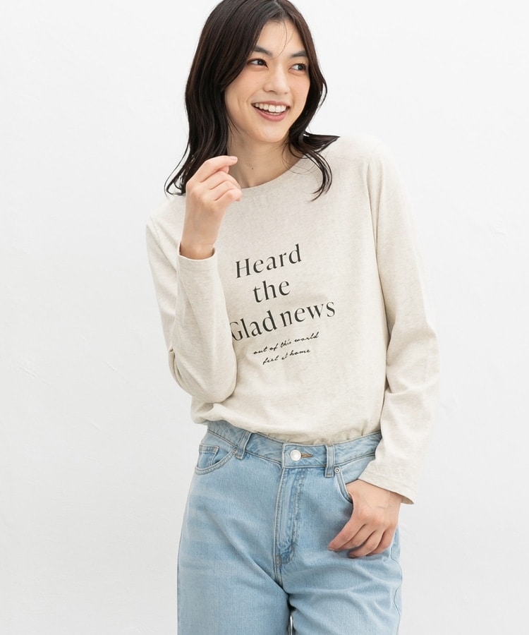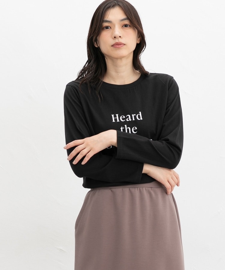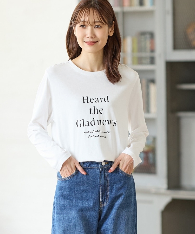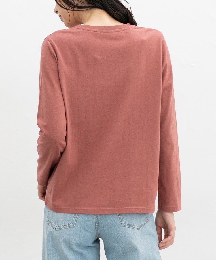 ベーシックなクルーネックで、ゆったりめの幅と腰回りが隠れる丈感。