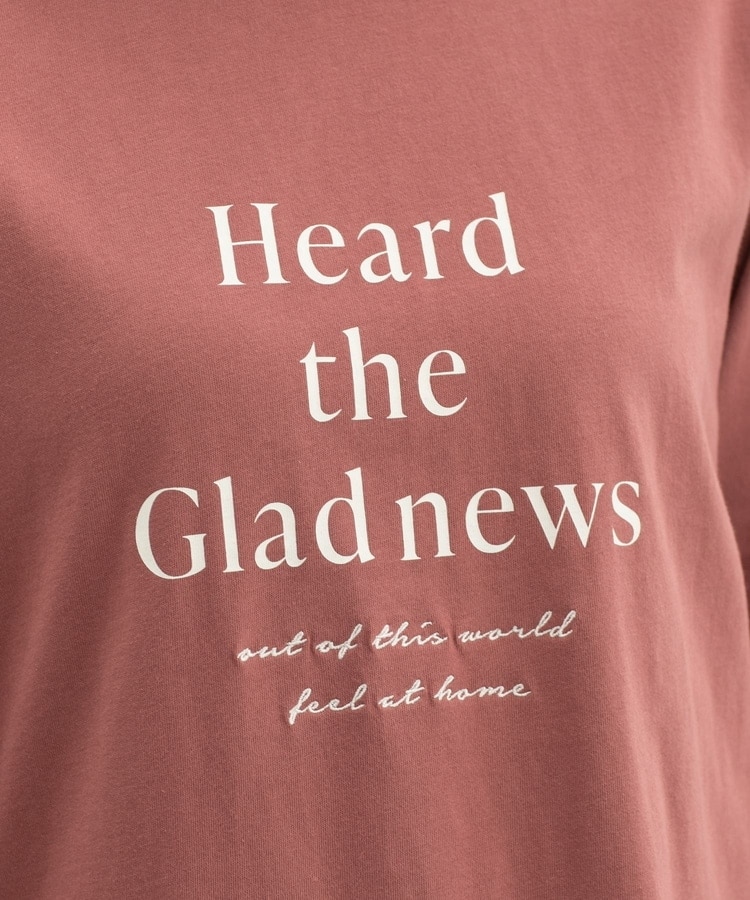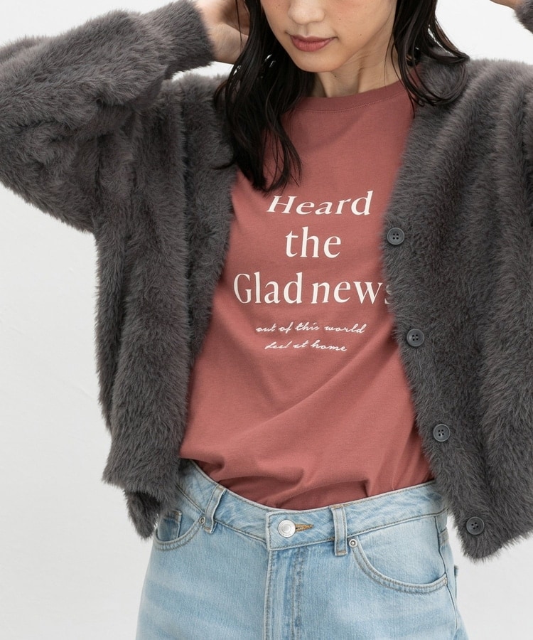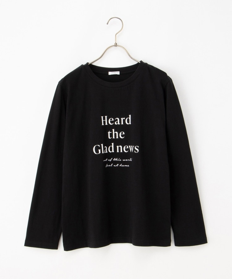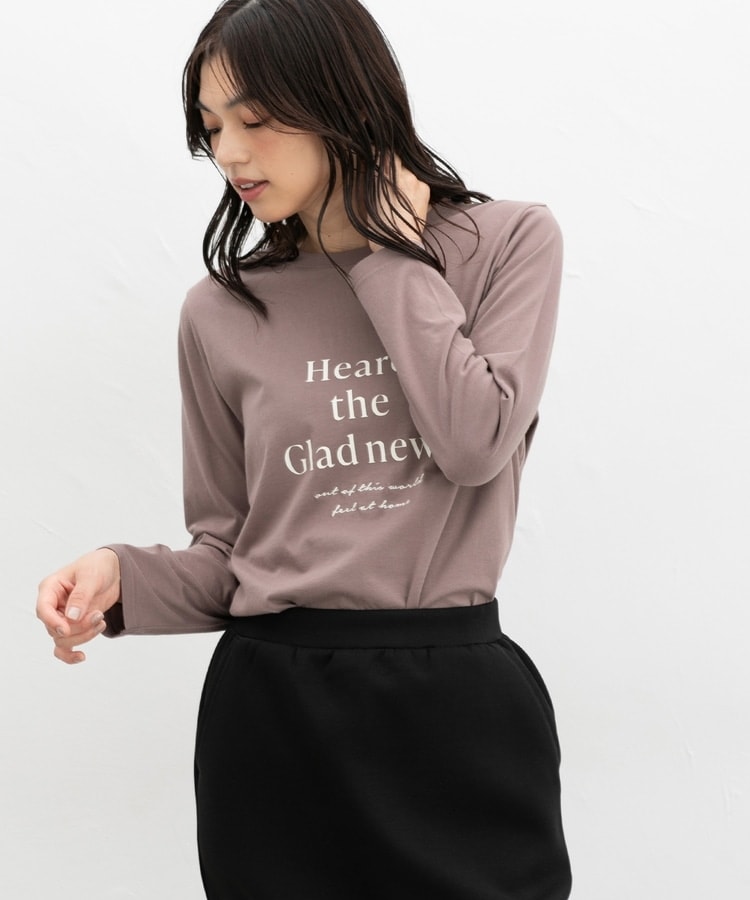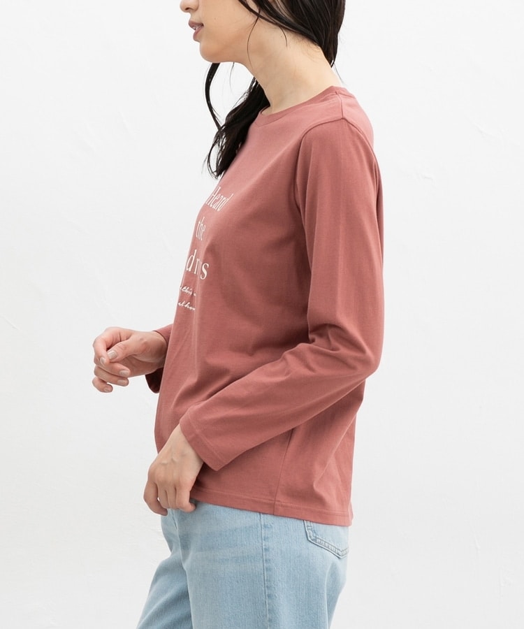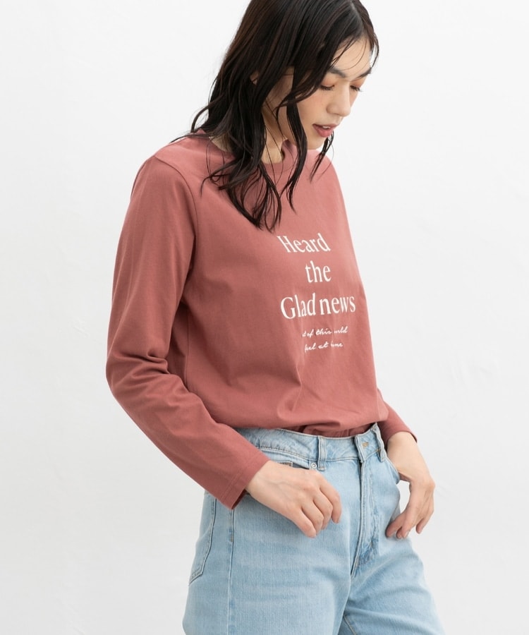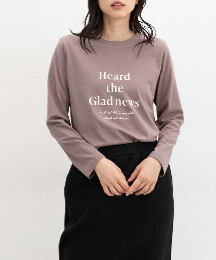 ベーシックなクルーネックで、ゆったりめの幅と腰回りが隠れる丈感。