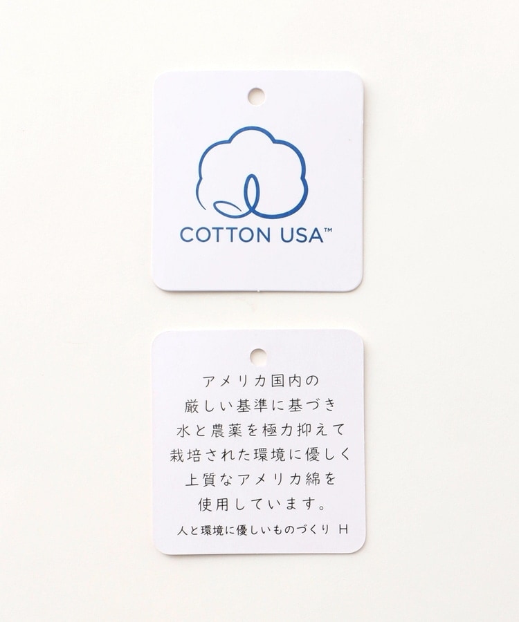 アメリカ国内の厳しい基準に基づき、水と農薬を極力抑えて栽培された、環境に優しく着心地もよいUSAコットン100%素材。