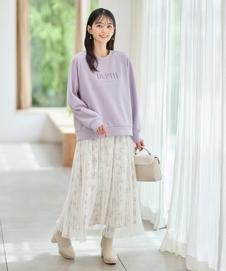 ゆったりめの幅と腰回りが隠れる丈感で、気になる体型もカバー。