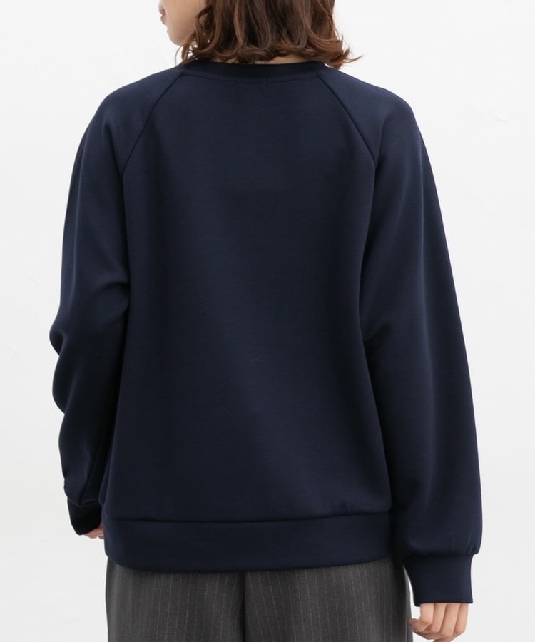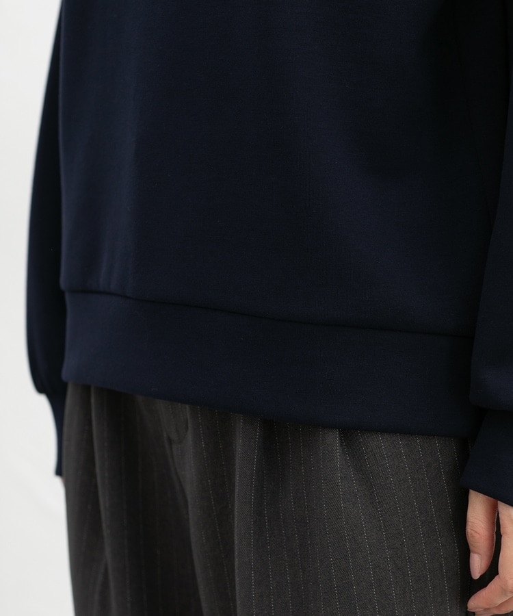 両面が滑らかな、レーヨン混のきれいめスウェット素材。