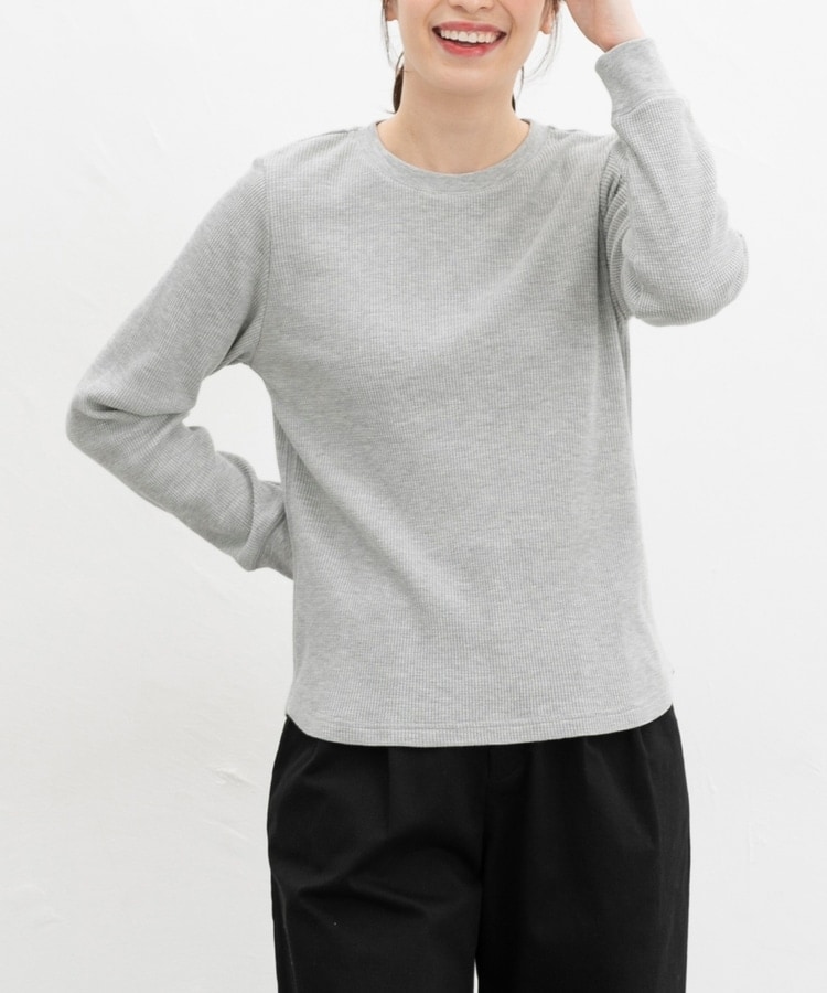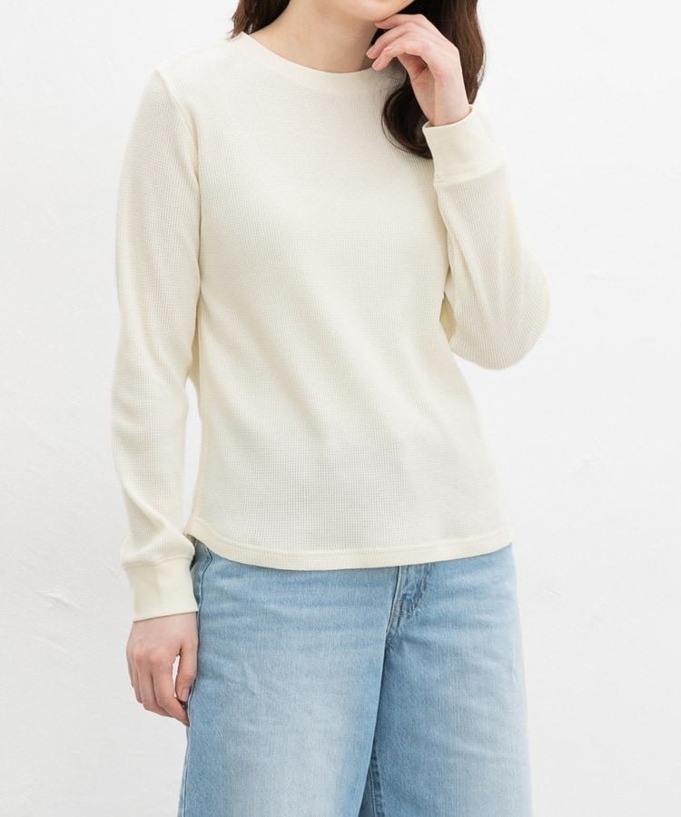 表面に立体感がある、着心地のよい綿混ワッフル素材。