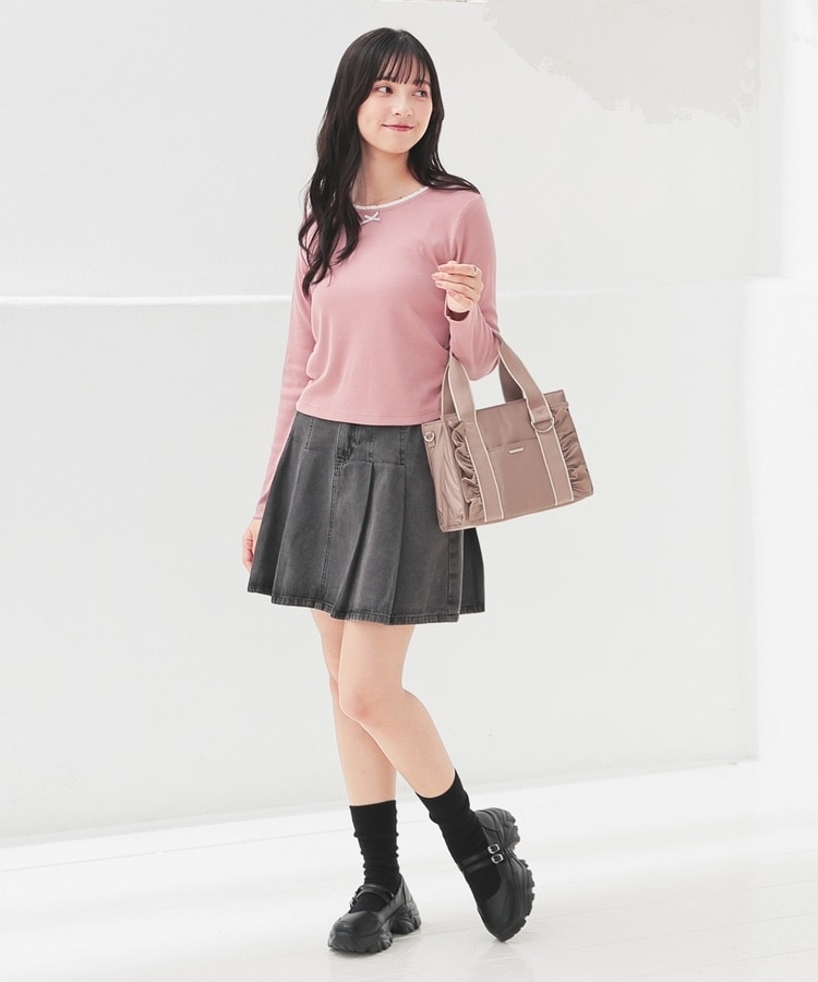 ミニスカート合わせでトレンドのバレエコアスタイルにぴったり。