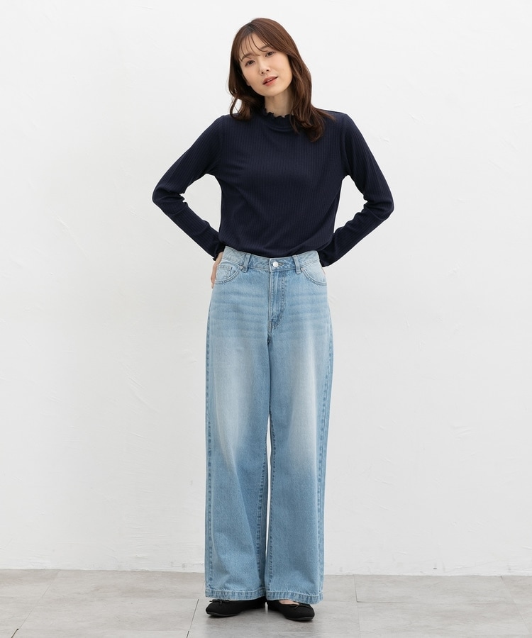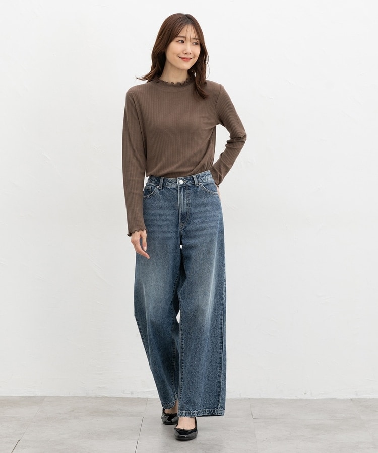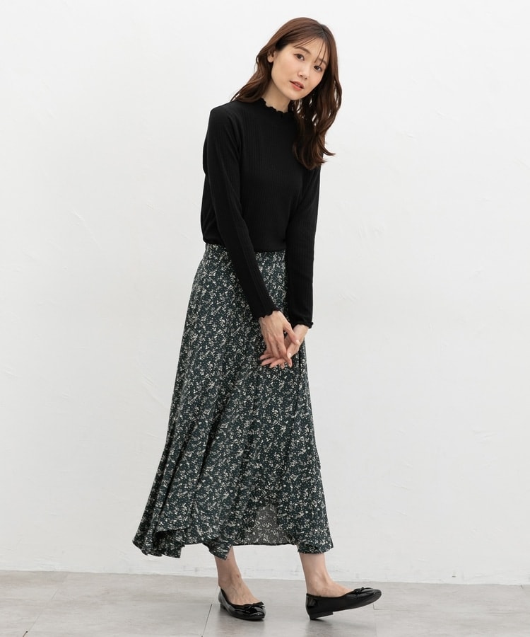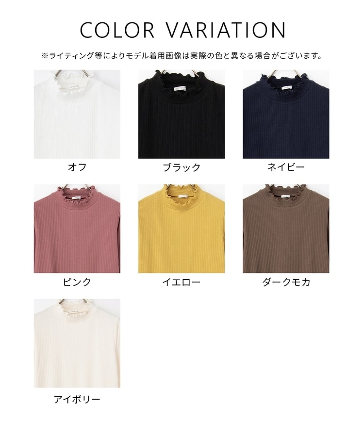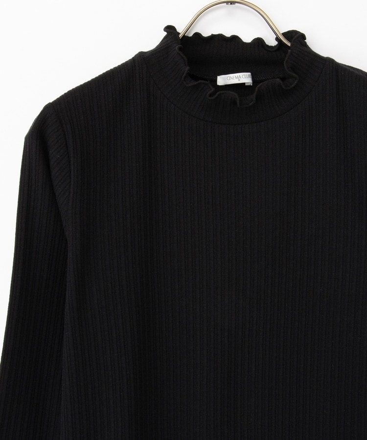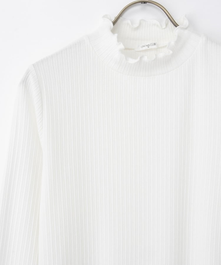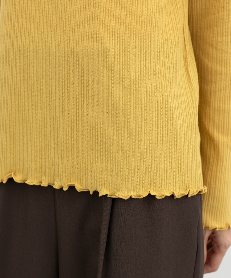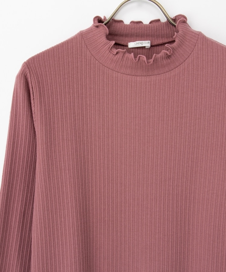 首元を隠してあったかな、程よい高さのプチハイネックに、メロー使いで洒落感もプラスしたフェミニンなデザイン。