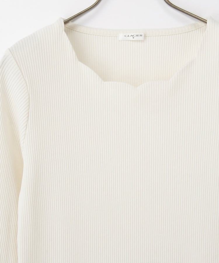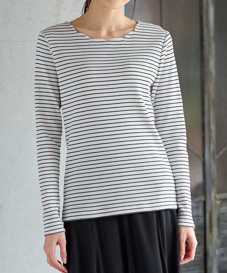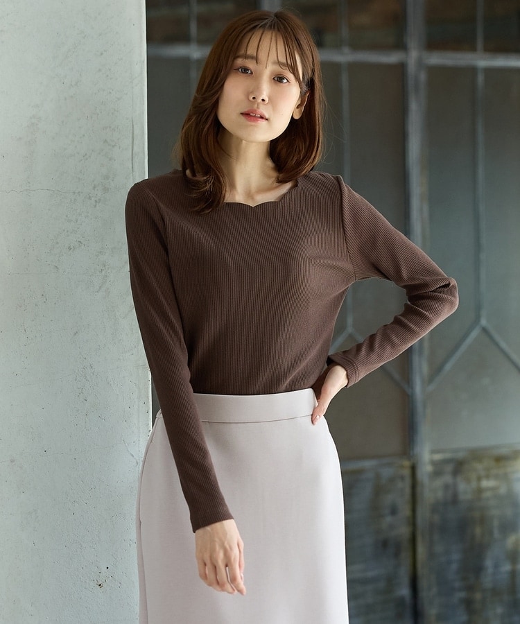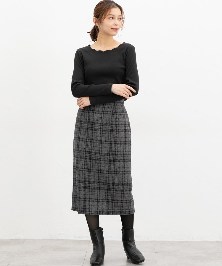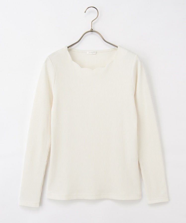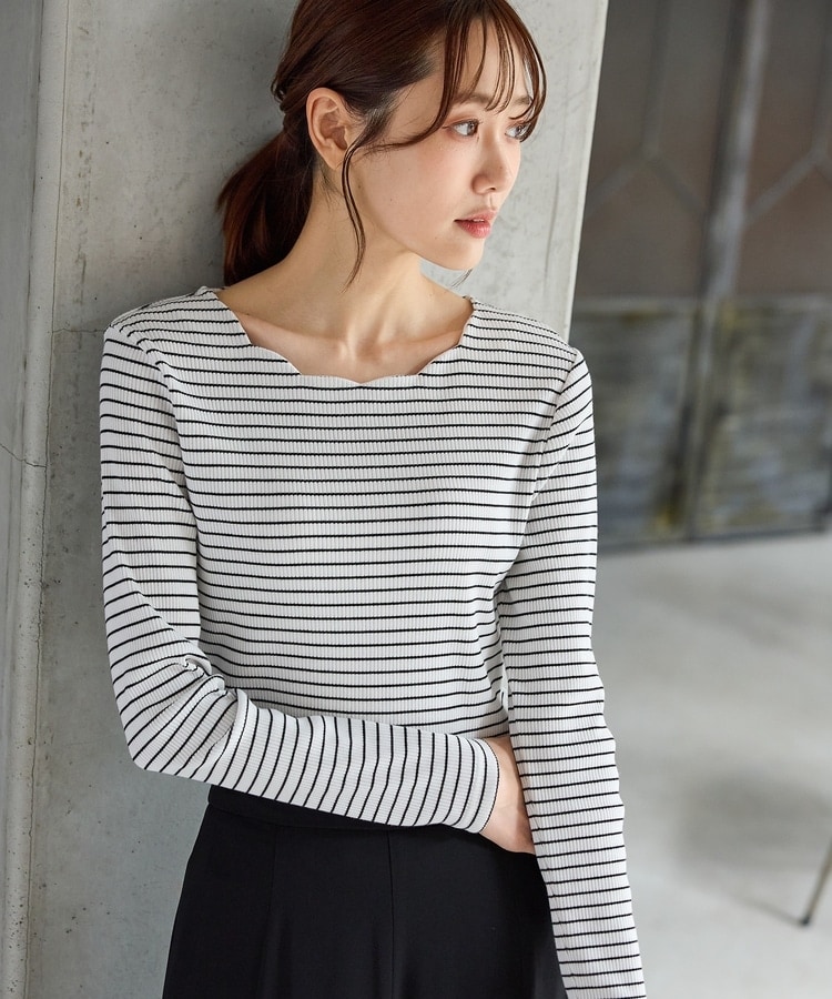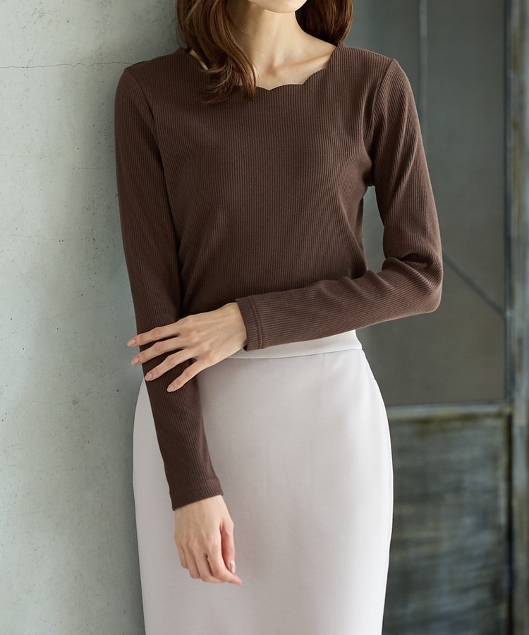 デコルテラインをきれいに見せる、衿ぐりのスカラップカットが大人可愛いデザイン。