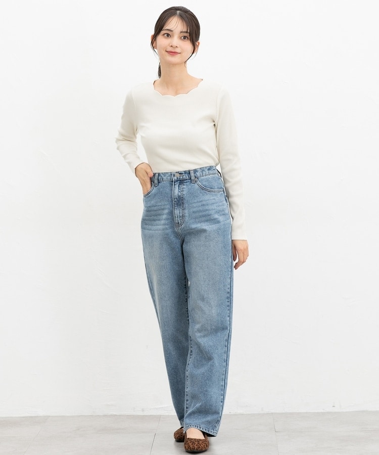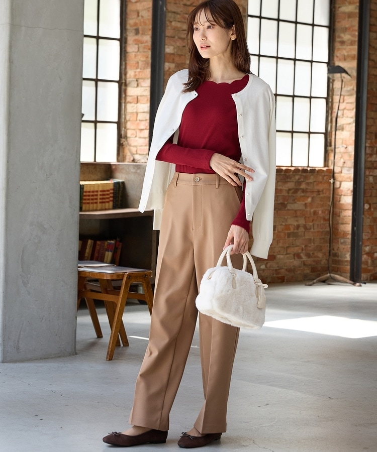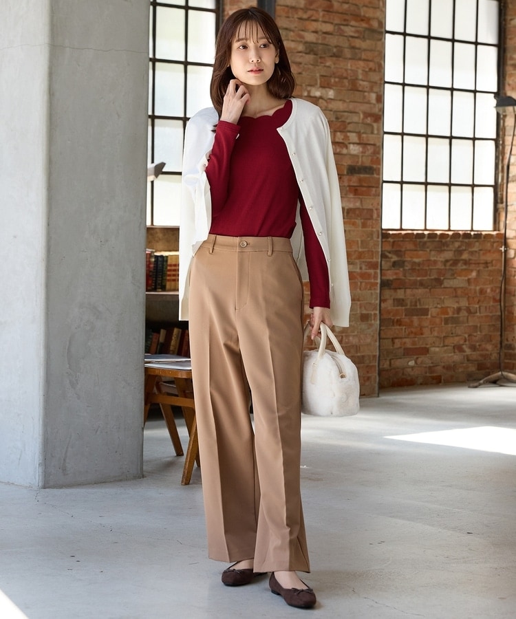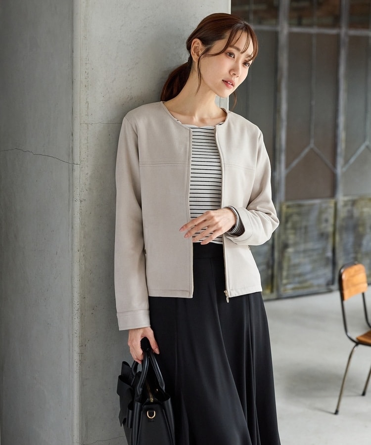ジャケットにも合うサイズ感で、フレアスカートやテーパードパンツなどと合わせたきれいめお仕事着スタイルからデニムと合わせたカジュアルスタイルまで、幅広い着回しに大活躍。