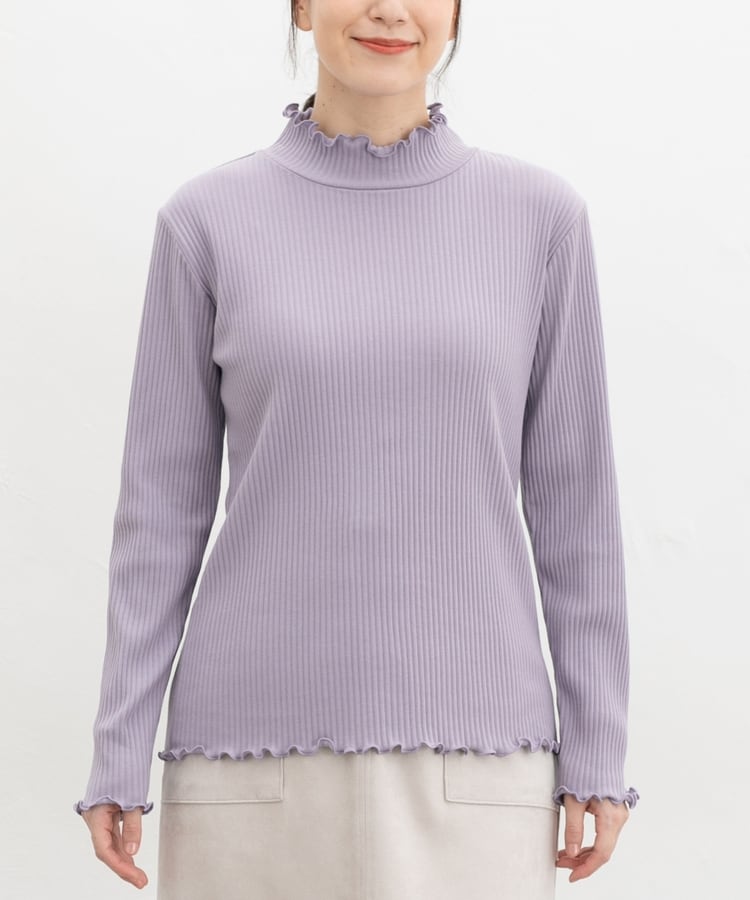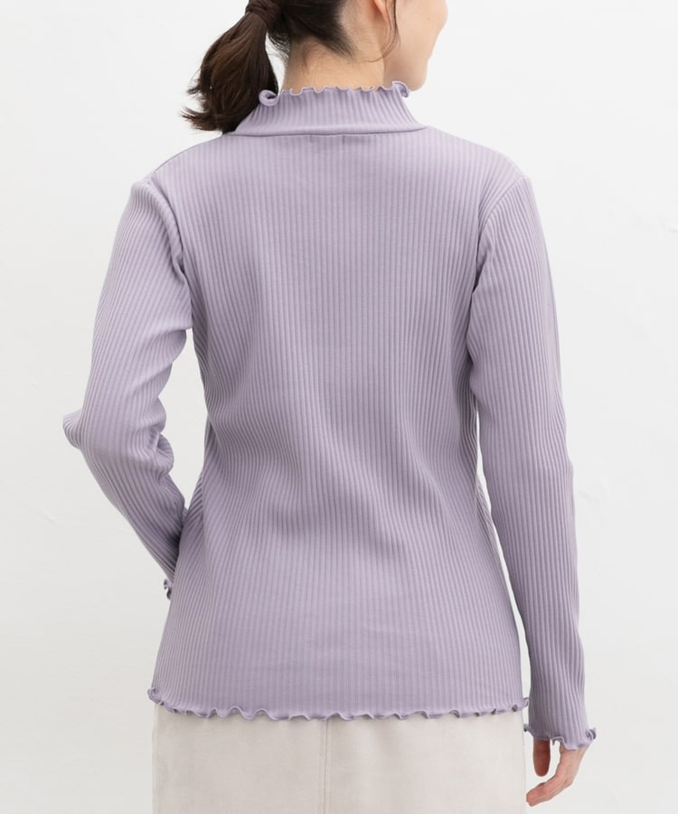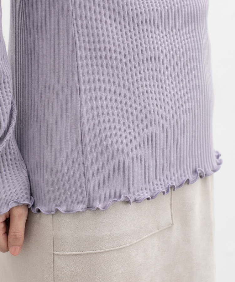 衿・裾・袖口のメロー使いがフェミニンなアクセント。
