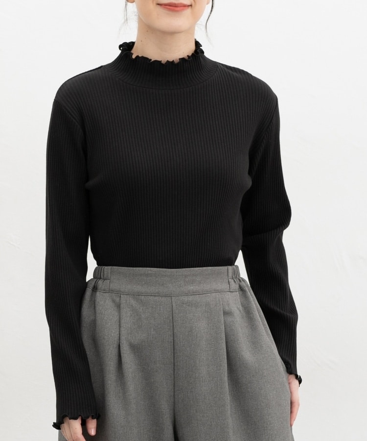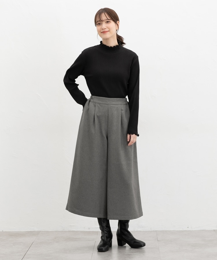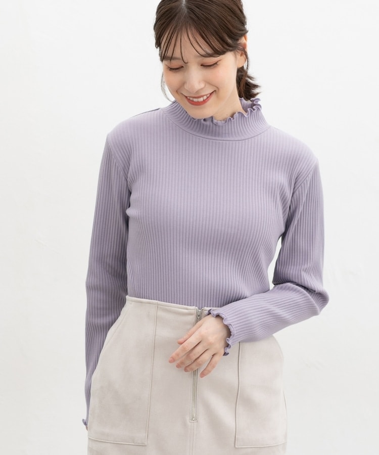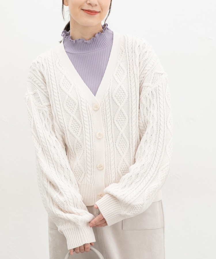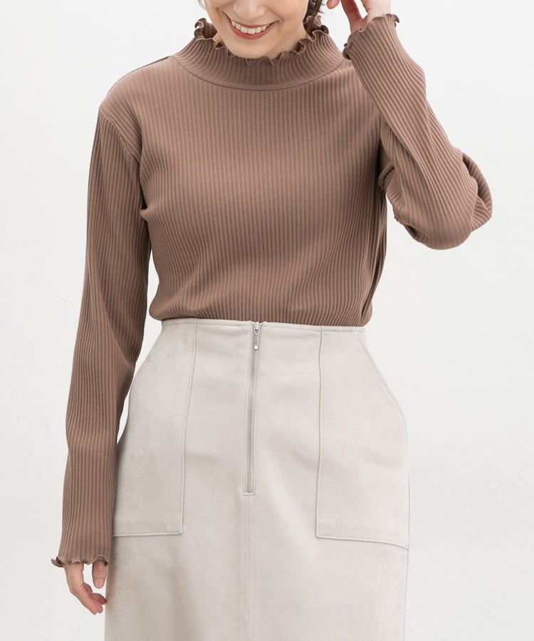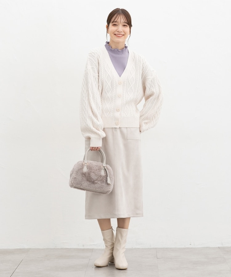 衿・裾・袖口のメロー使いがフェミニンなアクセント。
