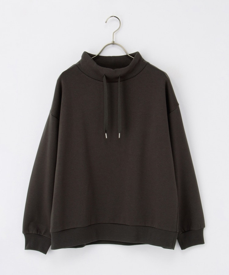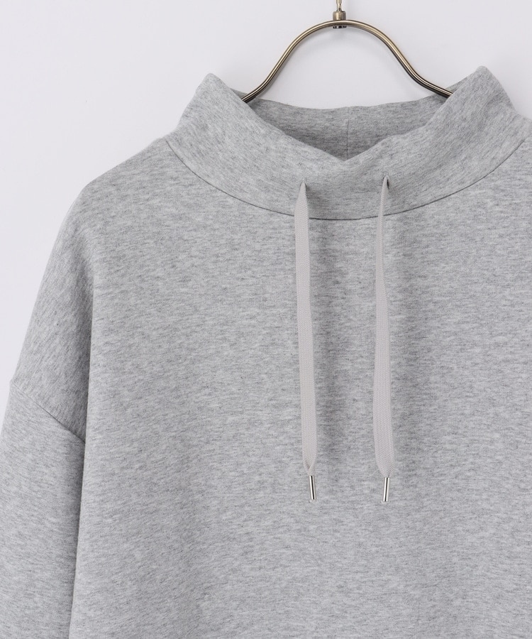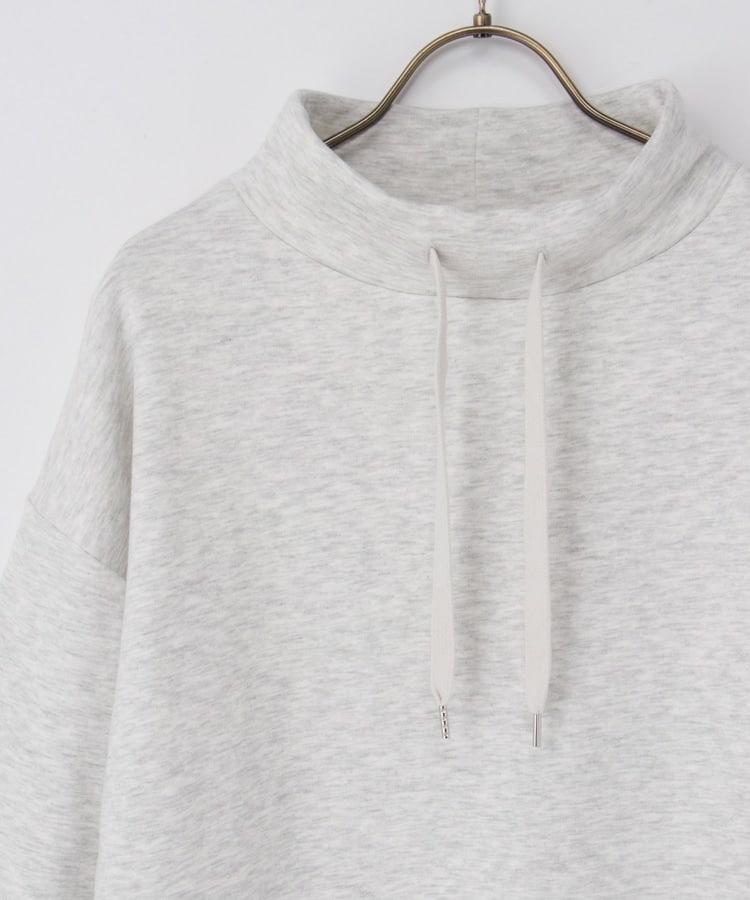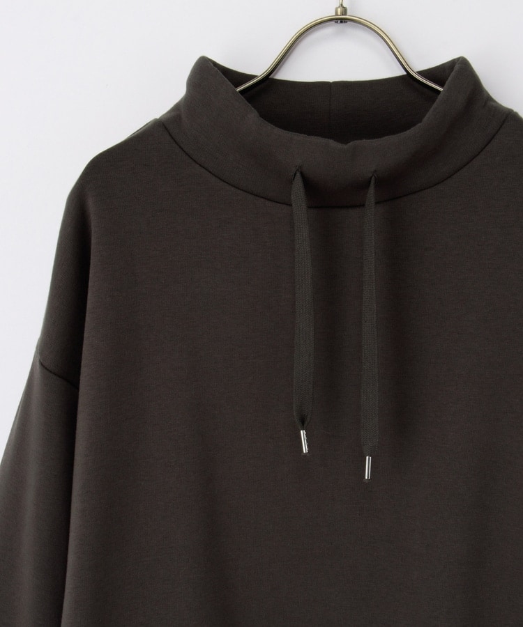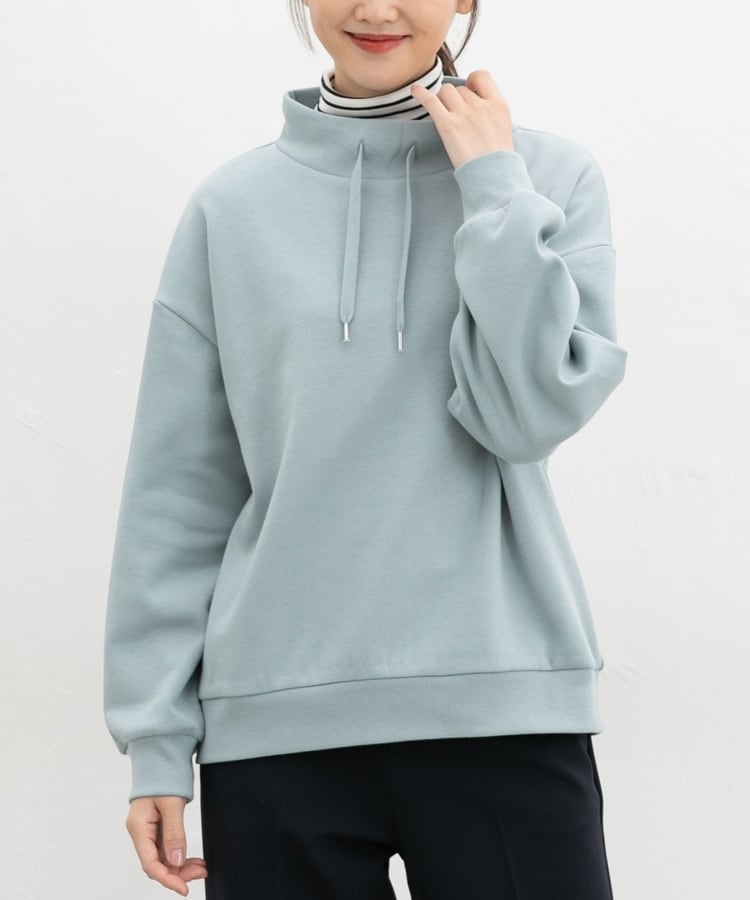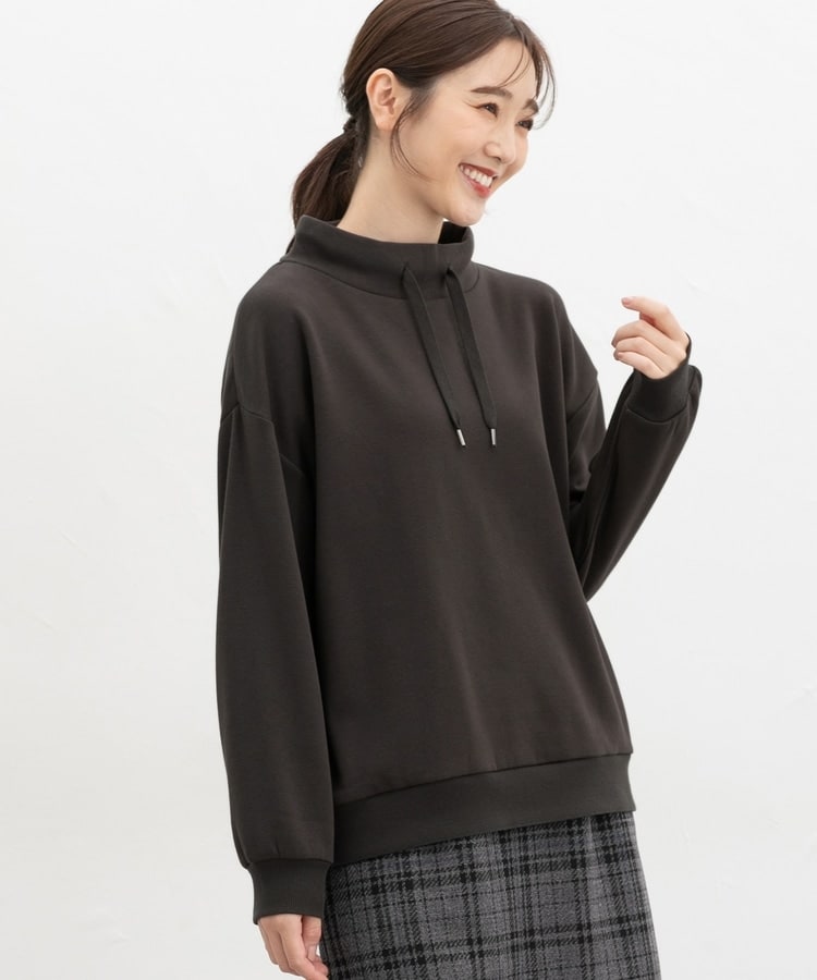 首元まであったかなスタンドネックに、衿元のスピンドルがアクセントになるシンプルデザイン。