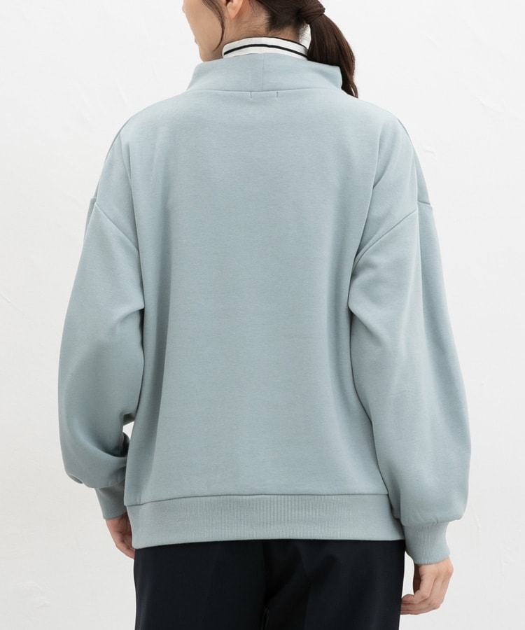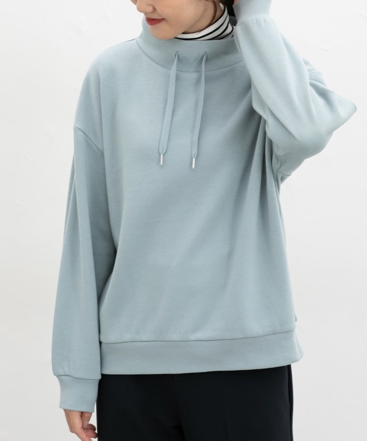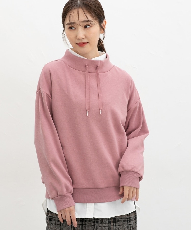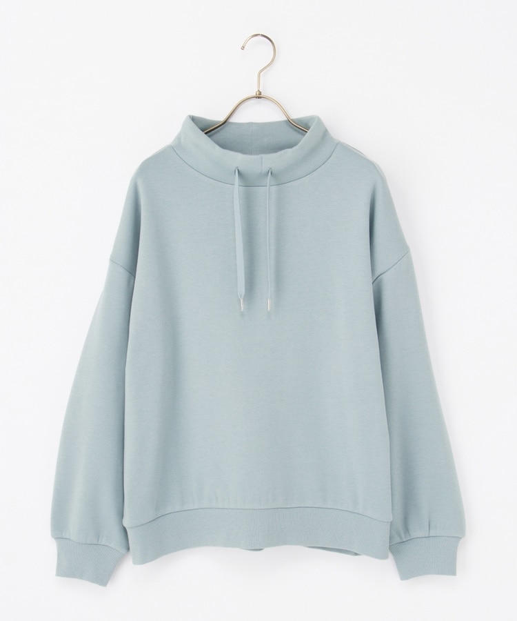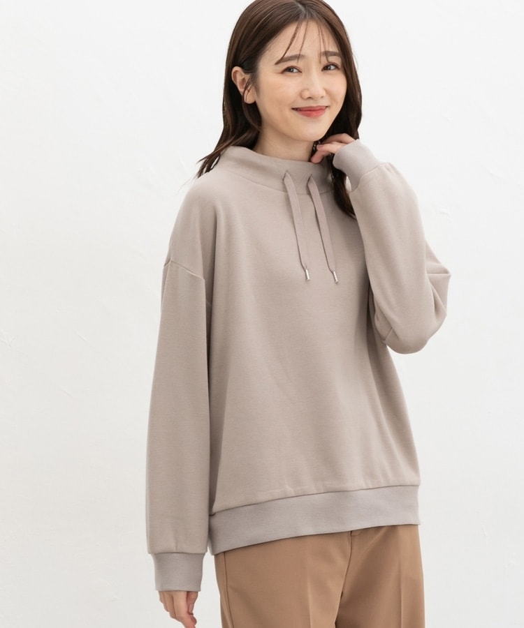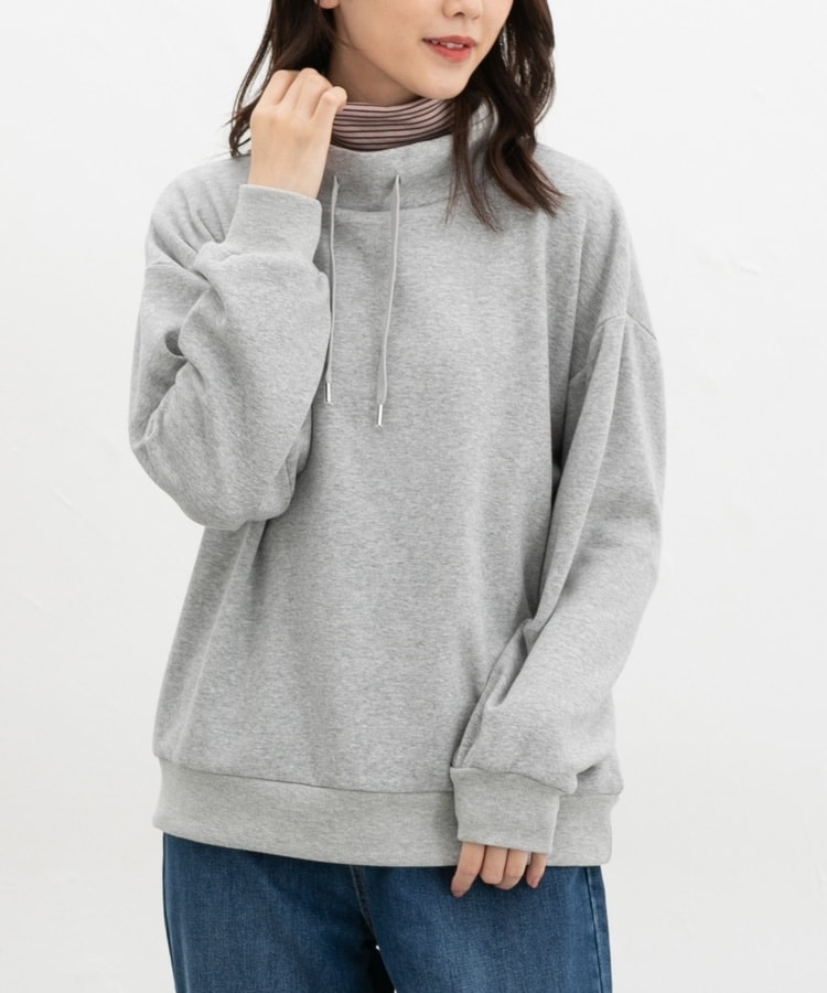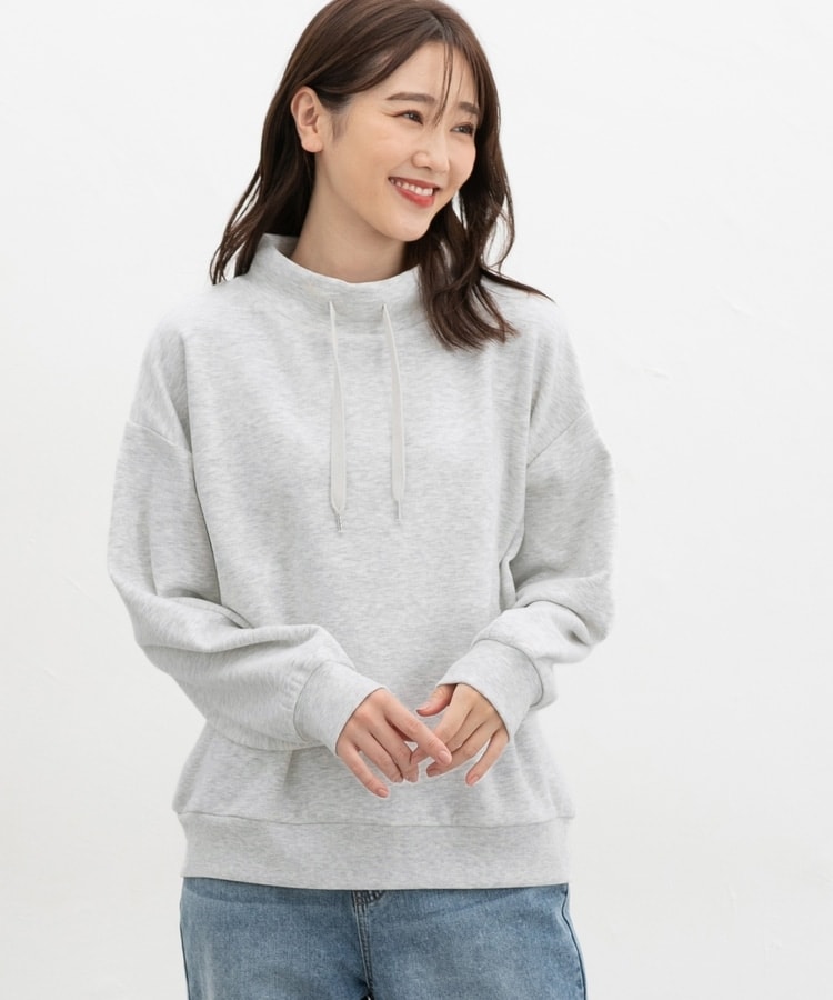 首元まであったかなスタンドネックに、衿元のスピンドルがアクセントになるシンプルデザイン。