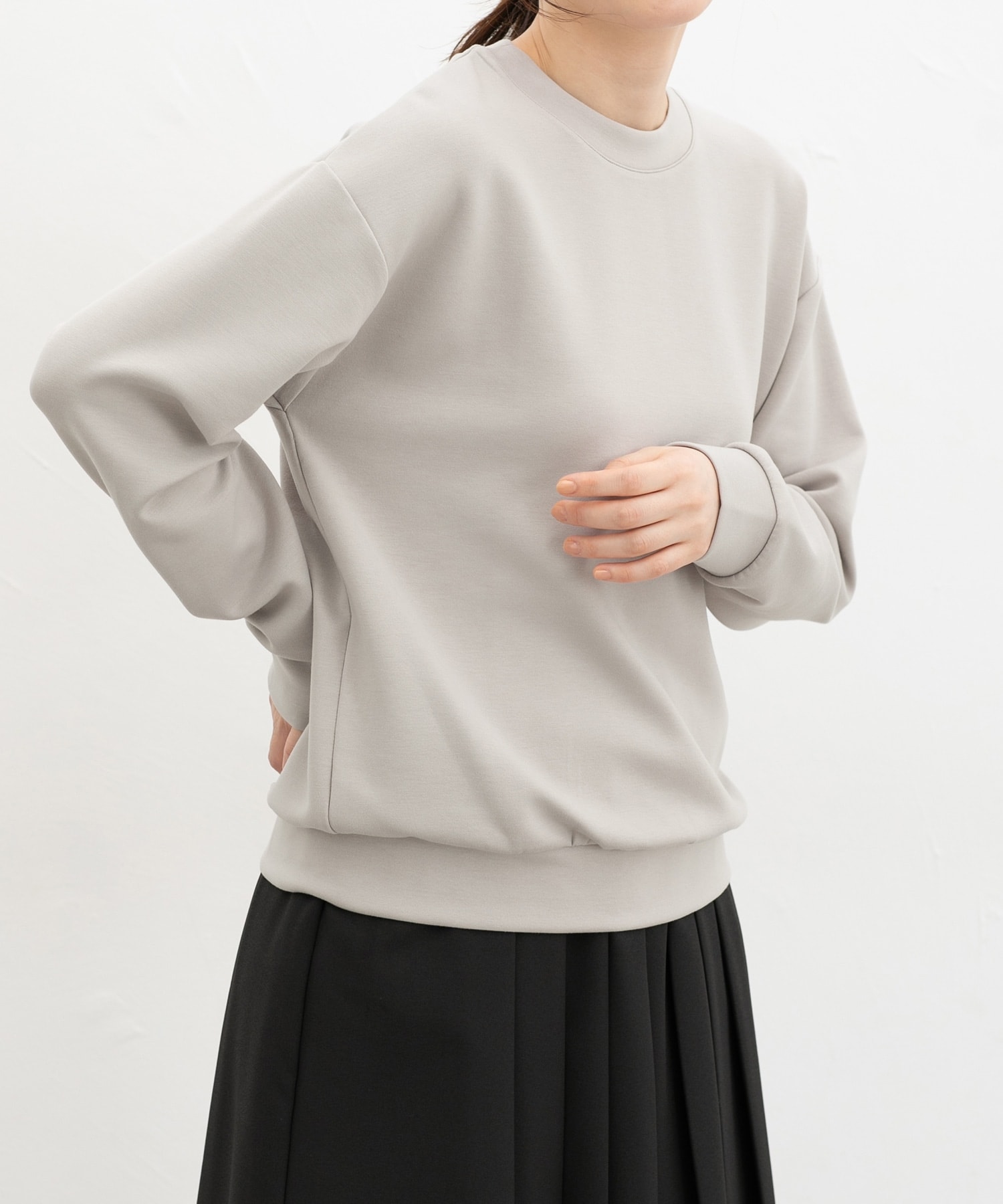 カジュアルすぎない大人な着こなしが楽しめる、両面が滑らかなレーヨン混のきれいめスウェット素材。