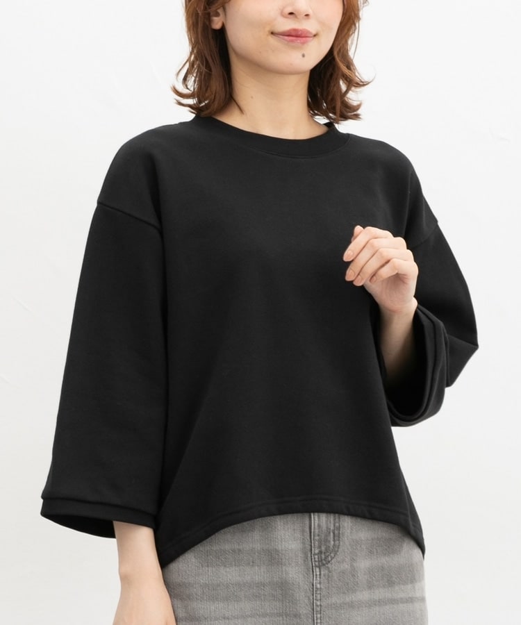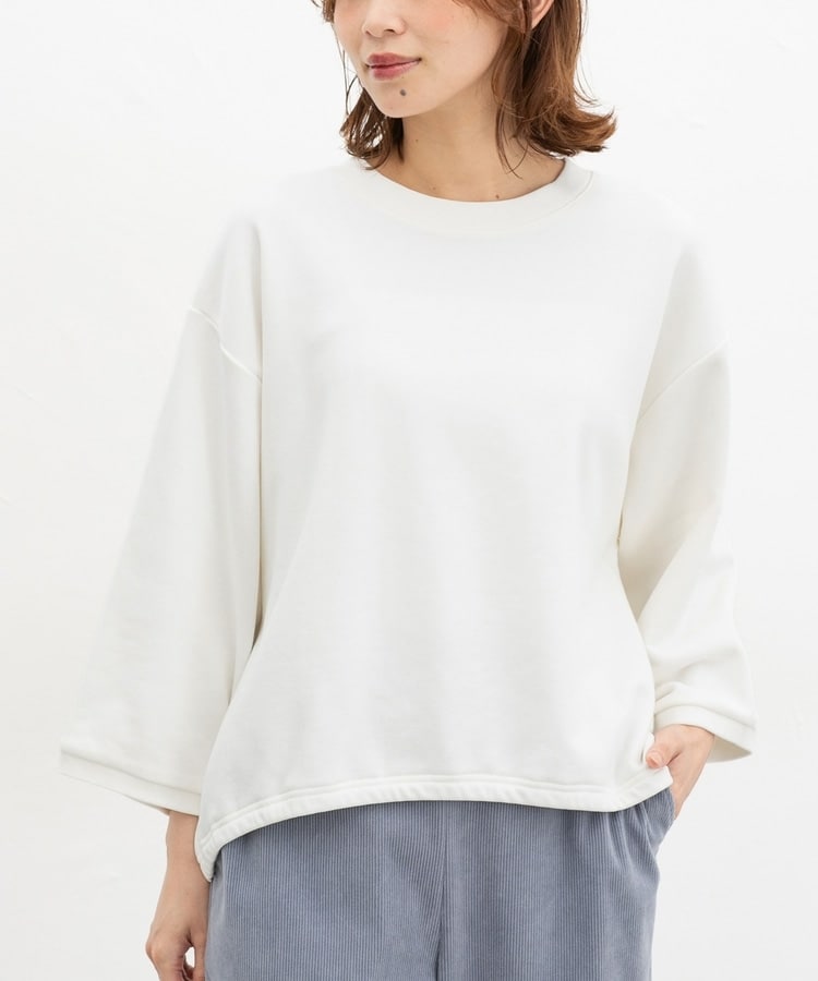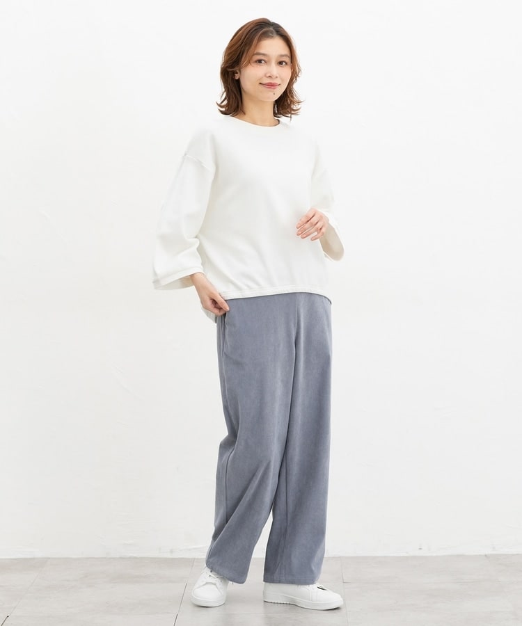 裾にゴムを入れた、シンプルで合わせやすいTシャツライクなデザイン。