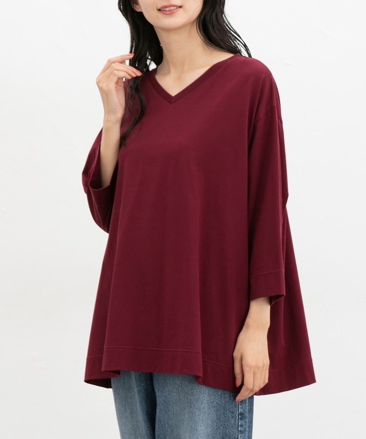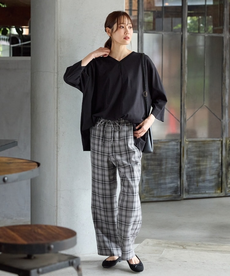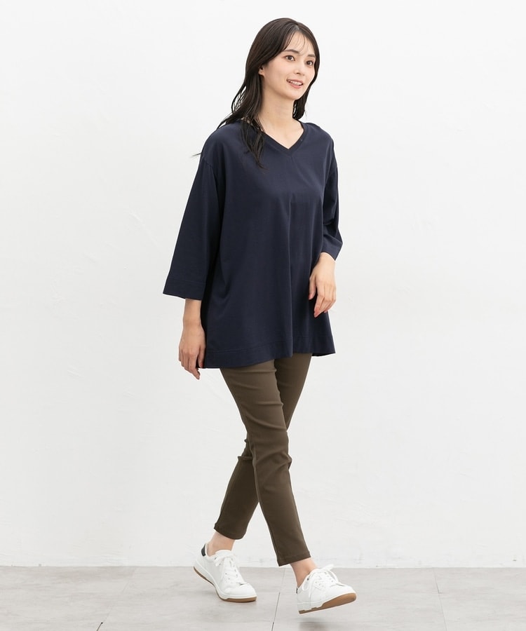 ゆったり幅とヒップがすっぽり隠れる丈感で体型もカバー。